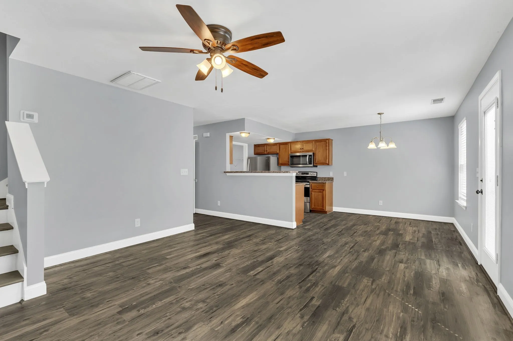 Charming 3-bed, 2.5-bath townhome offers 1,319 sq ft of cozy living space. Step inside & you’ll find a bright and airy living area with stylish LVP flooring that seamlessly flows into the dining space & kitchen. The kitchen is open to the living room so you can all be included in the conversation. Stainless steel appliances & cabinets for all your cooking and storage needs. Laundry/Storage room is right off this area. The primary bedroom features an en-suite bathroom & walk-in closet for added convenience, while the other two bedrooms share a well-sized full bathroom with a linen closet. All bedrooms have LVP flooring and ceiling fans. Outside, the fenced-in backyard is perfect for animals, relaxing & entertaining guests. The attached 1-car garage & deep driveway mean you’ll never have to worry about finding a parking spot. HOA mows the grass outside the fence. Buyer/ buyer agent to verify all pertinent info including but not limited to sq. ft. & schools