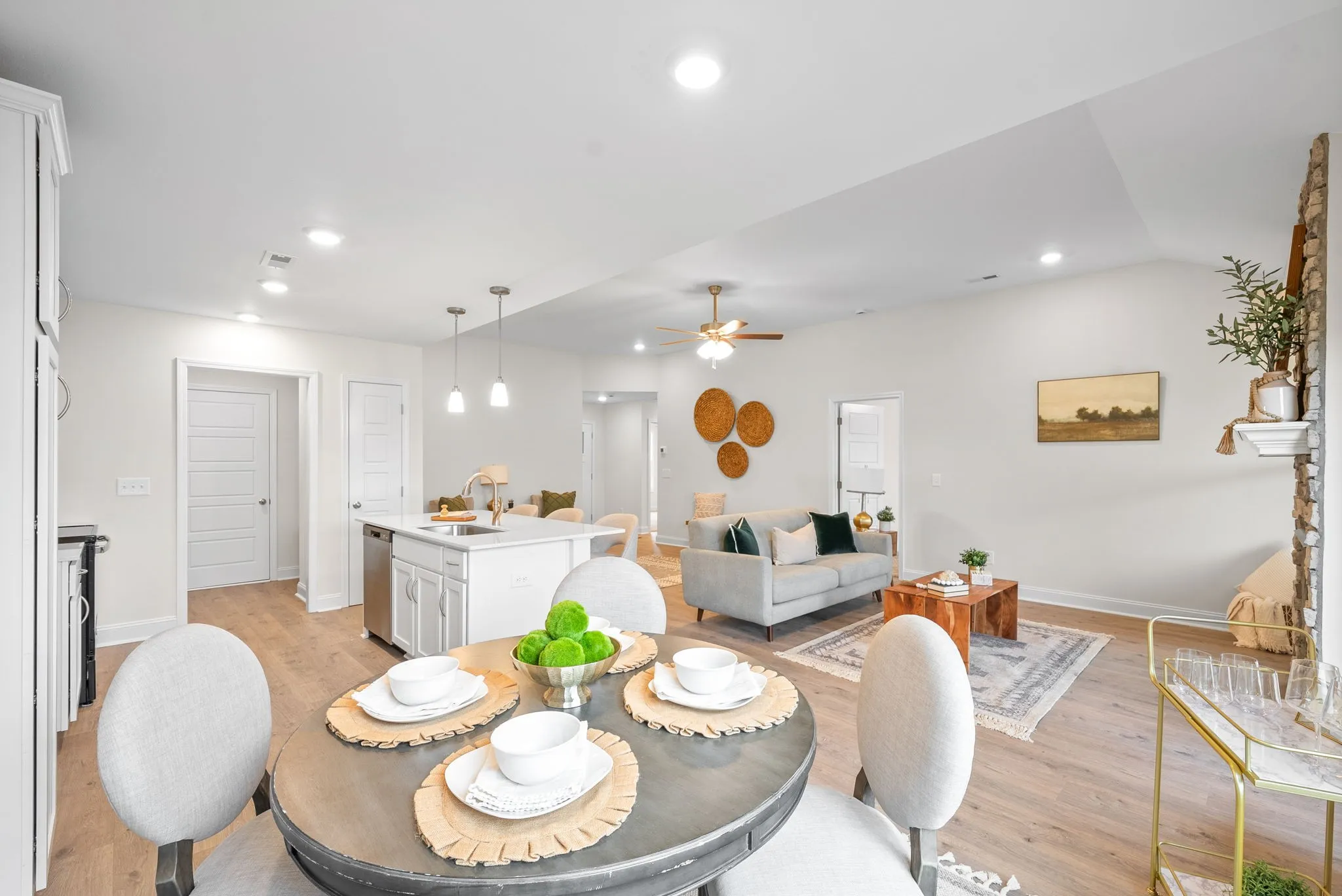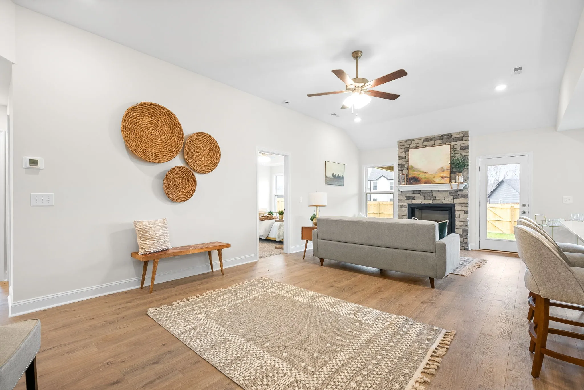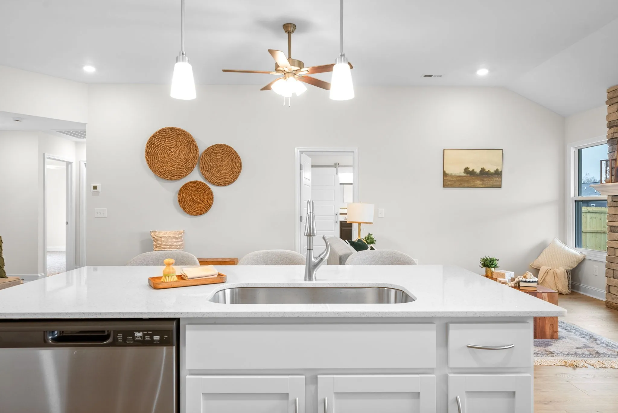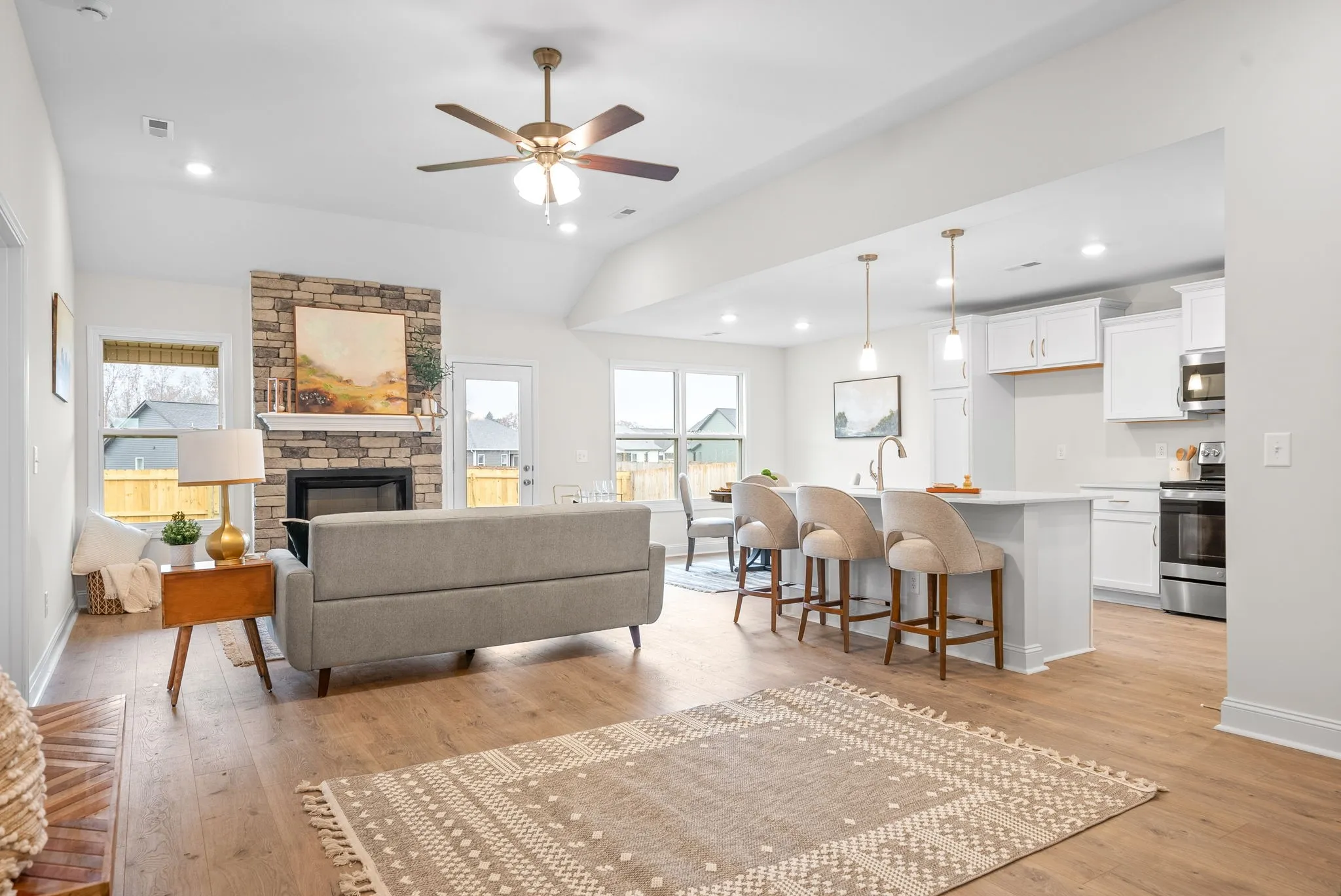 Buyer can still put their personal touches on this move-in ready new construction home with the option to select the kitchen backsplash tile and front door color! Functional, ranch style home with open an open concept kitchen and dining area with spacious living area. Great Room features 10 ft ceilings with a gorgeous floor to ceiling stone/brick fireplace. The primary suite features a tray ceiling with sliding barn door leading into the full bathroom with designer showcase tile shower. Seller Offering Up to $15,000 in Buyer Concessions!
