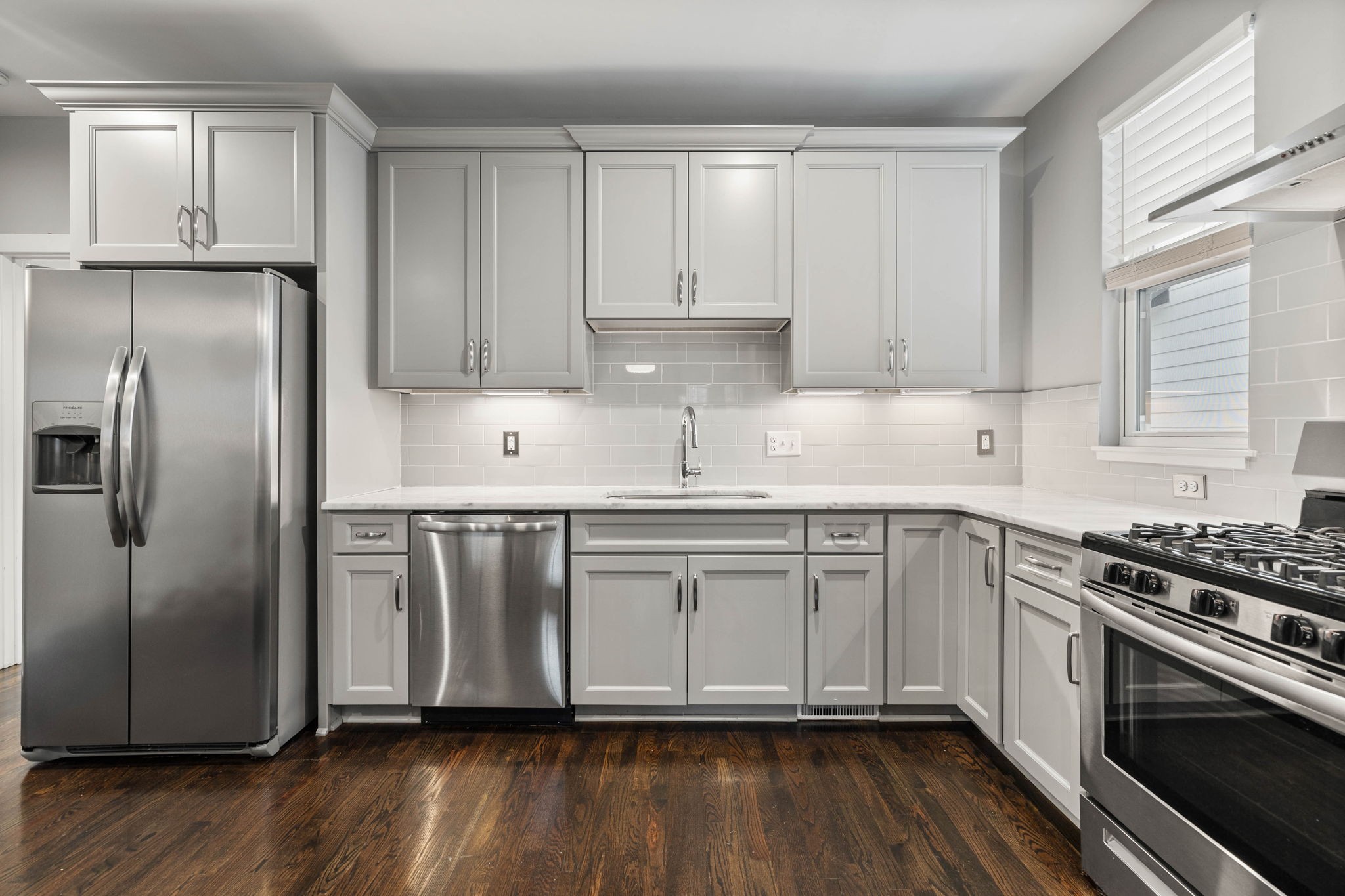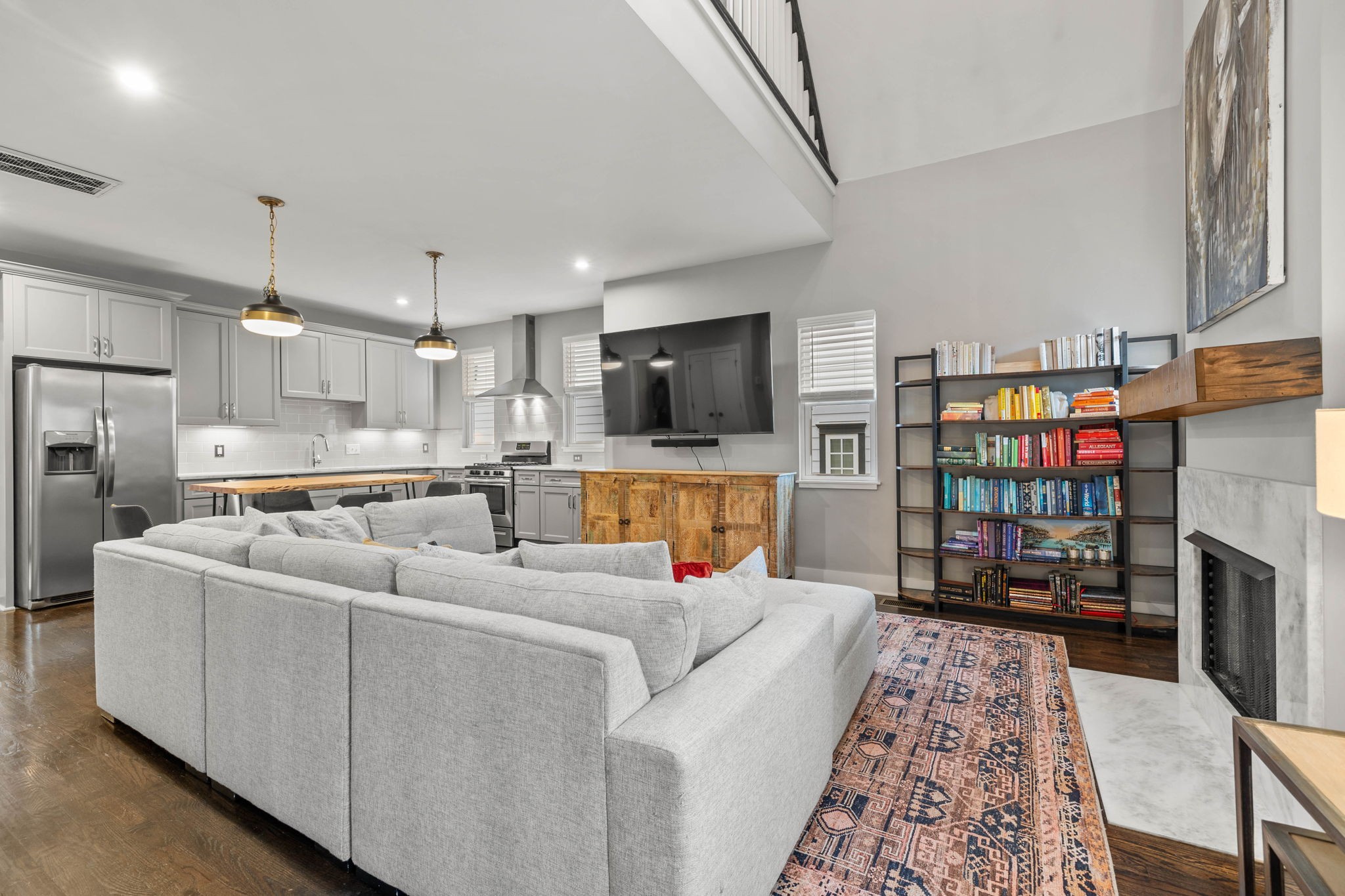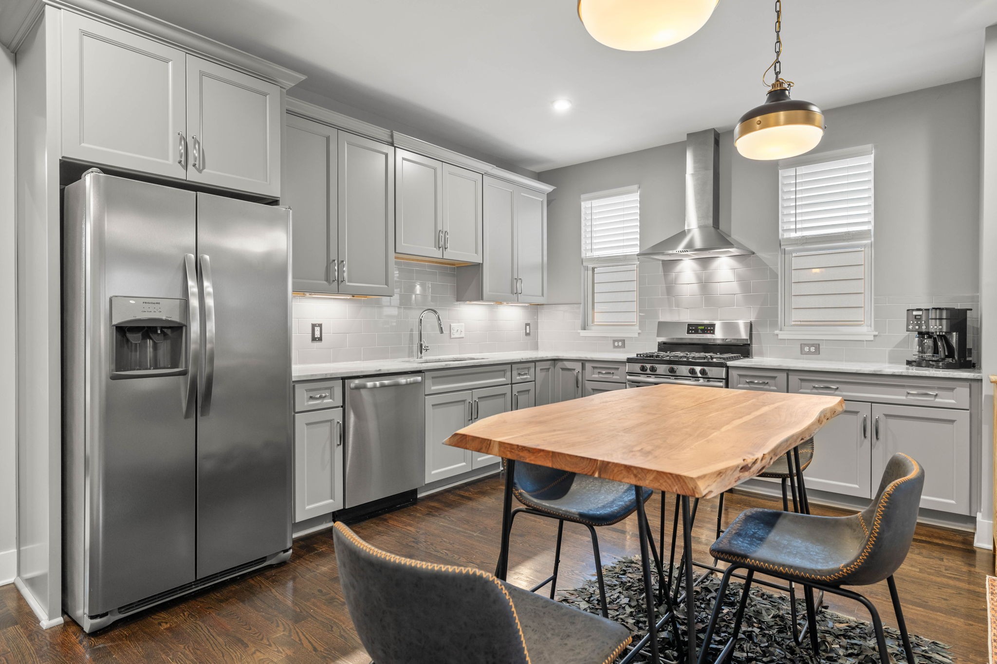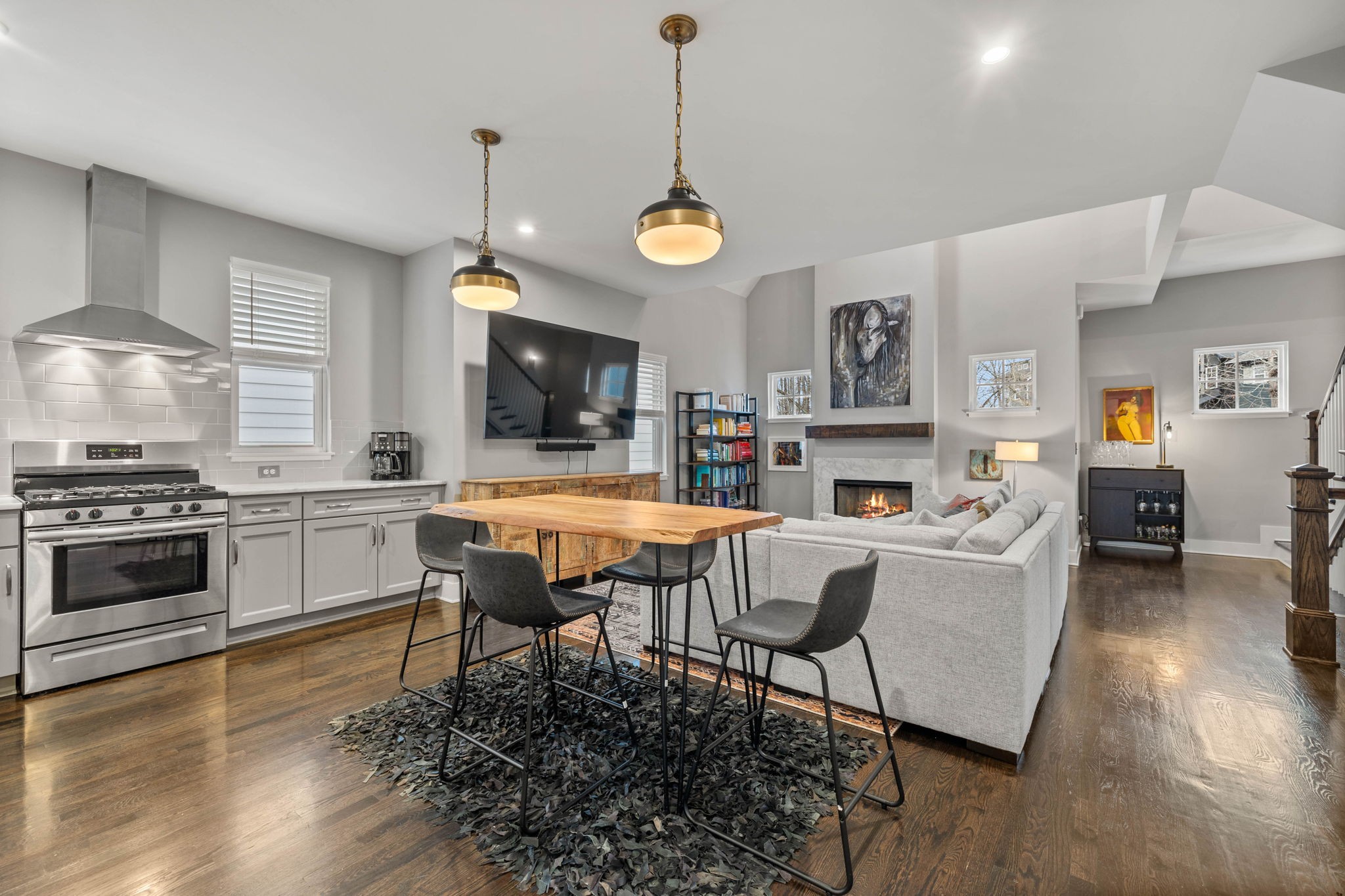 Don’t miss out on this rare opportunity in East Greenway Park, Nashville’s premier health and wellness community. Conveniently situated between 5 Points and Shelby Park, this community offers a host of amenities including a dog park, direct access to the Greenway, community gardens, and more. This home is impeccably maintained, boasting fresh paint and premium finishes like hardwood floors and custom lighting. The open-concept living area features a vaulted ceiling, while the kitchen offers marble countertops, a walk-in pantry, and stainless steel appliances. The versatile floor plan offers possibilities for various living arrangements – three bedrooms on three separate floors each with a full bathroom. All bathrooms have marble counters and tiled showers. Ample closet space throughout. Guest parking available directly across from the two-car garage. Priced below recent appraisal.