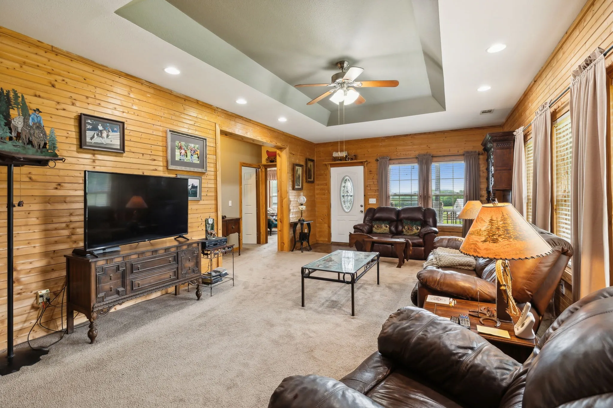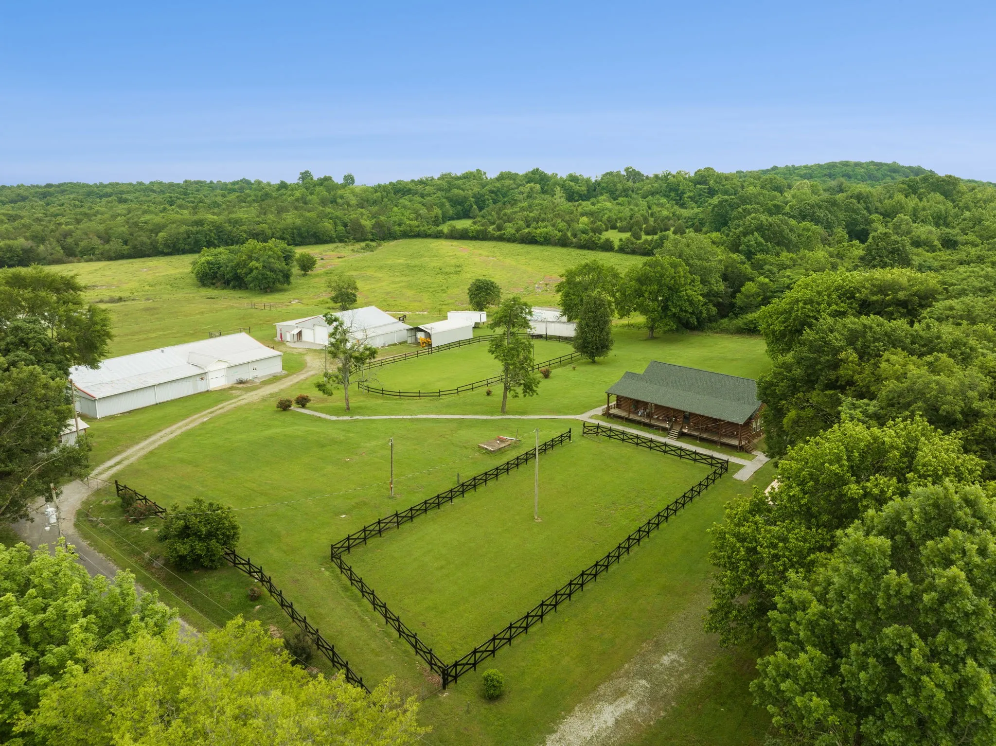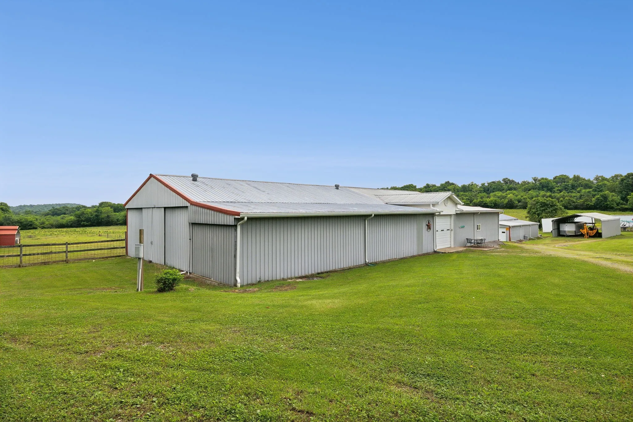 +"PublicRemarks": "A must see! Multiple world champion horses were raised and trained here. So many features! Custom built 3 Bed 2 Bath home with covered porch & deck. Refrigerator, washer, and dryer to remain! The work shop has TEN garage doors to access the high ceiling of the central workshop, separate paint room, storage, mechanic's bay, and 5 bays for finished projects. 2 riding rings, over 20 acres, 12 stall horse barn with 2 wash bays, tack room, trainer quarters with bath, and mechanical storage. Accesses are already in place for getting to any part of this complex on horseback or in a semi! An equestrian dream property. Storm Shelter below ground plus an RV site with power, water and sewer connections ready. Listing agents are happy to show on your behalf if you are not local."