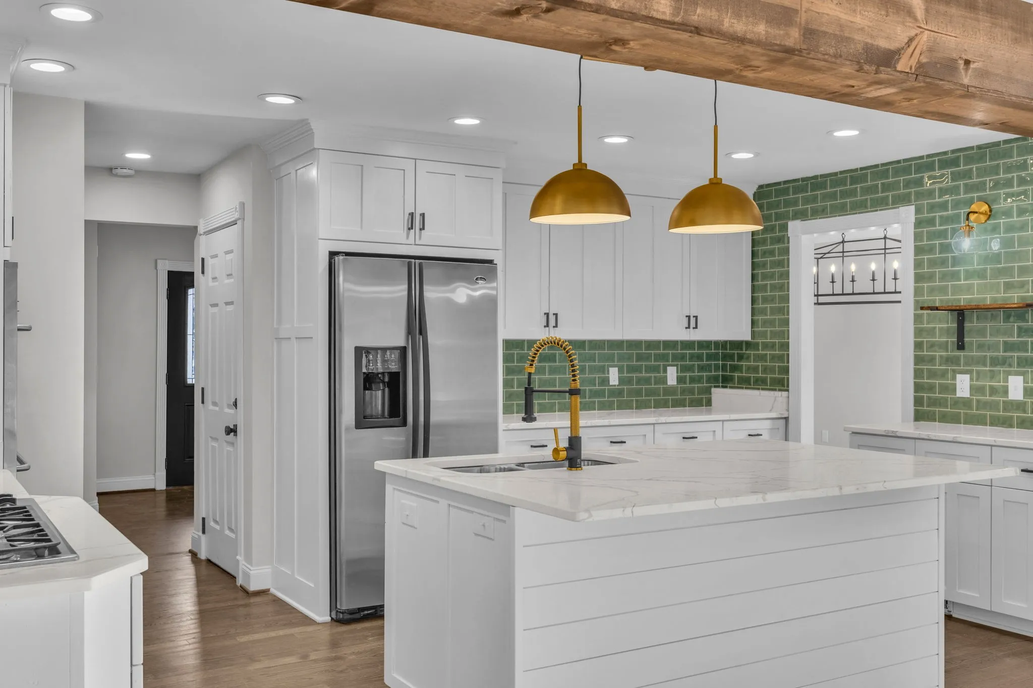 This beautifully renovated home is an entertainer’s dream! The stunning green tile kitchen backsplash and large island with quartz countertops and stainless appliances are sure to impress. The kitchen also boasts a double oven and butler’s pantry. It opens up to a huge gathering room with vaulted ceilings and a fireplace and an additional living room and dining room are around the corner. Step outside to a huge wrap-around back deck, perfect for gatherings. Three remodeled bathrooms, along with all-new light fixtures and plumbing fixtures, add modern charm. Refinished hardwood floors gleam throughout. The finished walk out basement with a separate entrance offers income-producing potential. Brand new roof and water heater. The location can’t be beat, 1 mile to Percy Priest Lake’s Elm Hill Marina, 3.5 miles to BNA, and only 9 miles to downtown Nashville!