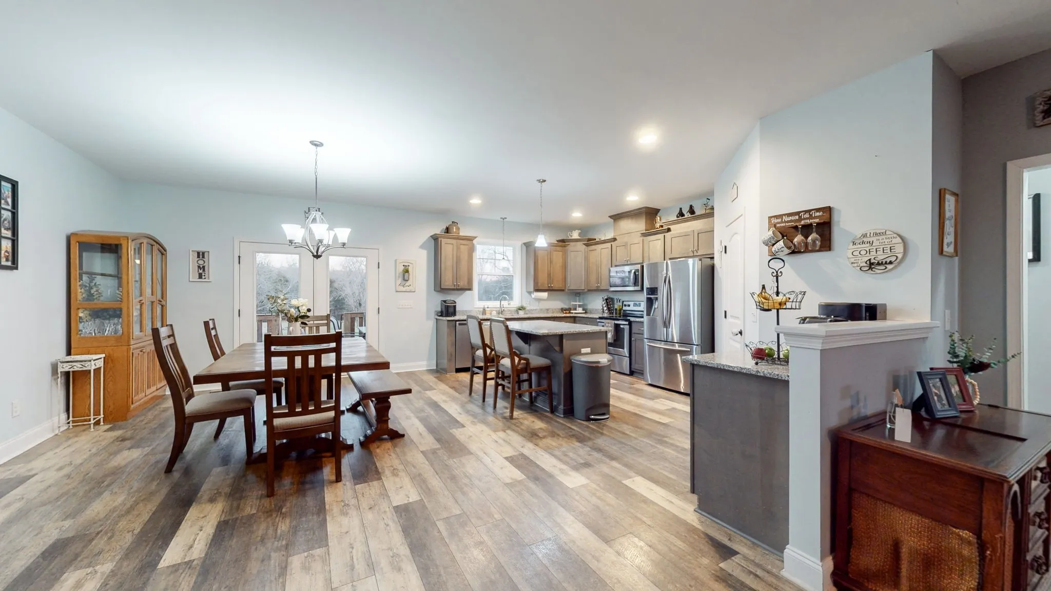 Welcome to your new home on 4 acres in Tuckers Crossroads. This beautiful home boasts an open floor plan and is great for entertaining. The kitchen is equipped with an island, granite countertops, stainless appliances, a coffee bar, and a pantry. This home features a spacious dining area perfect for gatherings. Each bedroom is a retreat, boasting walk-in closets, with the master offering two closets for ample storage. Step outside to a covered porch and fenced backyard. There is a huge fire pit, a peaceful creek running along the property, and a handy shed for extra storage. There is plenty of room to build a large shop. Conveniently located just 10 minutes from I-40, less than an hour from BNA, and 15 min to the historic Lebanon town square, this home is the epitome of comfortable, accessible living.