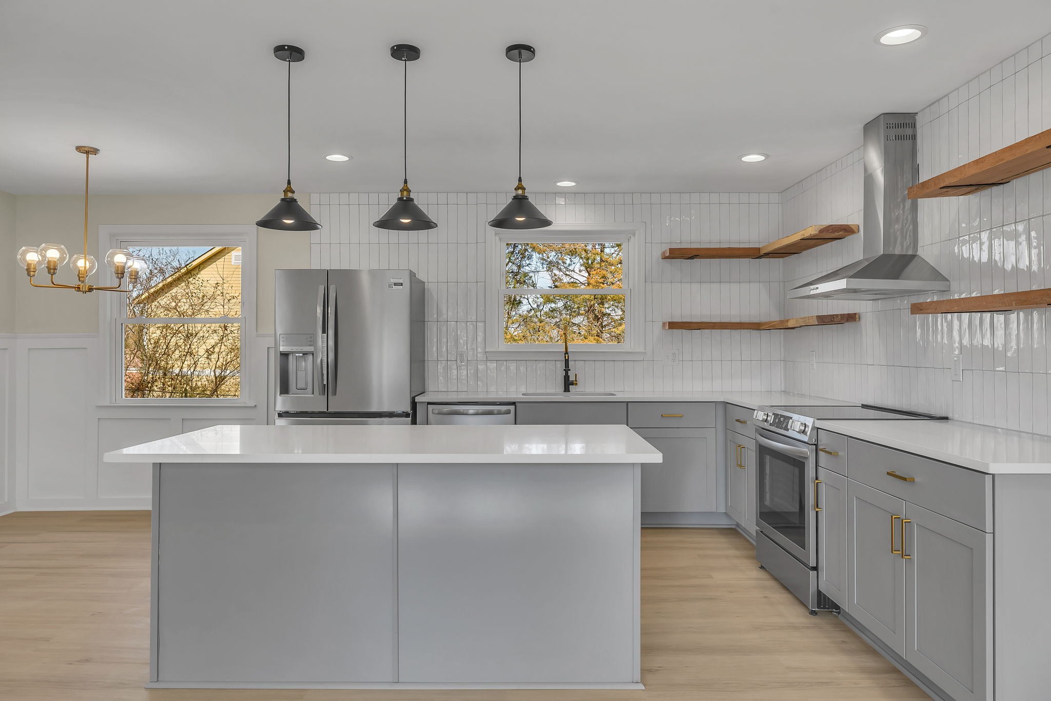 Beautifully renovated, ranch-style home on the west side of Lebanon. Step inside to an open living space and a sleek kitchen, complete with new soft close cabinets, stainless appliances, quartz countertops, large island, beautiful open shelving, and a modern tile backsplash. The primary bedroom features an ensuite bathroom with a tile shower and a walk in closet. This split bedroom floor plan has the three additional bedrooms on the other side of the house and one of them even has its own half bath! The flex space is well suited to be an office or play room. The large laundry room has a great drop zone and additional cabinets and shelving that provide extra organization space. This home has new flooring, paint, lighting and plumbing fixtures, electrical and a new water heater. Conveniently located to shopping, schools and close to I-40, you can get to BNA in 25 min or downtown Nashville in 35 min.
