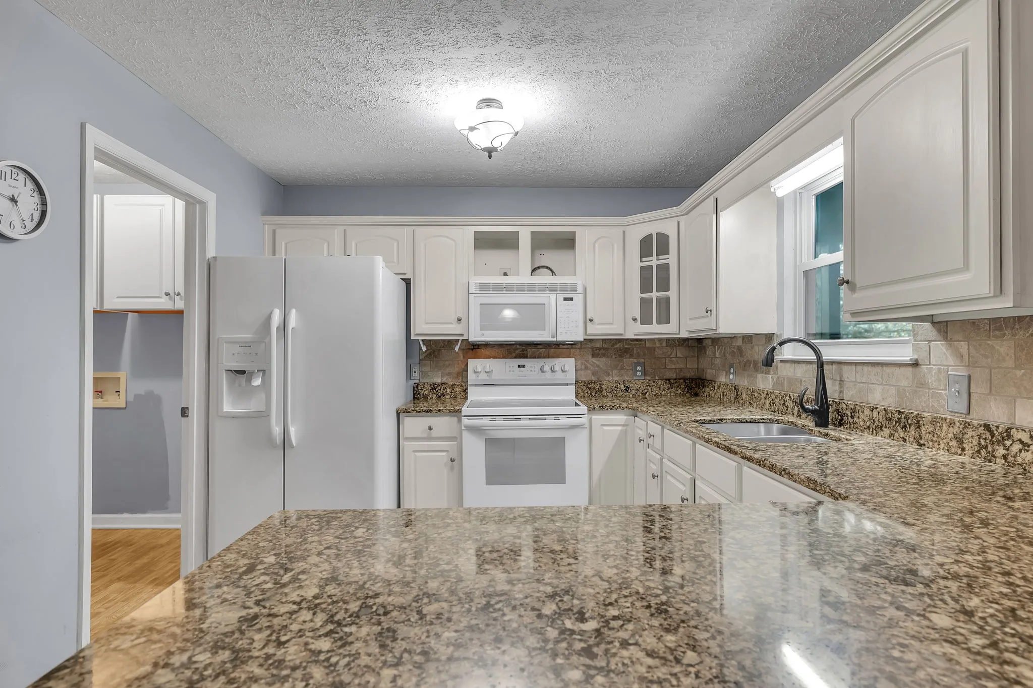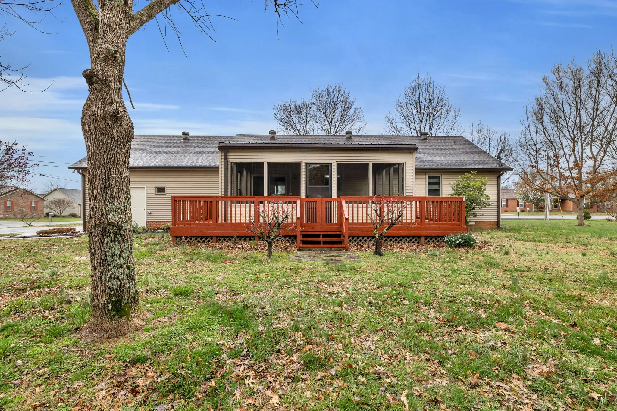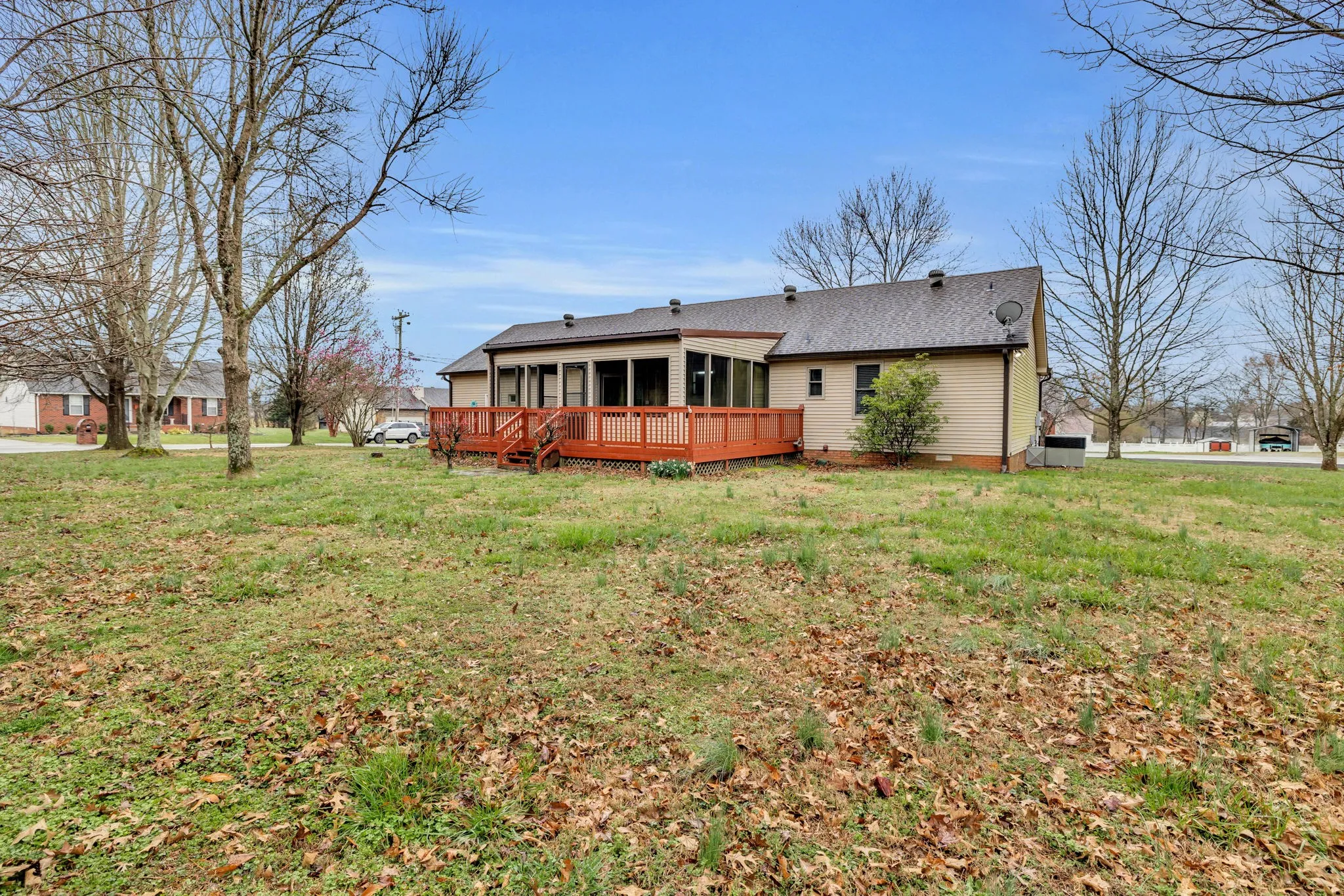 Exceptional brick ranch offering one level living | Rare opportunity to own in coveted Karlee Estates | Meticulously maintained | Refinished cabinets, granite counters, & tile backsplash in kitchen, refrigerator included | Fresh paint throughout | Gleaming hardwood floors | Ventless fireplace | Owners suite with soaring ceiling, double vanity, dual closets, new accessible walk-in shower | 2″ blinds | Expansive 15×21 screened-in deck with ceiling fan & porch swing to enjoy coffee in the morning or grilling in the evening | Large .7 acre corner lot with peaceful, level back yard | 2 car garage, extra refrigerator and rubbermaid storage in garage can stay | Storage shed | No HOA | Ideal country location yet only 5 miles to groceries, restaurants, hospital, etc | 3 miles to Coles Ferry boat ramp | 30 miles to BNA International Airport | 1 year home warranty with acceptable offer