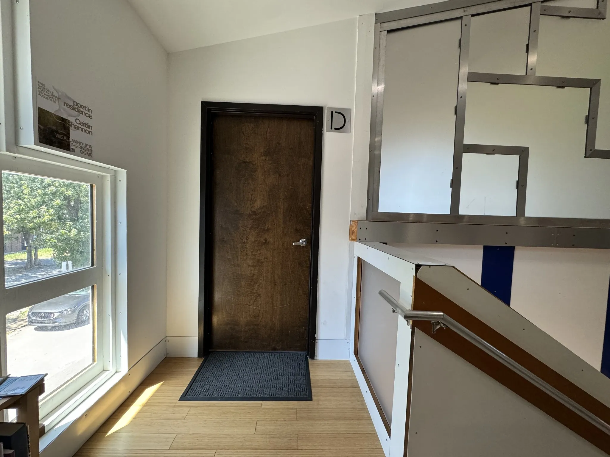 Second floor office, studio or gallery space available in WeHo arts hub. Located in The Packing Plant, the space has vaulted ceilings and views of Fort Negley. Along with the private office space, the tenant has use of the front yard, off-street parking and a community lounge. The building houses art galleries, an independent radio station and a poetry library.