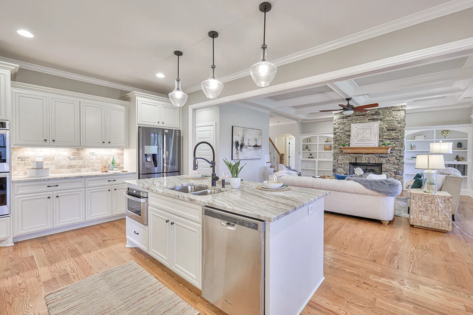 Look no further, this one has it all! Custom kitchen with a huge granite island, double ovens, gas range with a pot filler, all open to the great room that features a beautiful stone fireplace. Primary bedroom has a custom tile shower & walk-in closet. Second bedroom is also on the main level with a full bath. The open concept makes it great for entertaining! Upstairs you will find a huge bonus room with a wet bar, two bedrooms and a full bath as well as a walk-in attic for extra storage. Fully unfinished basement that has 2109 sq. ft. (not included in sq. ft) is roughed in with electric & plumbing ready for you to finish out if you desire! You will love the privacy of the backyard, while watching all the wildlife! Oversized 3 car garage! Come see it for yourself! You will not be disappointed!