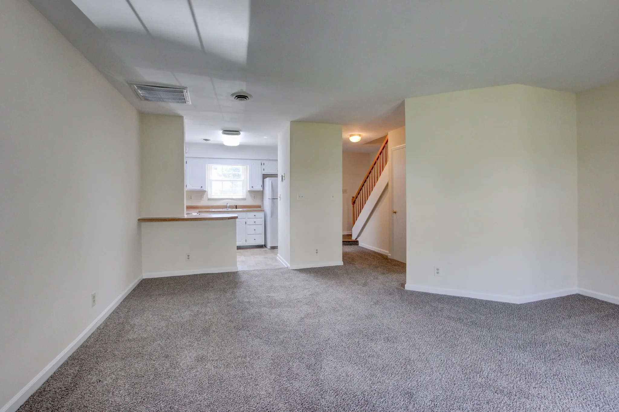 Looking for AFFORDABLE OWNERSHIP? Here you go, Freshly painted and new carpet this condo is ready for you to move in! Large great room with corner fireplace, Kitchen with all appliance’s, and 1/2 bath on main level. 2 bedrooms, Hall Bath, and Laundry closet upstairs(washer and dryer convey “as-is”). Patio and storage room out back overlooking some of common area “green space”