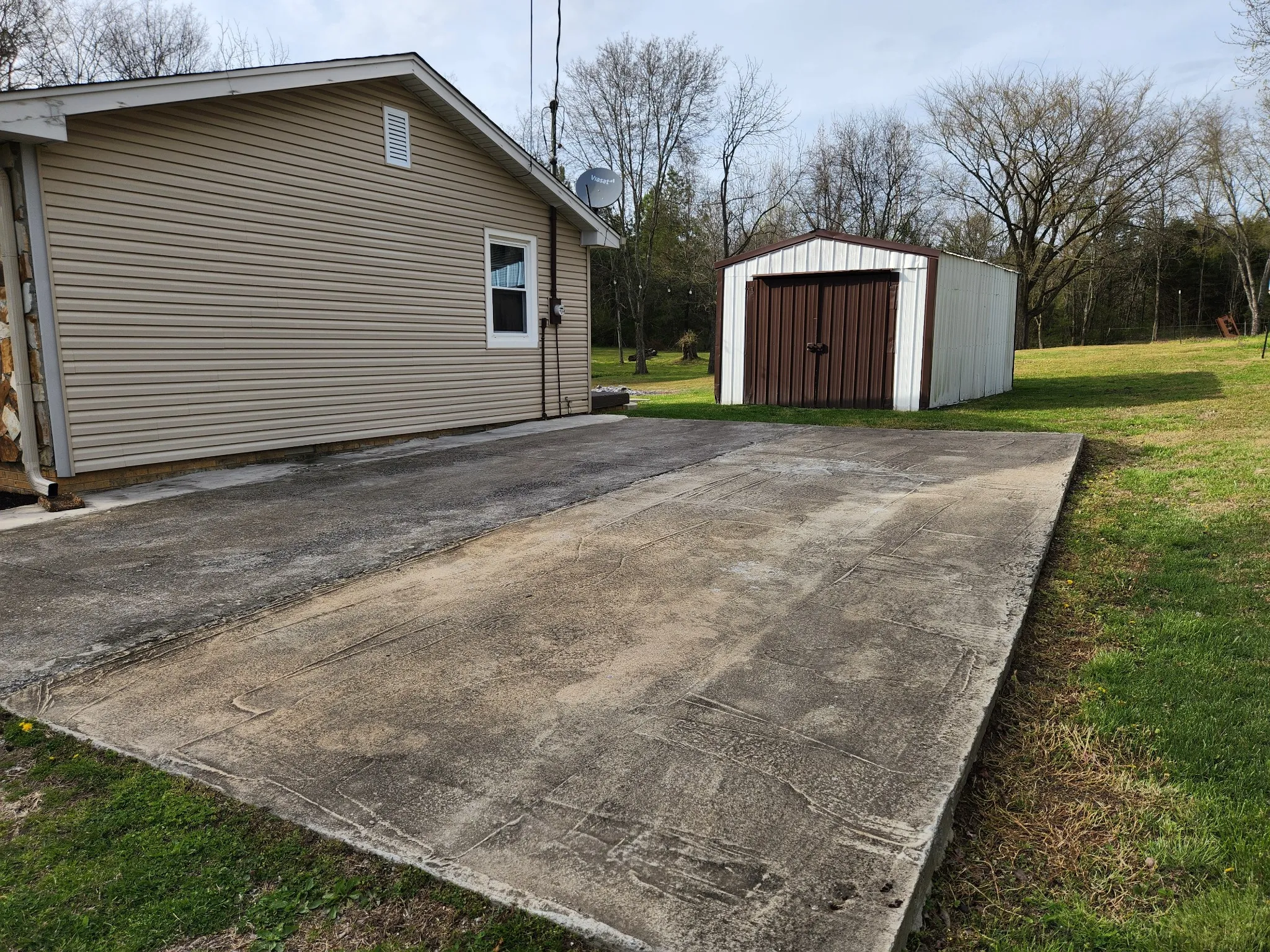 Privacy anyone? Beautiful one level home located on over an acre! Open Floorplan. Newer carpet, laminate flooring and fixtures. Newer kitchen countertops and appliances. Nice concrete patio to enjoy the backyard. Large trees. Backs up to woods. Large Concrete pad for extra parking. Storage Barn. Very convenient to I-840.