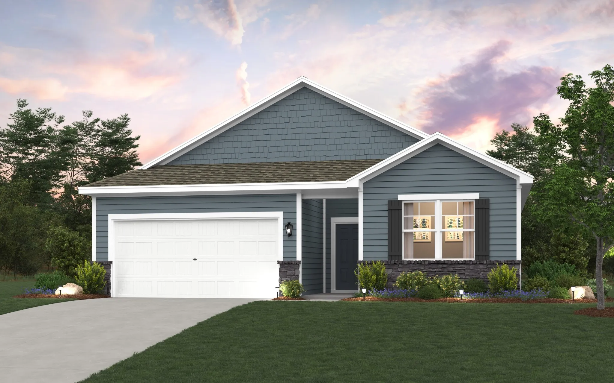 UNBELIEVABLE BACKYARD SIZE!! This community is a must see with its deep homesites and thoughtfully designed homes. The Glenville features 4 bedrooms and 3 baths with an open concept first floor and includes a second bedroom suite ALL ON ONE LEVEL! The kitchen includes granite counters, stainless steel appliances with gas range and recessed lighting. Laminate flooring throughout the main areas of the first floor with tile flooring in all wet areas. List price is the sales price INCLUDING ALL upgrades! Don’t miss out. Buyers can enjoy up to 4% of the sales price towards closing cost or Rate Buy down with Inspire Home Loans