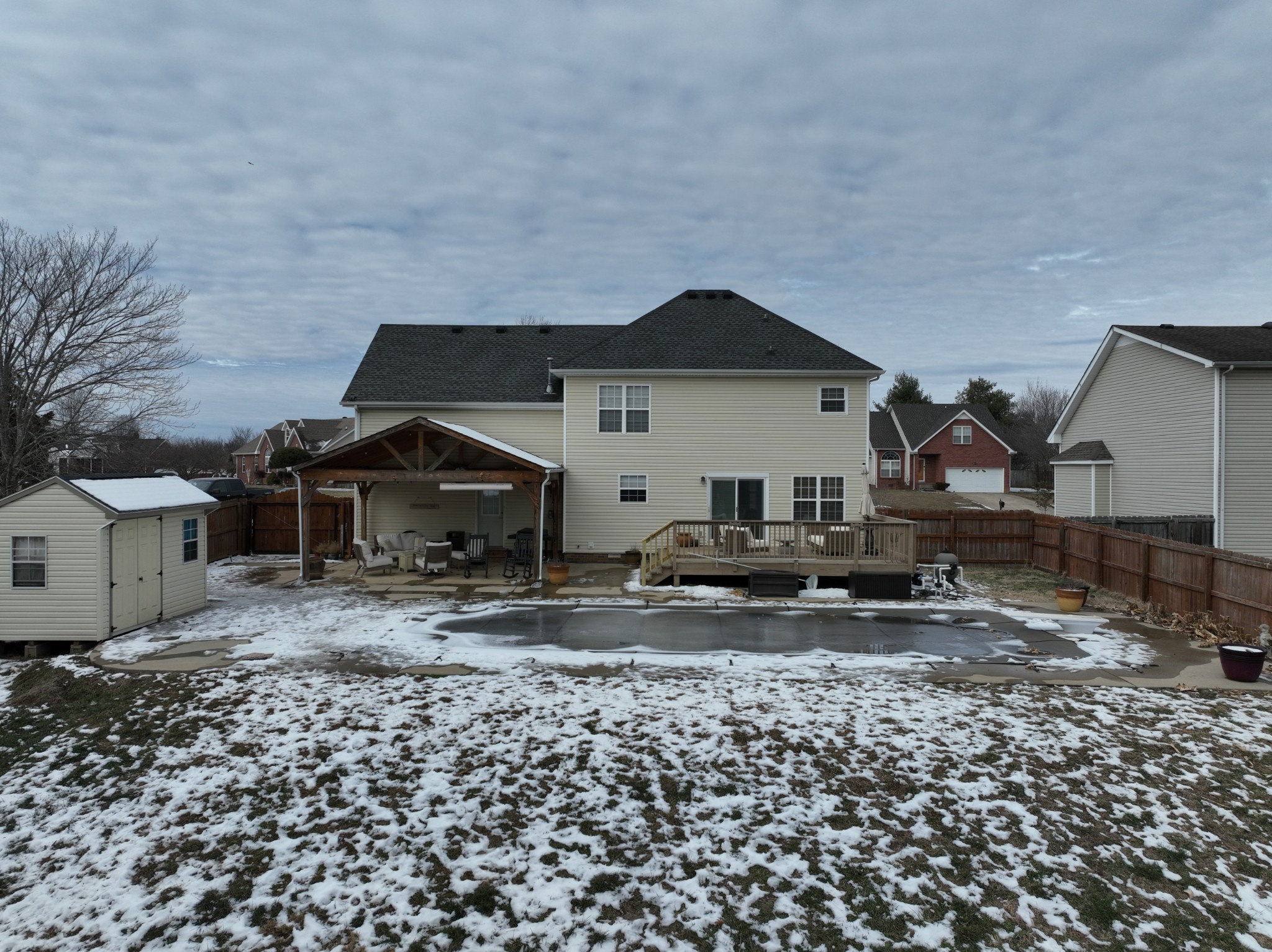 MOVE IN READY! Back on the market due to no fault of the sellers. Remarkable home located in the wonderful Poplar Hill community. This contemporary 2-story home with inviting floor plan features a great room with gas fireplace, hardwood flooring in entry foyer and formal dining room, eat in kitchen with pantry, laundry and 1/2 bath. All 3 bedrooms located on second level. Master suite includes tray ceilings, sitting area, full bath with double vanities, corner soaking tub, separate shower and walk in closet. HUGE bonus room with tons of natural light. Get ready to be poolside in Sango this summer with your own backyard escape featuring an INGROUND POOL, large deck and sprawling covered patio. Spacious fenced in back yard offers two separate storage buildings. This beautiful home has exactly what you are looking for!