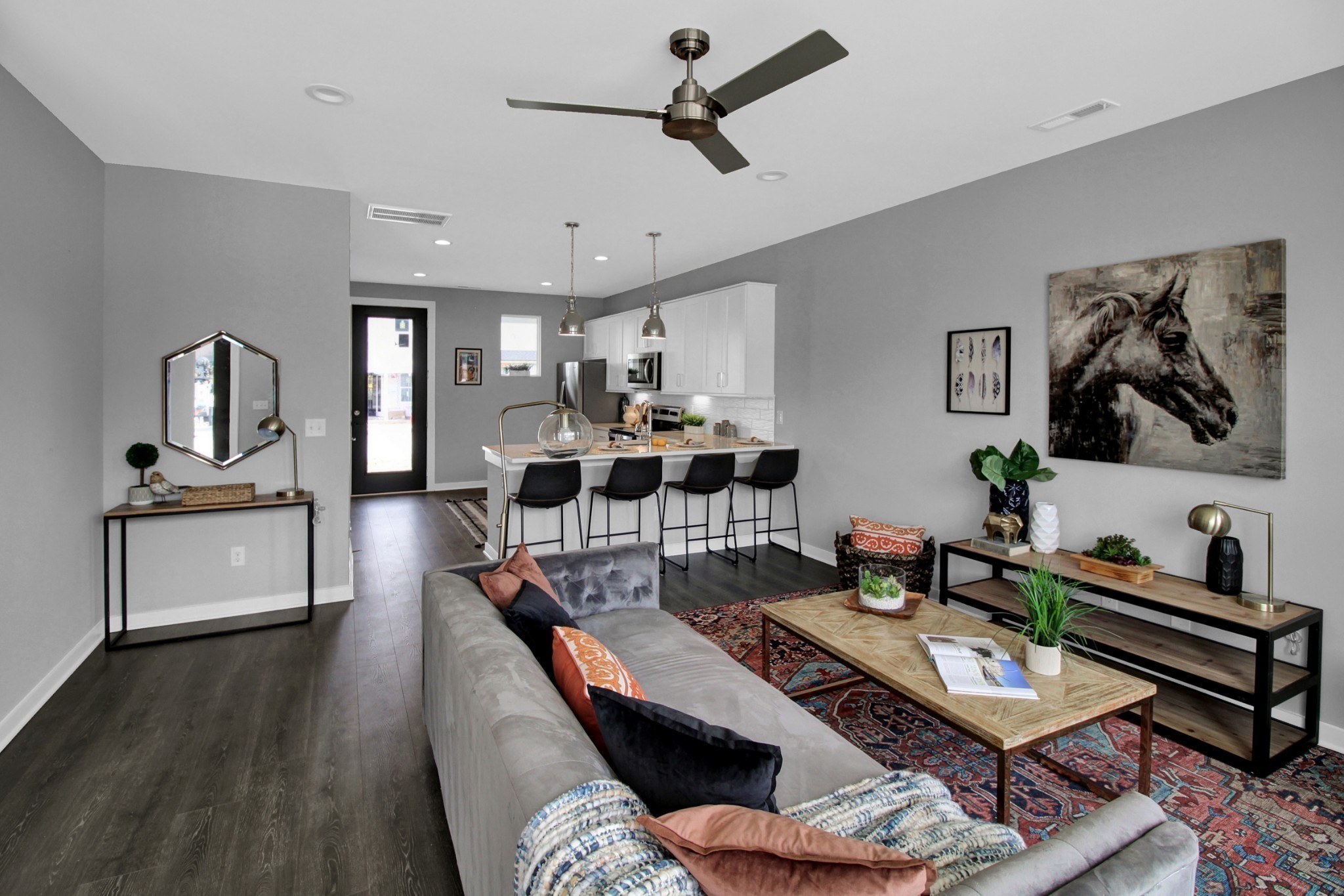 FIRST MONTH OF RENT FREE. A beautiful three bedroom townhome with 2.5 baths. Only one year old with one previous tenant. Washer/dryer included. Hardwood throughout. Unit available now. Up to two pets allowed. Extra storage on back porch. Photos are of a staged unit with the same floor plan.