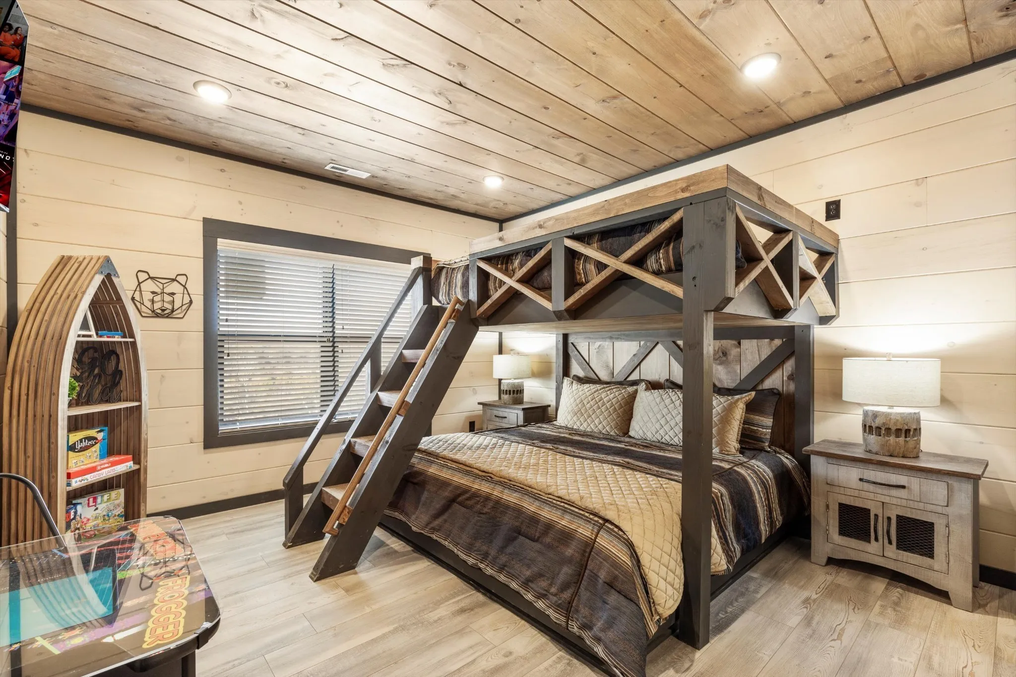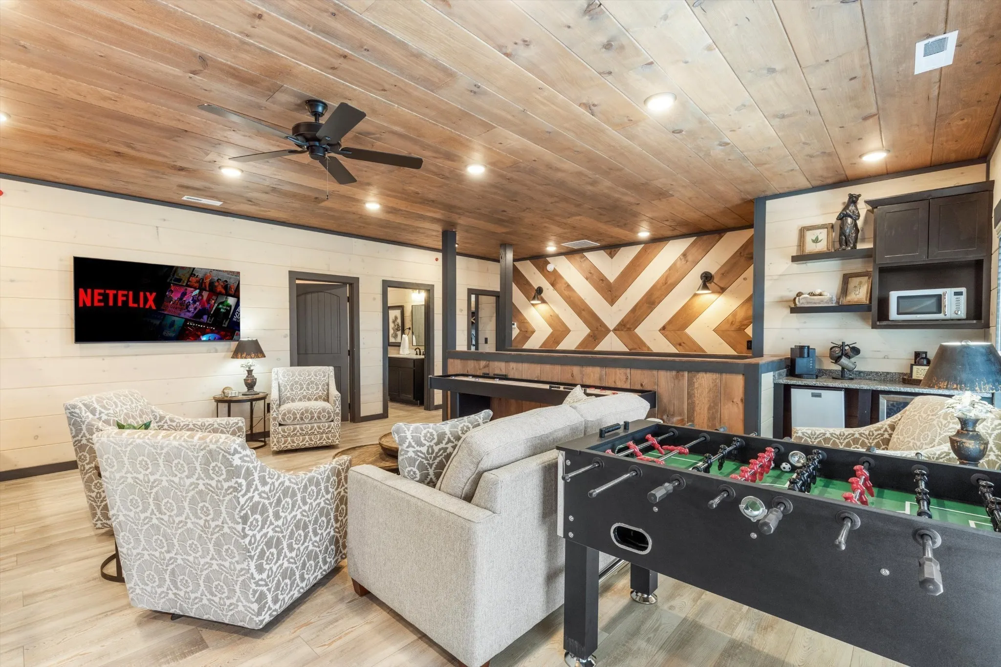 INTRODUCING THE 3RD FLOOR DECK ON A 6-BED! Amazing Smoky Mountain Views AND a View of Rambling Creek Water Park! EXCLUSIVE WATER PARK in a brand-new CABIN COMMUNITY! Limited numbers of cabins with MOUNTAIN VIEWS! Schedule your private tour of a one-of-kind cabin community with a MULTI-MILLION DOLLAR WATERPARK–exclusively owned by the cabin owners –purchase price of WATERPARK included within CABIN PURCHASE (and NO admission charge to overnight guests!) This property boasts of a 6-BED cabin with a PRIVATE INDOOR POOL (plus access to a waterpark!), a PRIVATE MOVIE THEATRE, and GAMEROOM… with contemporary styling and designer finishes. Cabin conveys fully-furnished with a fully-stocked kitchen. Sprinkler system throughout cabin. Turnkey ready to rent. Designed by professional design team. NO restrictions on self-mgmt or cabin mgmt. An ABSOLUTE MUST SEE–located ONLY 1 mile from the Parkway. Ask listing agent about other 5-8 bedroom cabins throughout the Smoky Mtn area.