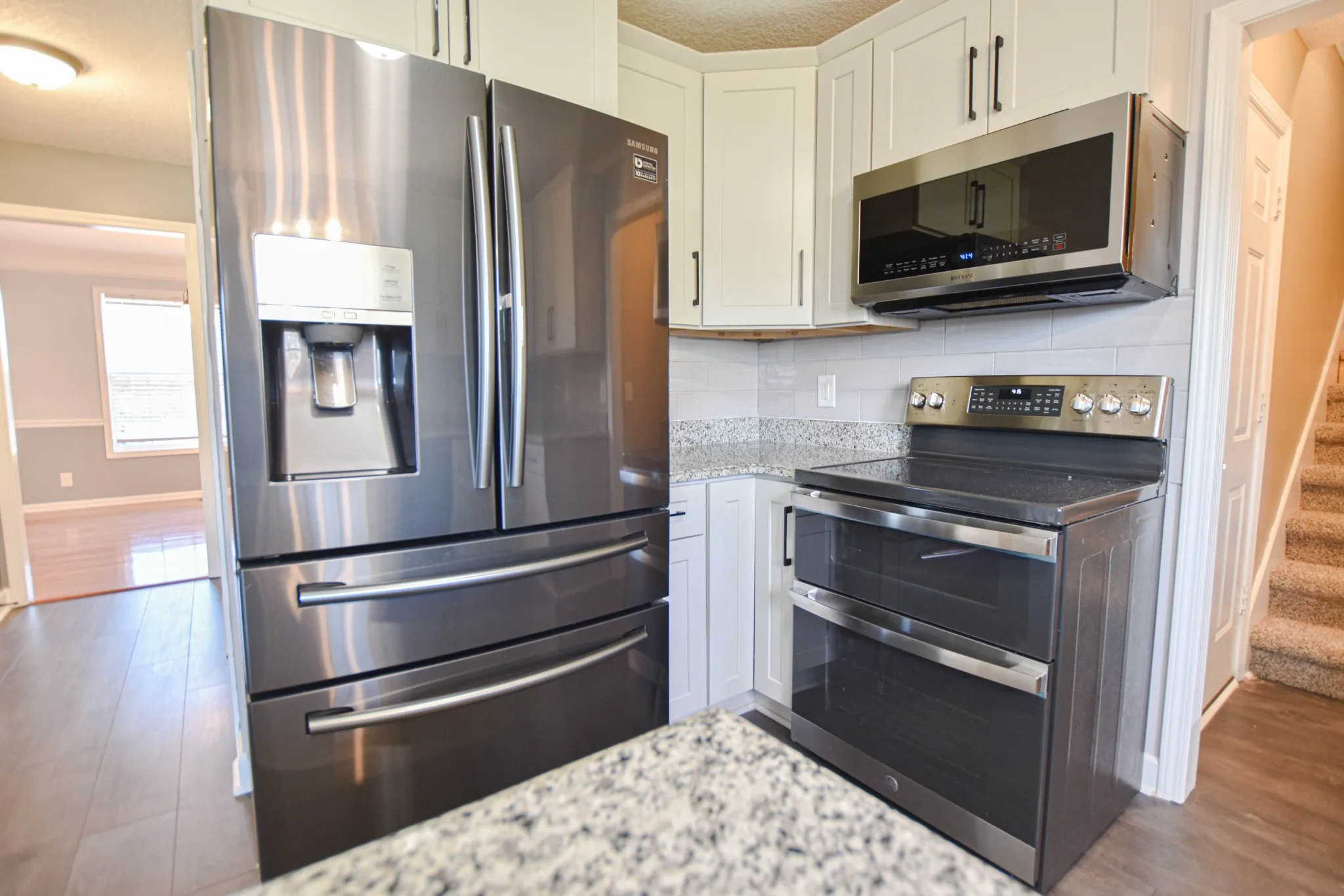 Spacious three bedroom home in established neighborhood! Functional floor plan with large living room featuring fireplace, updated eat in kitchen with granite counters & stainless steel appliances, plus additional formal dining! Large primary suite with full bath featuring double vanity & jetted tub! Both guest rooms are generously sized! Extra large bonus room on second level!
