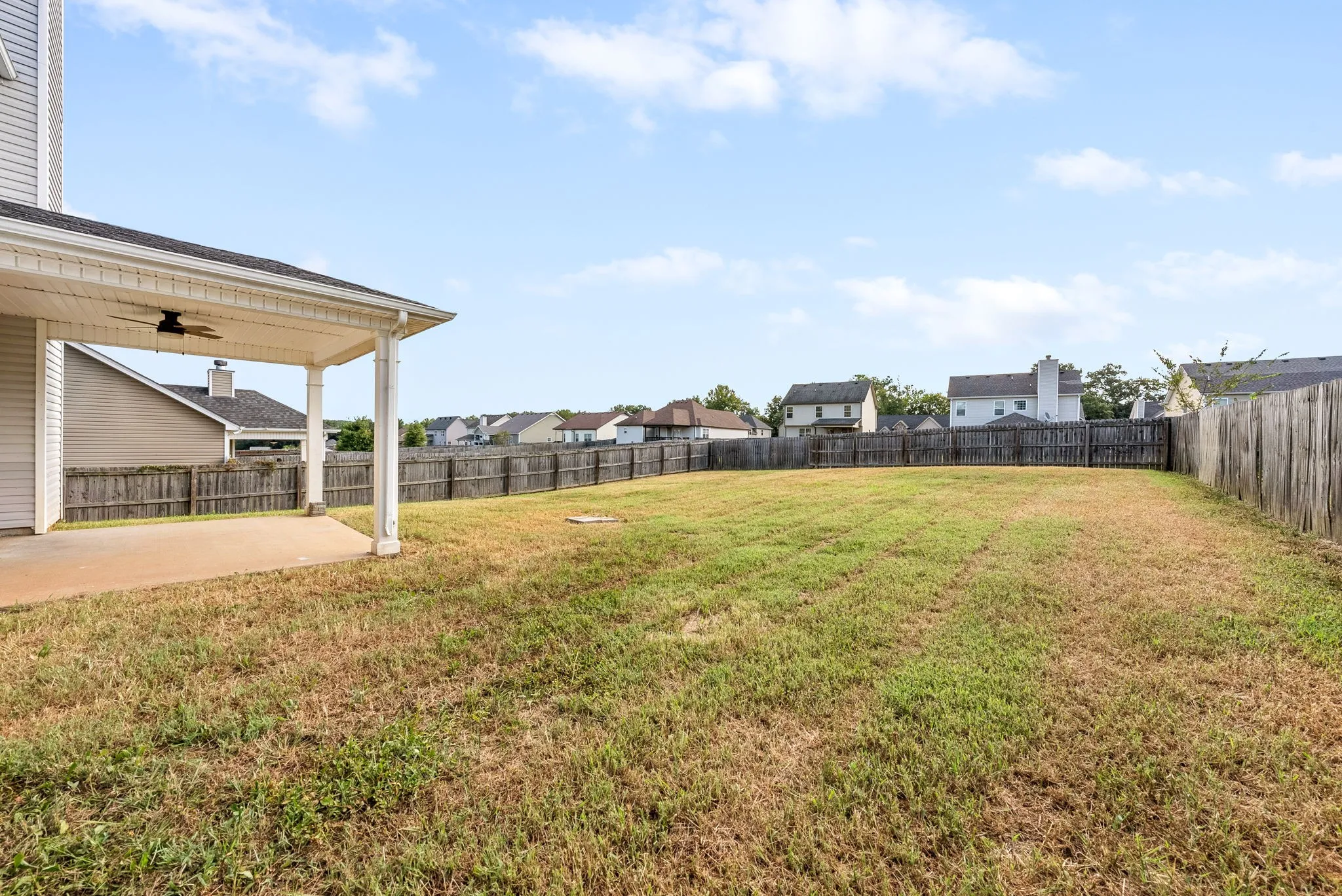 Conveniently located approximately 13 minutes from Fort Campbell Army Base you’ll find this very charming 3 bedroom/2.5 bath home to call your home! Main level features half bath, spacious living room with beautiful wood burning fireplace to nestle up to on colder nights. This is an open floor plan with an island kitchen to be able to entertain and socialize with guests! Kitchen is large with plenty of cabinet space, stainless steel appliances, and a beautiful backsplash for the extra cozy touch. Walk outside after a dinner and enjoy an evening in your large fenced back yard with a covered patio. Don’t worry the front porch is covered too! Upstairs you will find the primary features beautiful tray ceiling and a large full bath with dual sink vanity, separate shower and soaking tub and walk in closet. One of the additional bedrooms features an large walk in closet. Both additional rooms are plenty spacious! Home is also listed for rent!