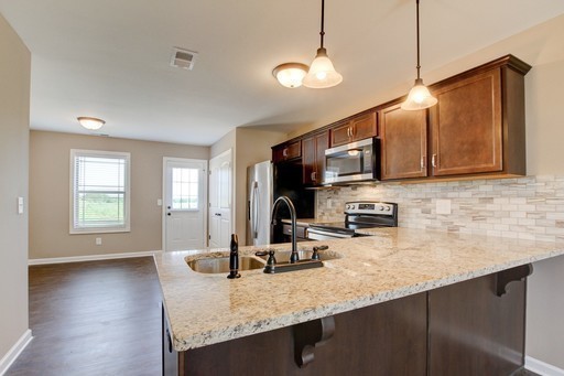 *First Month Free With 13 Month Lease* Luxury Living at An Affordable Price Boasting An Open Floor Plan with Hardwood Flooring in Spacious Living Room and A Breakfast Bar Opening into the Eat In Kitchen with Granite Counter Tops, Stainless Steel Appliances and Pantry. Also Showcases Two Large Bathrooms with Ceiling Fans and Shared Full Bathroom with Large Vanity. The Semi-Private Back Patio Offers Space for Relaxation or Entertaining. With This Beautiful Town Home Convenient to I-24 and Trash and Water Included. Pet Policy: Pets Younger Than 1 Yr Must Have Owner Approval – Pets $200.00 Non-Refundable Pet Fee Each Pet – $25 Monthly Pet Rent First Pet; $10- 2nd: 2 Pets MAX- 50 lbs Combined Weight. Example Photos. Color and Style of Finishes May Vary.
