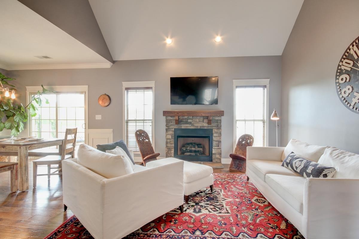 Stunning Estate Features A Living Room With Vaulted Ceiling, Hardwood Flooring, Stone Front Fireplace, Formal Dining Room and A Masterful Kitchen with Dark Cabinetry, Tile Back Splash, Granite Counter Tops and Stainless Steel Appliances. Open Floor Plan of This Impeccable Home Also Boasts The Primary Bedroom Suite Showcasing a Trey Ceiling and Customized Walk- In Closet. Not To Mention the Ceramic Tile Surround in The Primary Bathroom Separate Shower and Garden Bathtub.