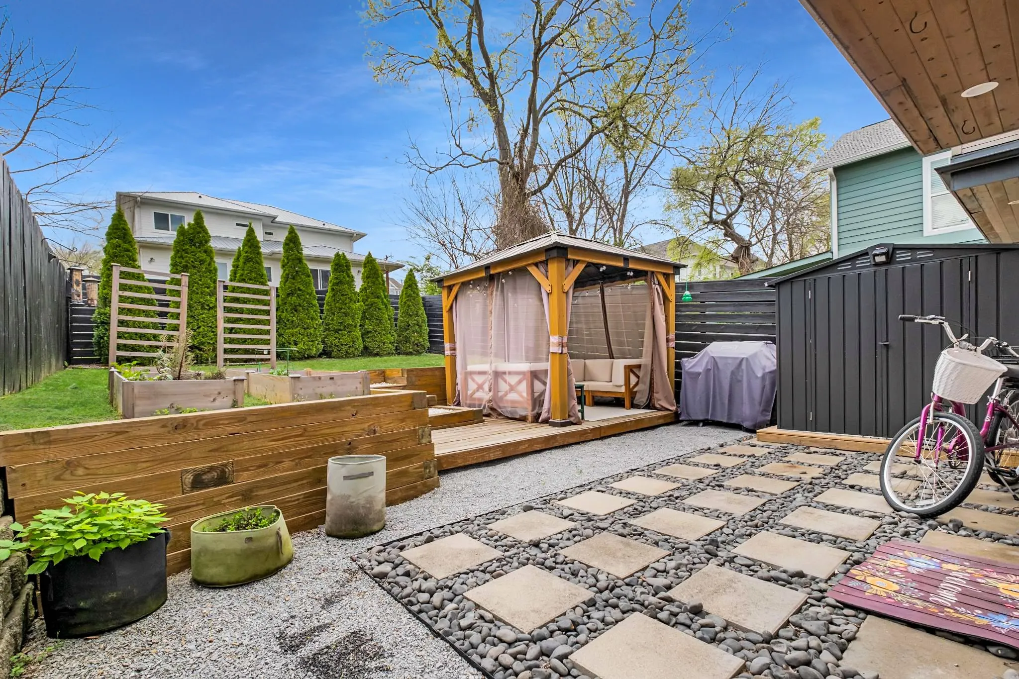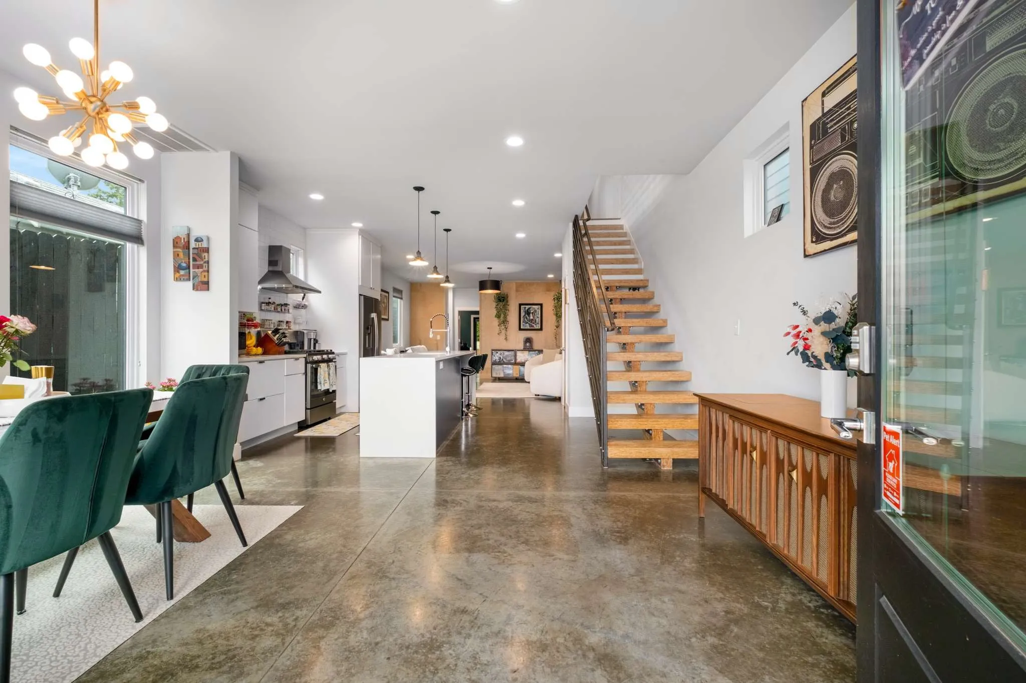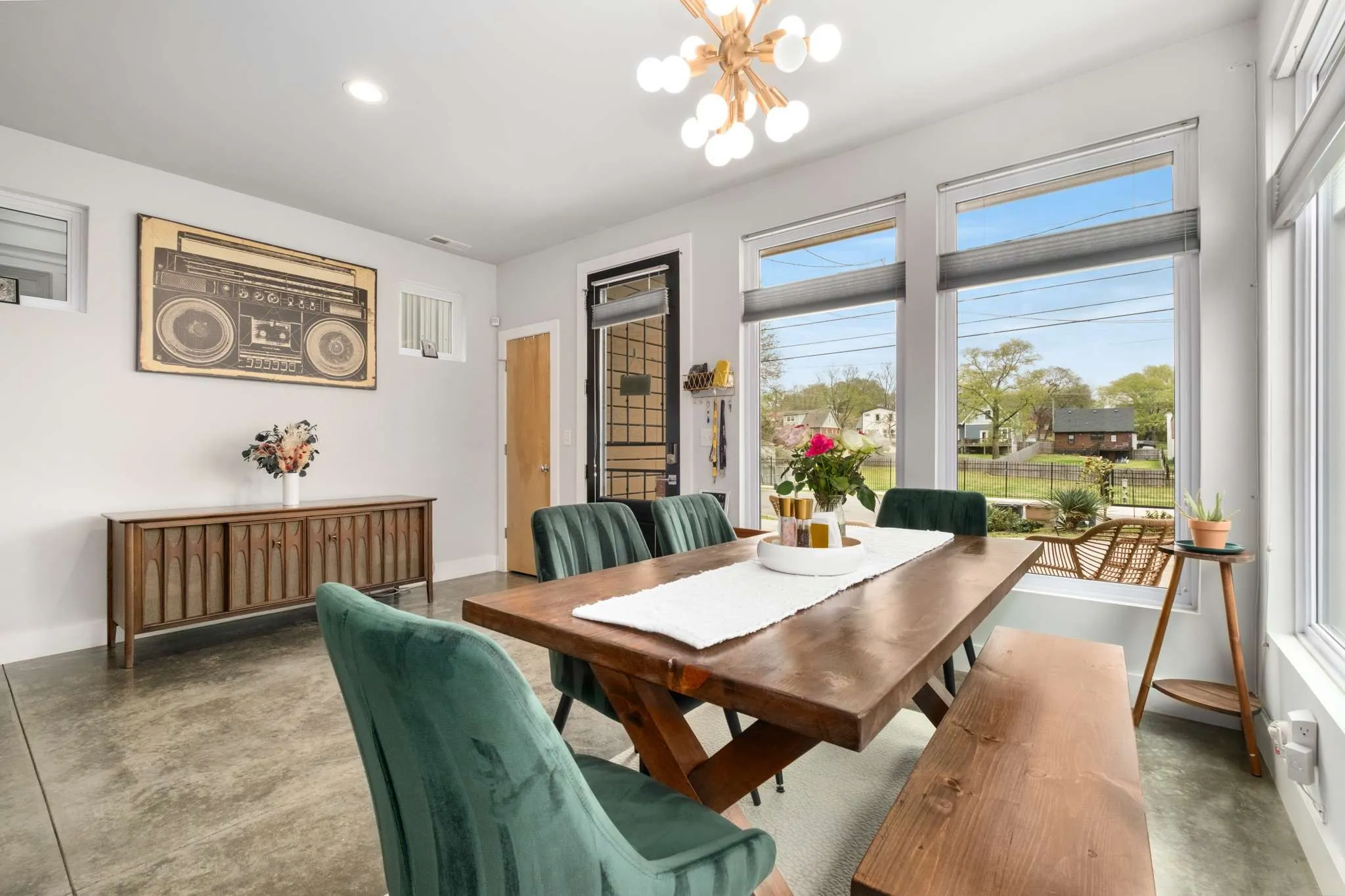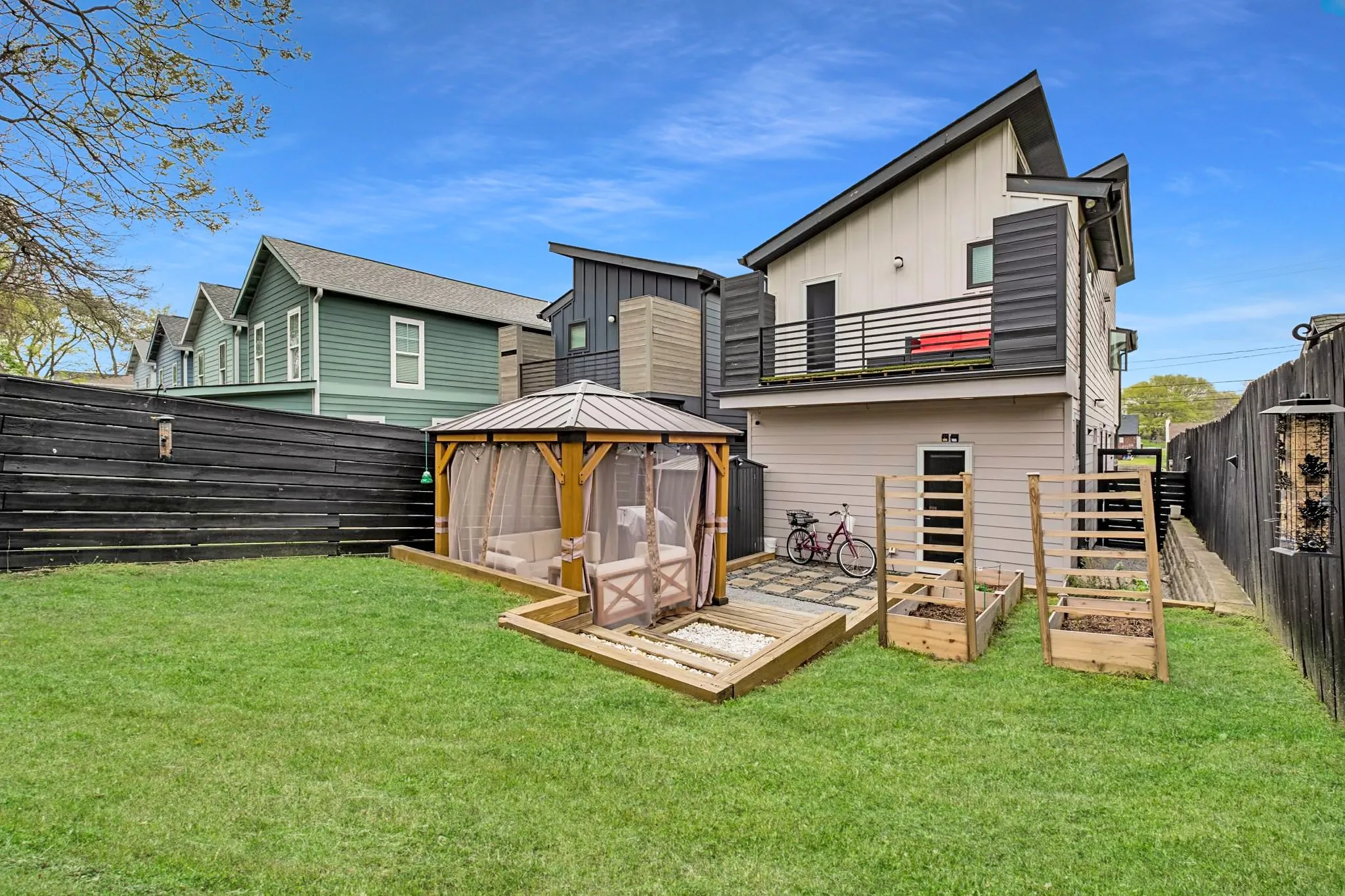 Discover contemporary luxury in East Nashville with this 3-bed, 3-bath modern single-family home. Designed with a sleek, Scandinavian-inspired aesthetic, the home features stained concrete floors on the main level and exquisite hardwoods and tile upstairs. The open-concept kitchen, dining, and living area, complete with a gas fireplace, offers a seamless flow for modern living. Two upstairs bedrooms, each with private baths, and a bonus loft space create a perfect balance of comfort and style. The upstairs Primary bed opens to a private patio with serene backyard views. A flexible room on the main level can be customized as a 3rd bedroom with a full bathroom, office, or media room, with direct access to the professionally designed and fully fenced backyard. A true oasis, beautifully hardscaped and outfitted with a pergola, lighting & more. This home is a must-see to fully appreciate. Convenient to neighborhood hot spots like Dose, Elegy, Cafe Roze, Schulman’s, Ladybird Taco & more!