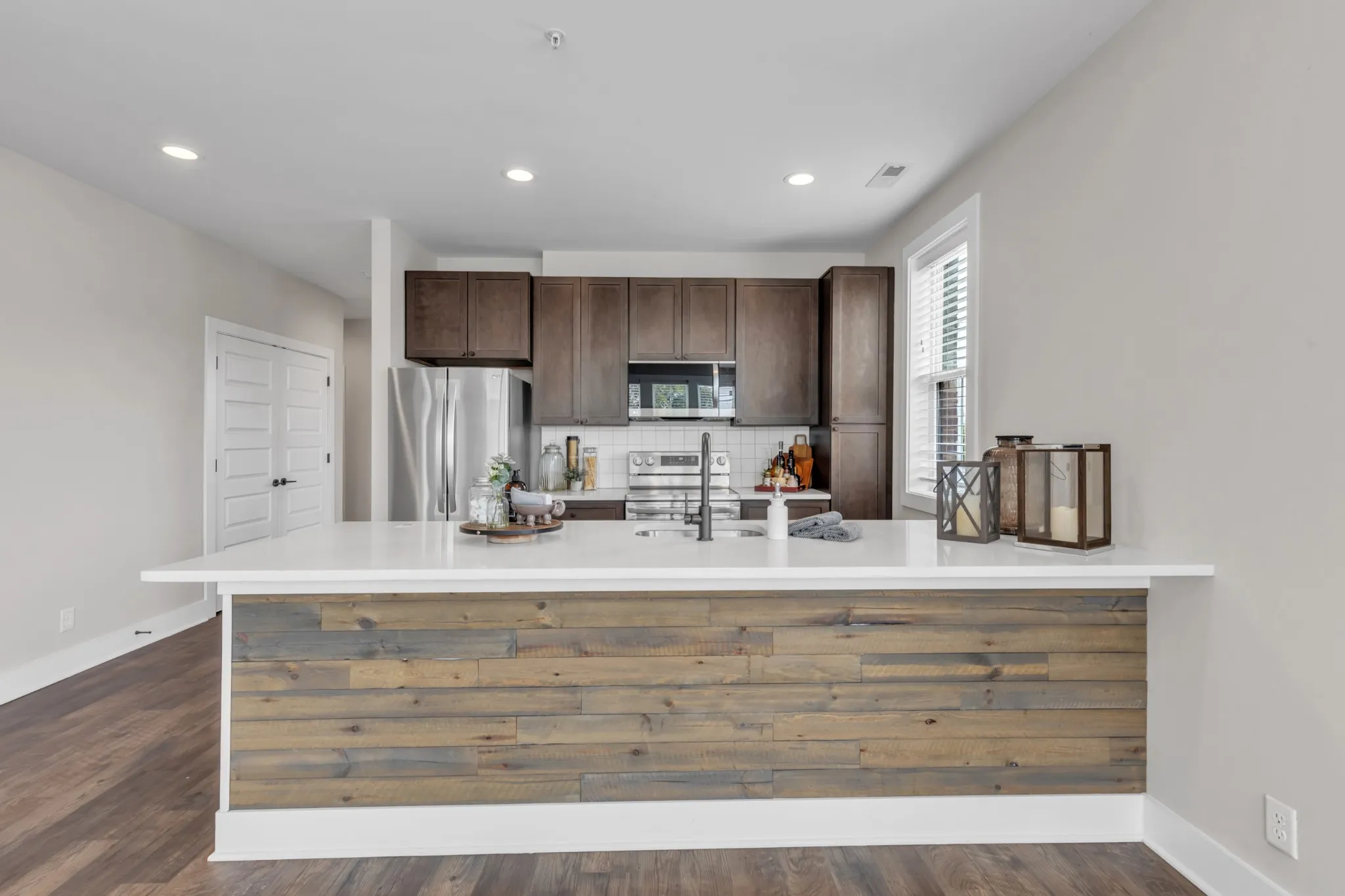Welcome to The Edison, a modern mixed-use condo building offering a 2 bedroom & 2 full bath end unit condo! This unit has tons of windows with a modern feel throughout. The open layout kitchen overlooks the living area and is equipped with brand new, LG stainless steel appliances, flat panel cabinets, quartz countertops & a large pantry. Both baths have matching quartz countertops & custom tile. The master bath is spacious w/double vanities, linen closet and walk-in closet. The utility space can be found down the hall between both bedrooms for ultra convenience. Located in a super cool area, this condo is next to Gallatin Pike, Grimey’s Music, Nicoletto’s Italian Kitchen, Fox’s Cocktail Bar, Elegy Coffee, Hola Yoga (downstairs) & ton of other food and shopping places as well as being only 2 miles to I-65 and 12 minutes to Downtown Nashville. The Edison also has an elevator & alarge, modern flex space. Don’t miss out on the opportunity to make this your dream condo in a great location!
