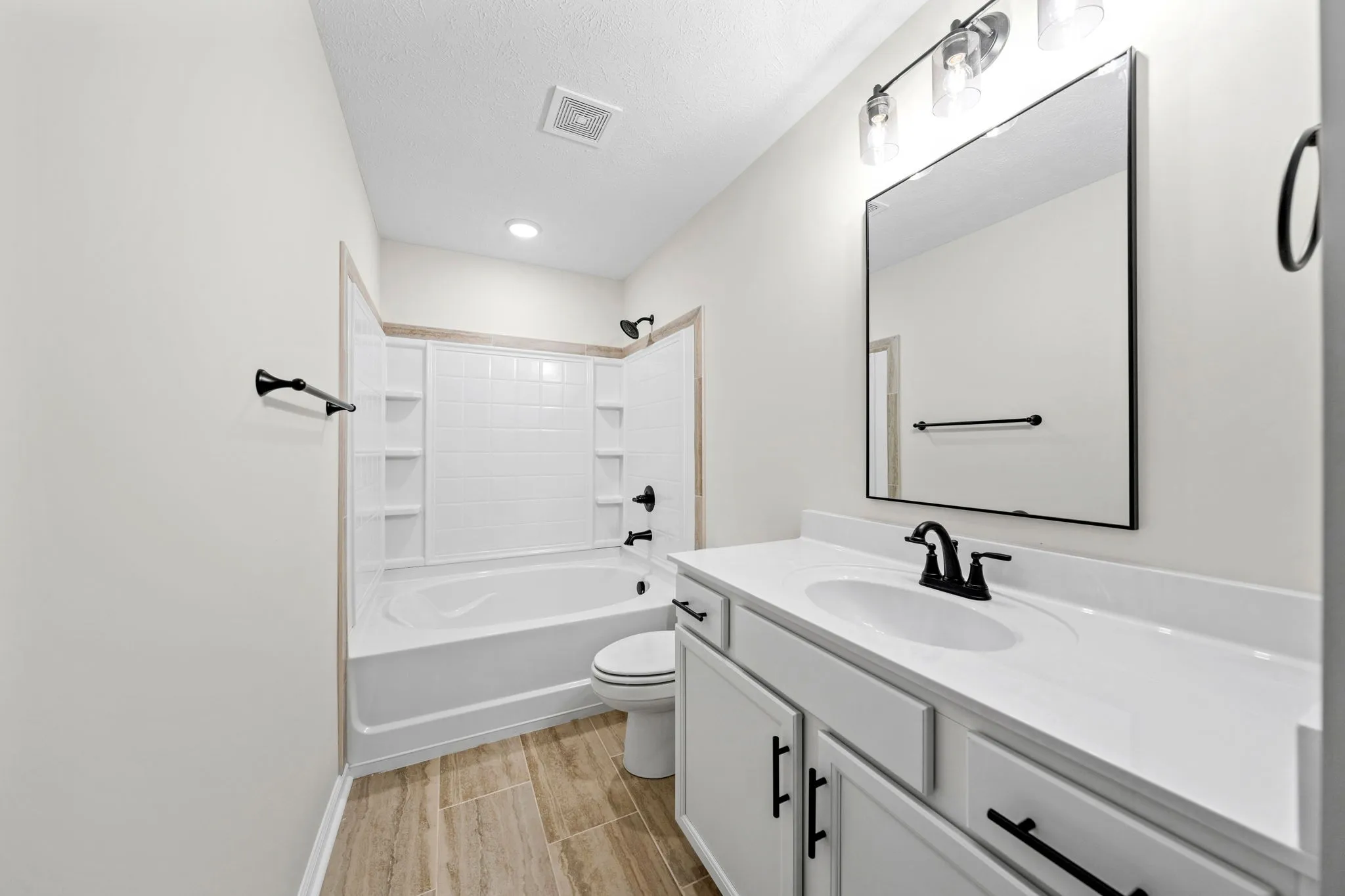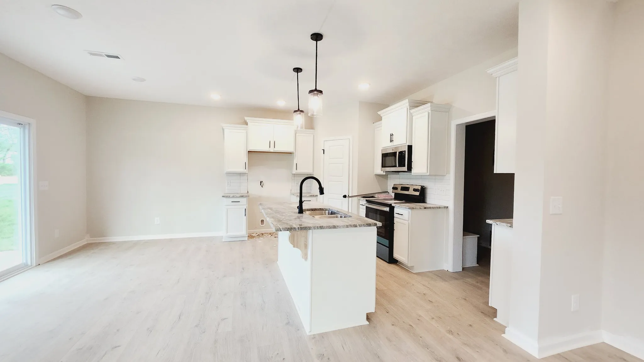 Adorable modern farmhouse style home! As you enter the living room, you’ll be greeted by a shiplap fireplace with an inviting LED firescape, adding warmth and ambiance to your evenings. This thoughtfully designed home features an open-island concept kitchen with granite countertops, a trendy backsplash & sleek stainless steel appliances, and a massive pantry! Upstairs, you’ll find the three bedrooms situated around the upstairs dedicated laundry space, making chores a breeze. Your private primary retreat awaits, complete with a spacious full bathroom featuring a beautifully tiled shower, offering a serene space to rejuvenate after a long day; you’ll also discover a generously sized walk-in closet, providing ample storage and organization for your wardrobe and personal items. Play outside under your covered space! Ideal Sango location, with close proximity to schools, bustling shopping centers, and swift access to the interstate to make your commute to Nashville or Ft Campbell a breeze!