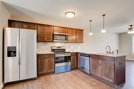 *First Month Free With 13 Month Lease*Luxury Living at An Affordable Price Featuring Hardwood Flooring in Spacious Living Room, Stainless Steel Appliances and Granite in The Eat- In Kitchen. Also Showcases Two Large Bathrooms with Ceiling Fans and Shared Full Bathroom with Large Vanity. The Semi-Private Back Patio Offers Space for Relaxation or Entertaining. With This Beautiful Town Home Convenient to I-24 and Trash and Water Included, There is No Need For You To Look Further. Example Photos. Color and Style of Finishes May Vary.
