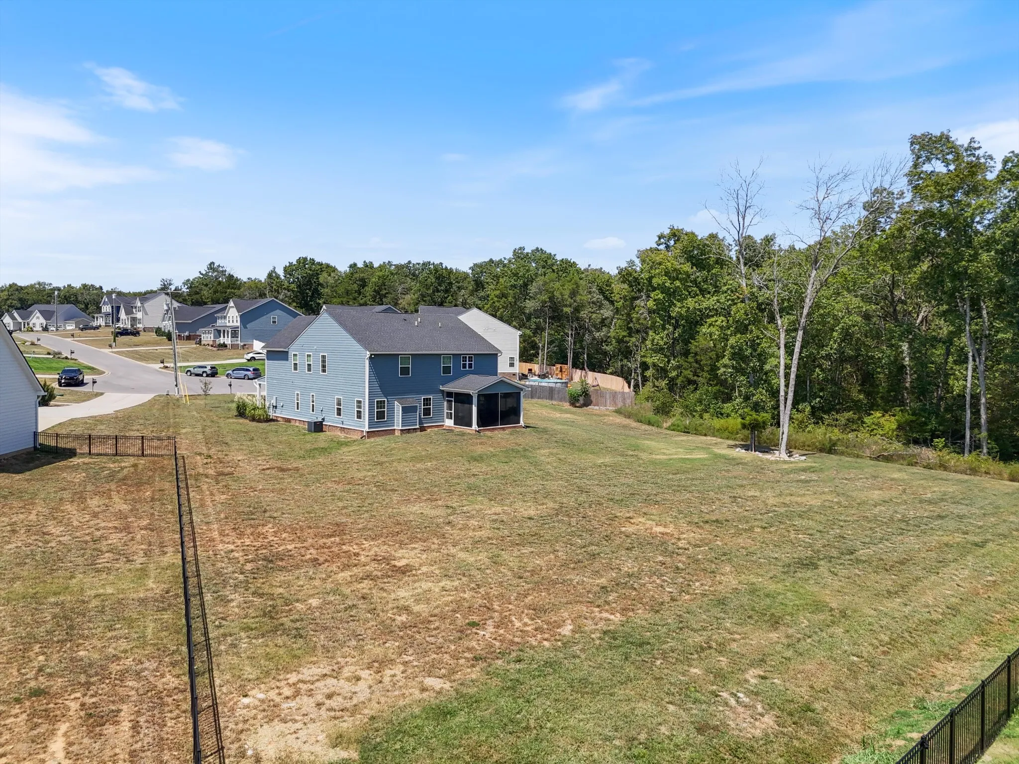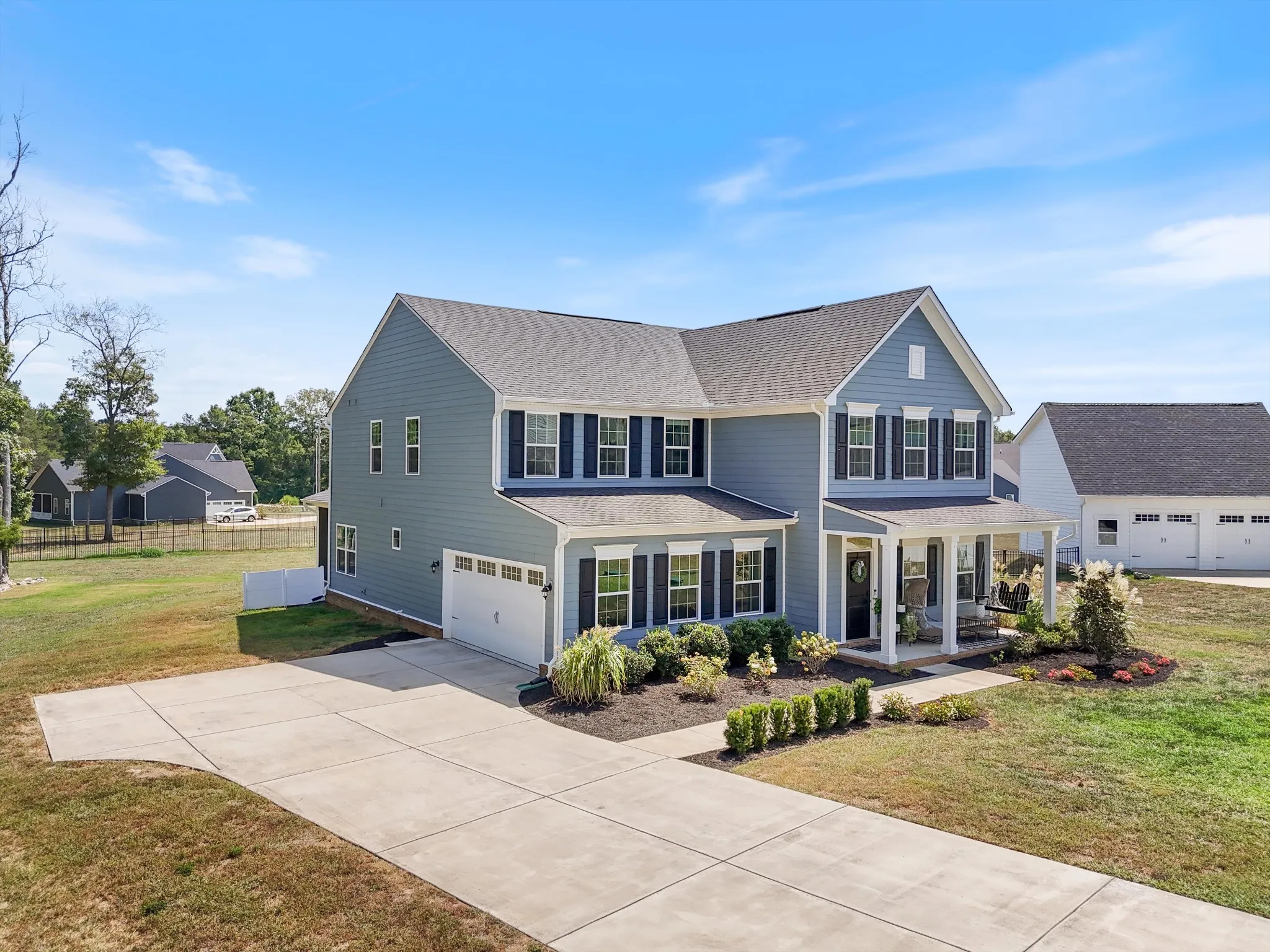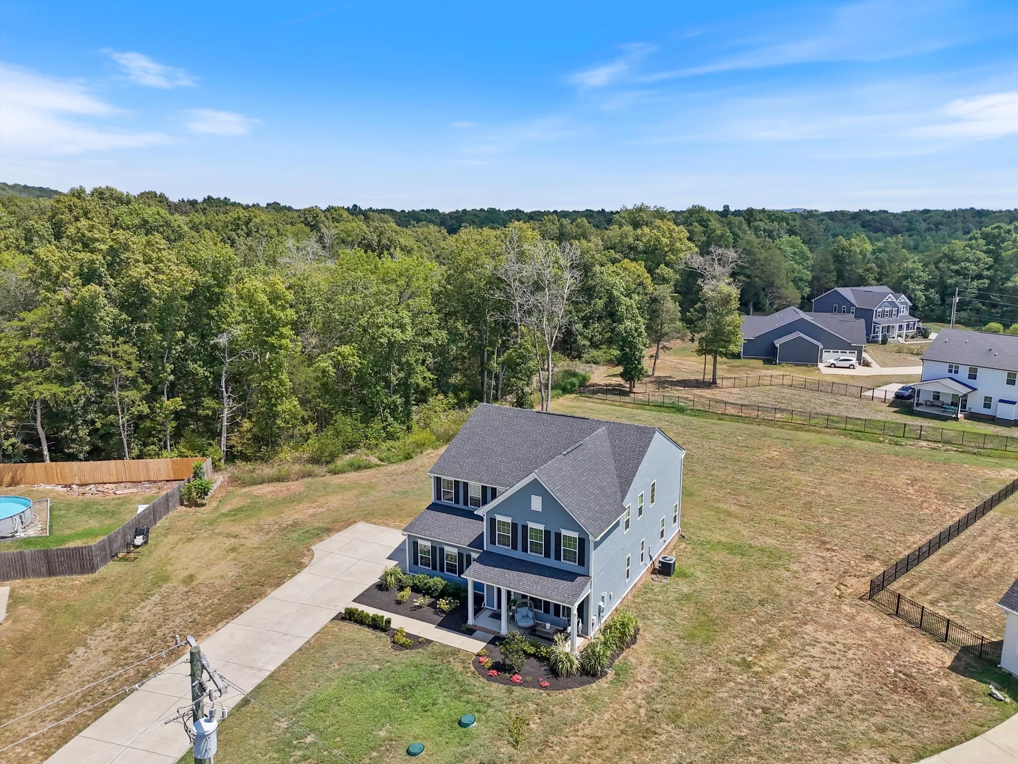 Welcome to your dream home! This stunning home boasts 3,300 sq. ft. of meticulously crafted living space, nestled at the coveted end of a cul-de-sac. Step inside to find enhancements galore: cozy up by the fireplace, revel in the premier lighting, and marvel at the stylish accent walls and wood beams that add a touch of rustic charm. Enjoy your morning coffee on the inviting front porch or unwind on the serene screened-in back porch while enjoying evening breezes. The heart of this home is the gourmet eat-in kitchen featuring a spacious island, gleaming quartz countertops, and an open-concept design that flows effortlessly into the living and dining areas, ideal for both everyday living and entertaining. Natural light floods in through new blinds, highlighting the professionally decorated interiors. Situated on a nearly acre lot adjacent to a peaceful wooded area, outdoor living is a delight with lush landscaping. Don’t miss out on this rare gem!