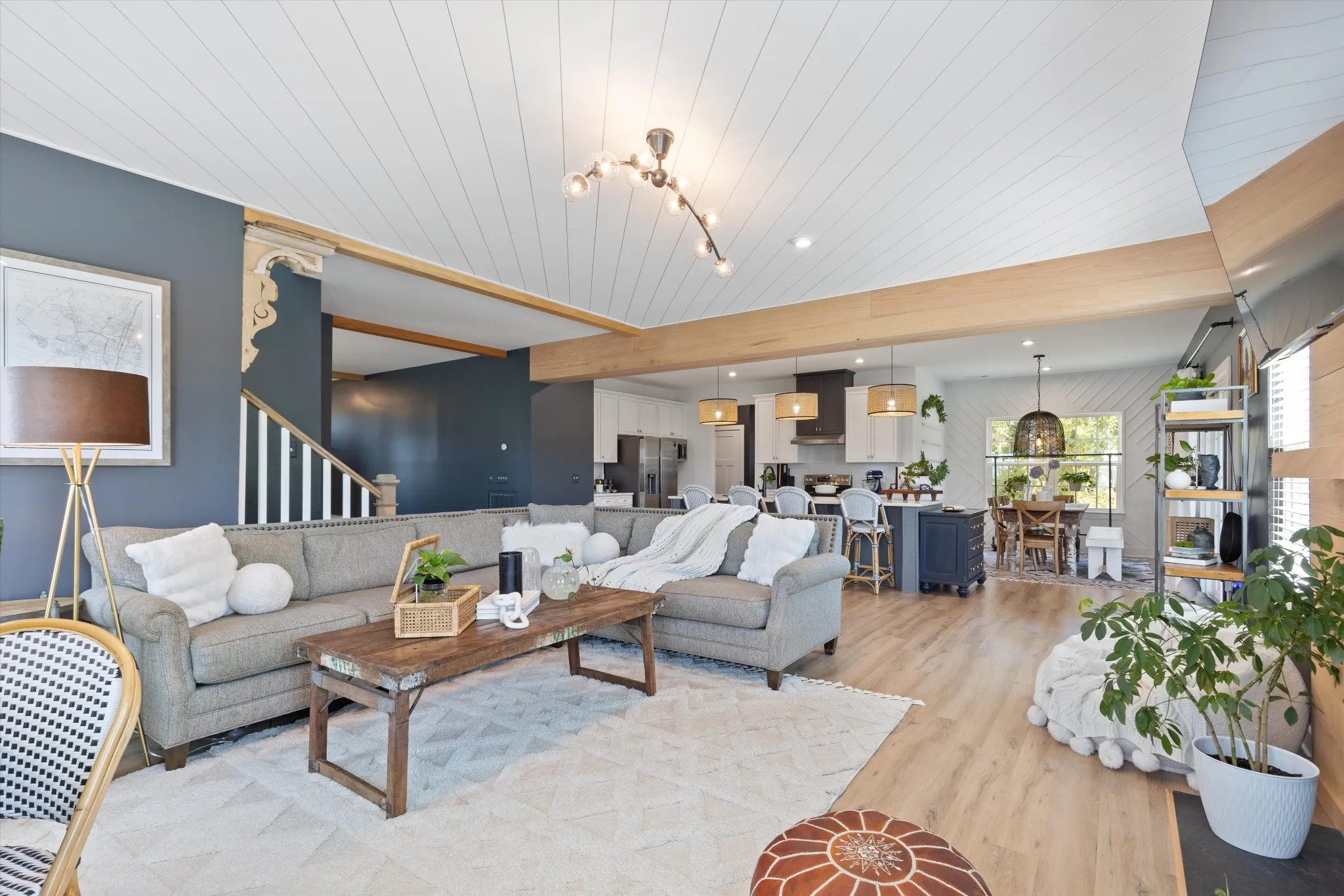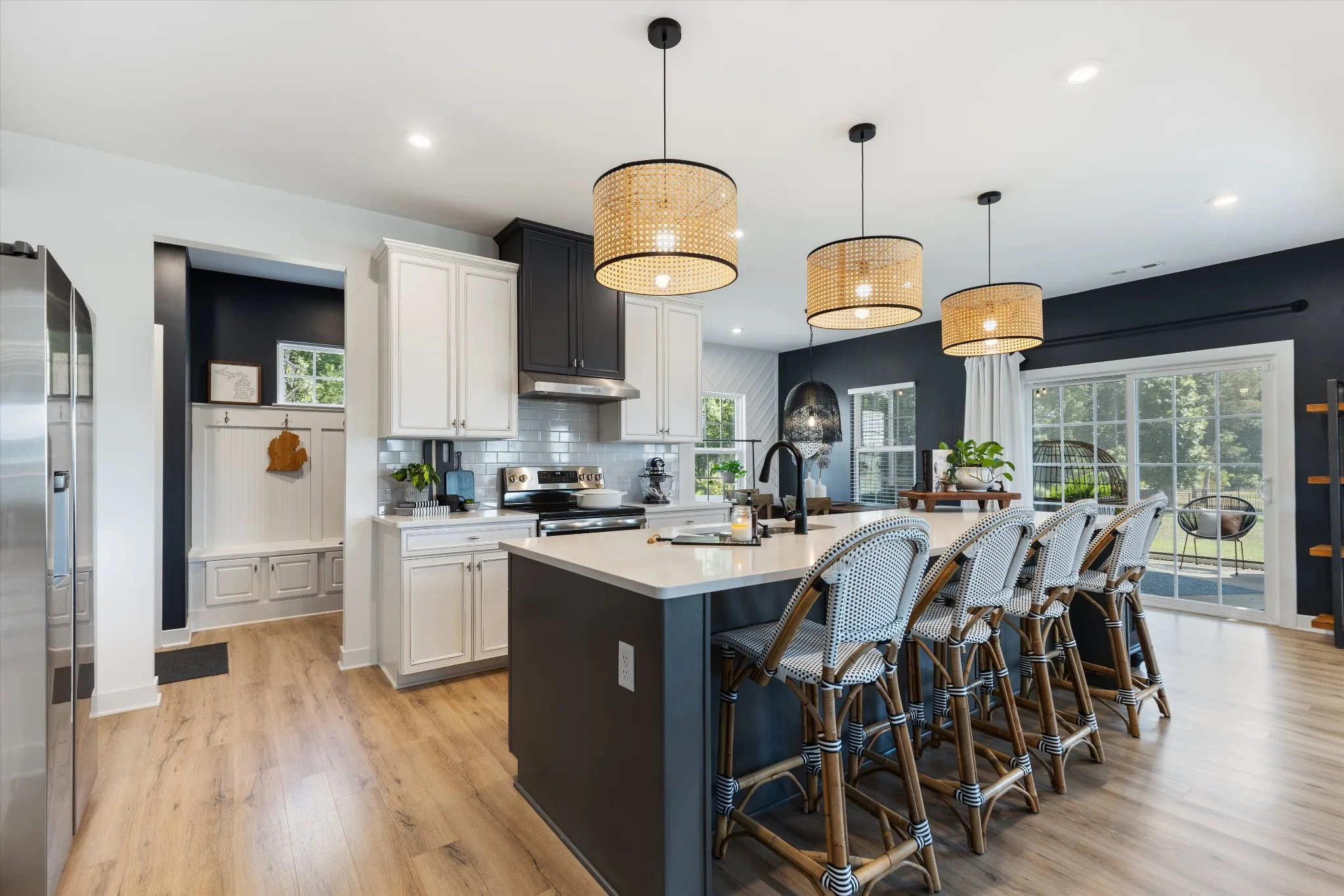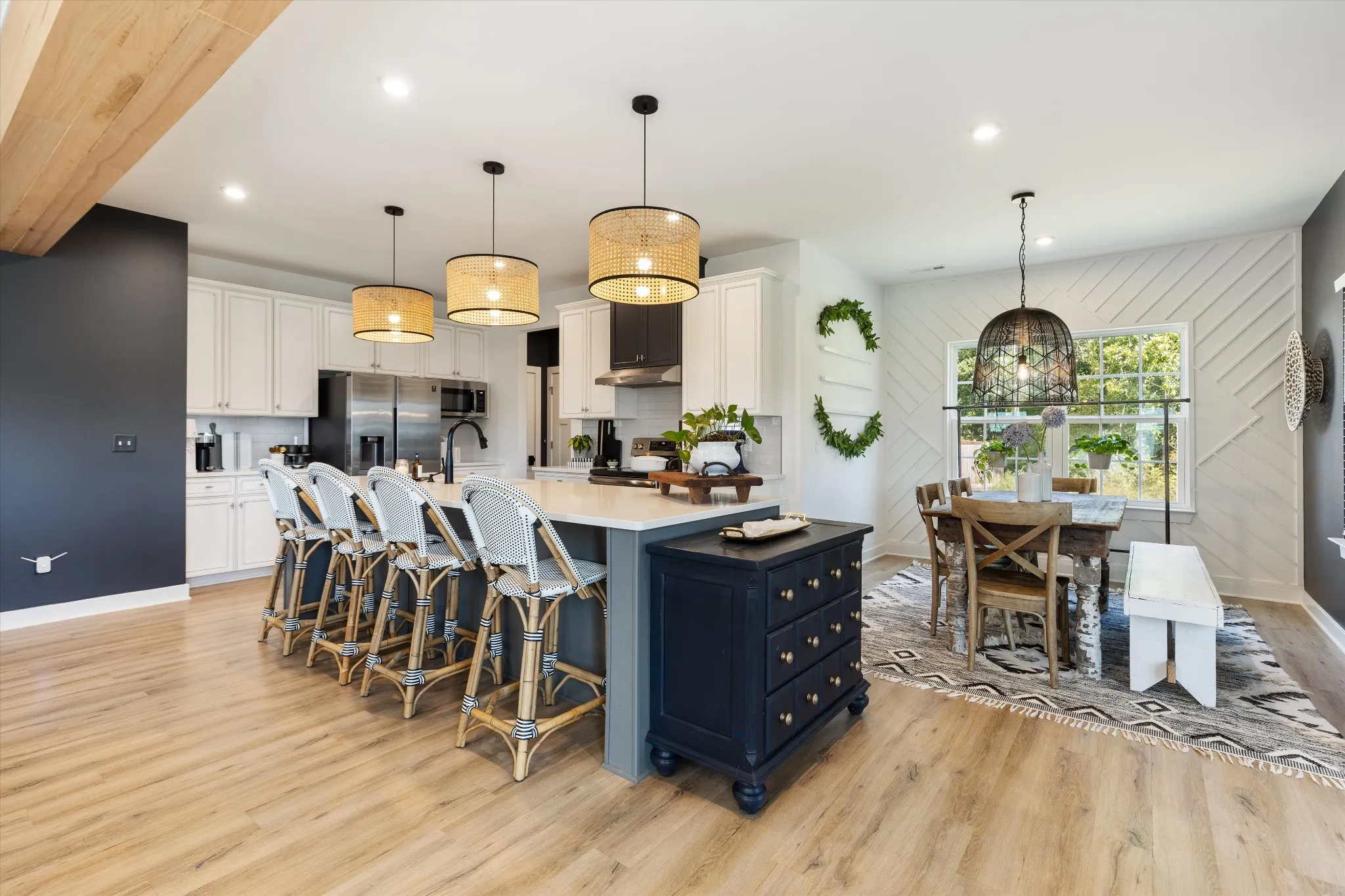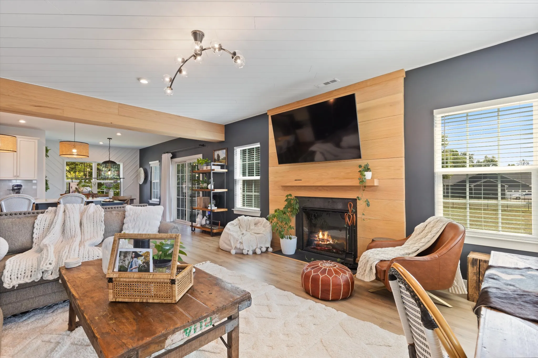 Welcome to your dream home! This stunning home boasts 3,300 sq. ft. of meticulously crafted living space, nestled at the coveted end of a cul-de-sac. Step inside to find enhancements galore: cozy up by the fireplace, revel in the premier lighting, and marvel at the stylish accent walls and wood beams that add a touch of rustic charm. Enjoy your morning coffee on the inviting front porch or unwind on the serene screened-in back porch while enjoying evening breezes. The heart of this home is the gourmet eat-in kitchen featuring a spacious island, gleaming quartz countertops, and an open-concept design that flows effortlessly into the living and dining areas, ideal for both everyday living and entertaining. Natural light floods in through new blinds, highlighting the professionally decorated interiors. Situated on a nearly acre lot adjacent to a peaceful wooded area, outdoor living is a delight with lush landscaping. Don’t miss out on this rare gem!