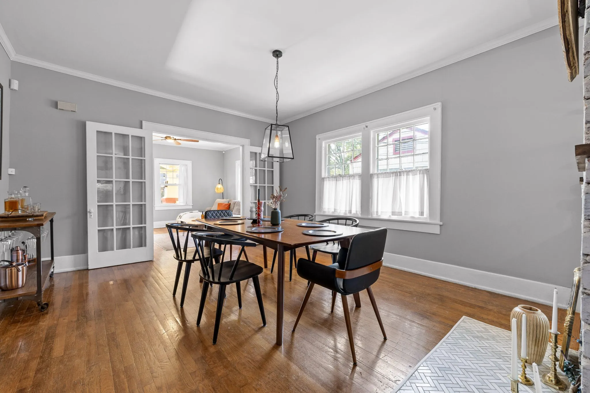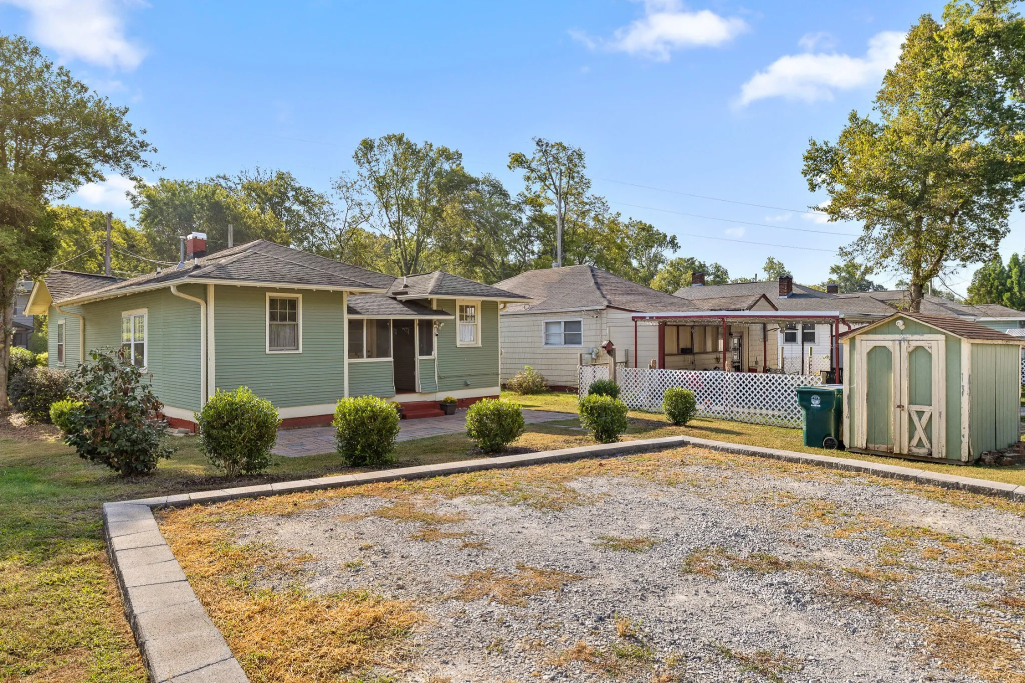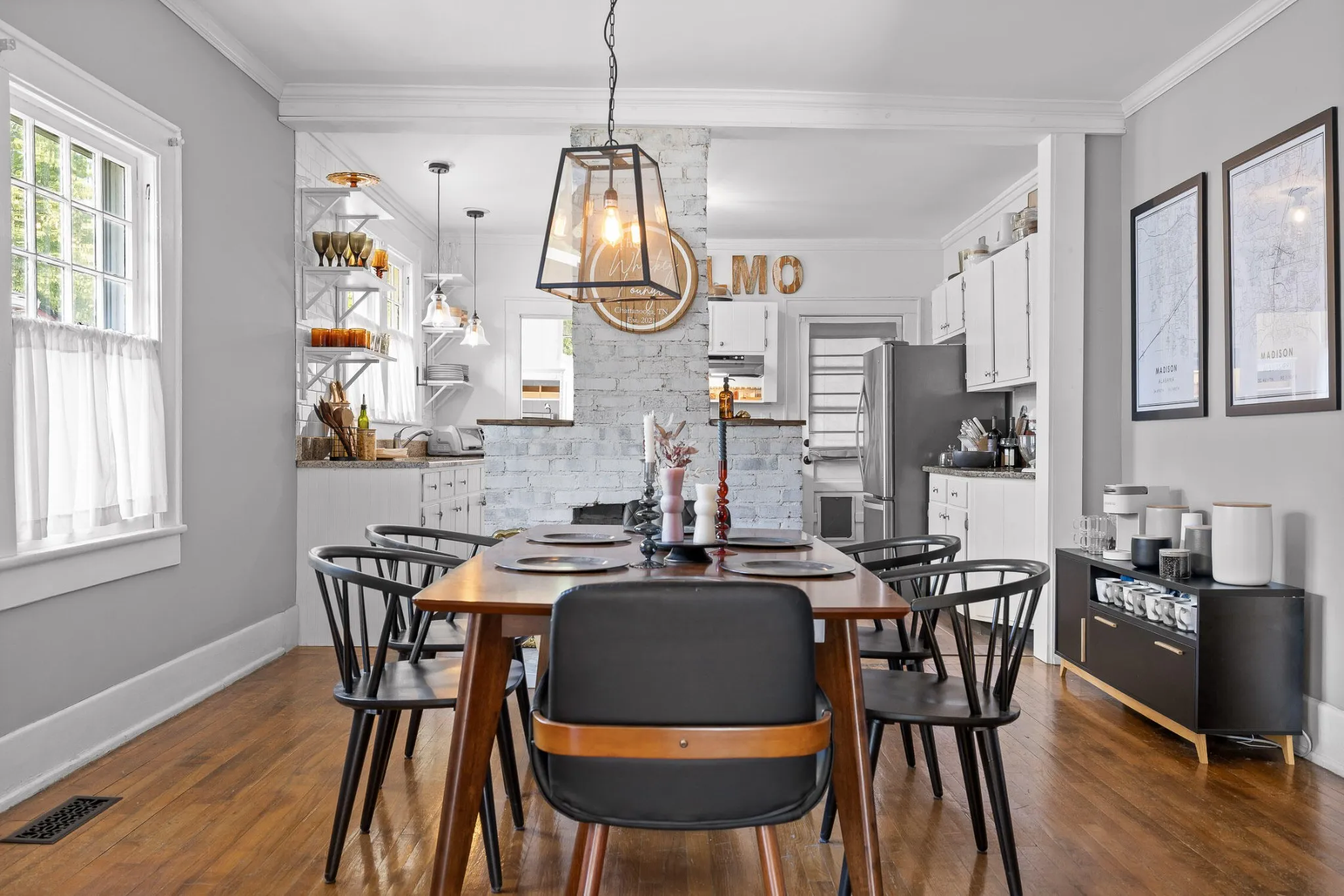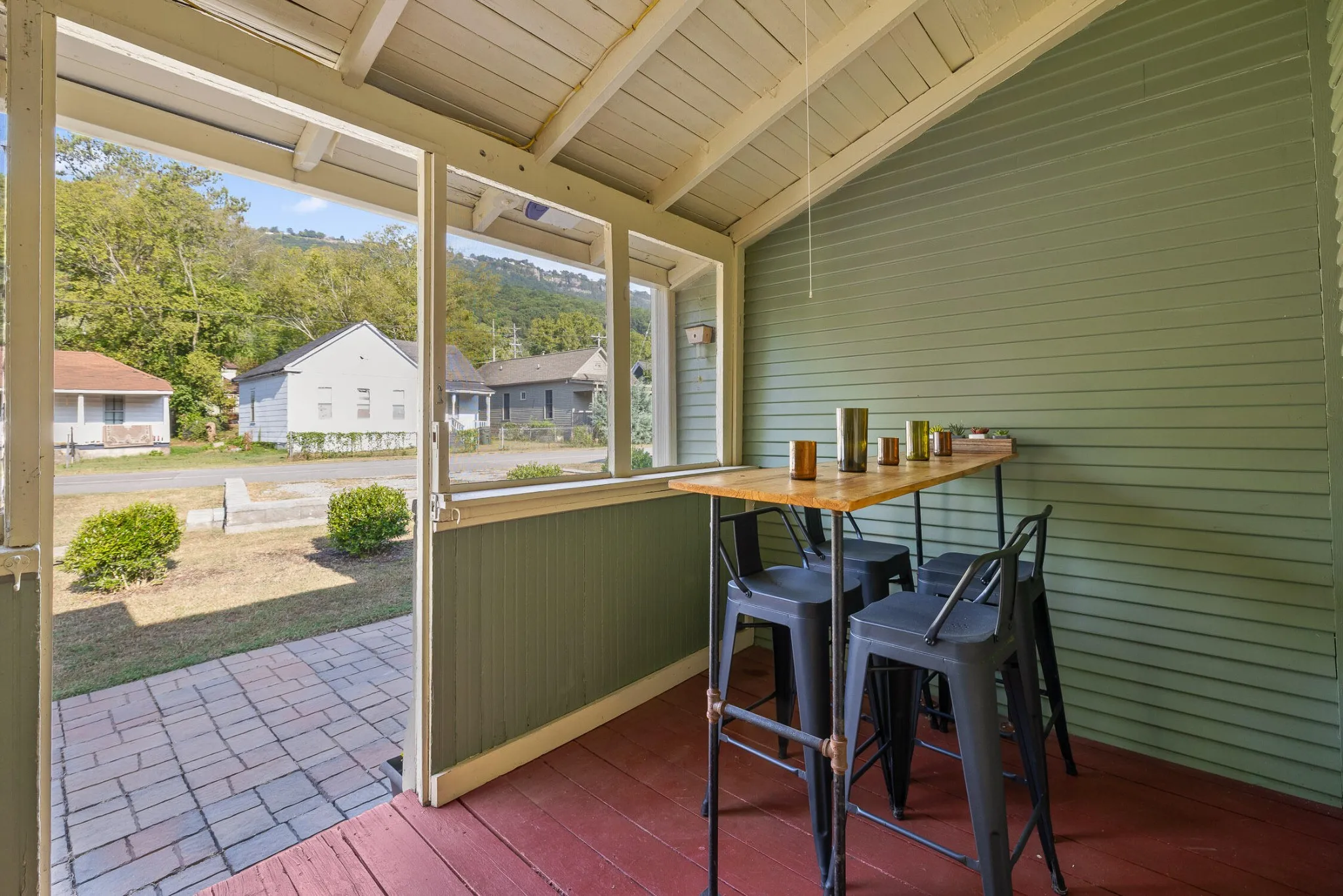 Welcome to this beautiful Craftsman bungalow nestled in the highly desirable St. Elmo neighborhood. Built in 1930, this historic home blends timeless charm with modern comforts, offering the perfect setting for your next chapter. A large covered front porch provides the perfect spot to enjoy your morning coffee or unwind in the evening. Step inside to discover the warmth of original hardwood floors that flow throughout the home, leading you into a cozy living room where an original brick fireplace provides instant charm to the space. French doors lead from the living room into the spacious dining room, where another original brick fireplace adds character and charm. The dining room opens to the kitchen, creating a seamless space for entertaining. The kitchen offers ample cabinetry along with open shelving, granite countertops, and stainless steel appliances. Down the hall, the master bedroom includes a private en suite bathroom and his-and-hers closets, a feature not commonly found in St. Elmo. The bathroom boasts a stylish vanity, tiled flooring, white wainscoting, and a separate tiled shower. An additional bedroom with exposed brick and loads of natural light as well as another full bathroom ensure that your family and guests are well-accommodated. Outside, there’s a cozy covered and screened porch, a large paver patio perfect for entertaining right in your backyard, plus a double-car gravel parking area that simplifies parking—another uncommon feature in St. Elmo. This property is situated in one of Chattanooga’s most sought-after neighborhoods, with the Chattanooga Greenway directly behind it ideal for walkability, running, or biking. Located in the heart of St. Elmo, this home places you within walking distance of the incredible St. Elmo Park, Woodshop- a neighborhood music venue and bar, local shops, restaurants, and outdoor adventures on Lookout Mountain. Don’t miss your chance to own a piece of Chattanooga’s history in one of its most beloved neighborhoods!