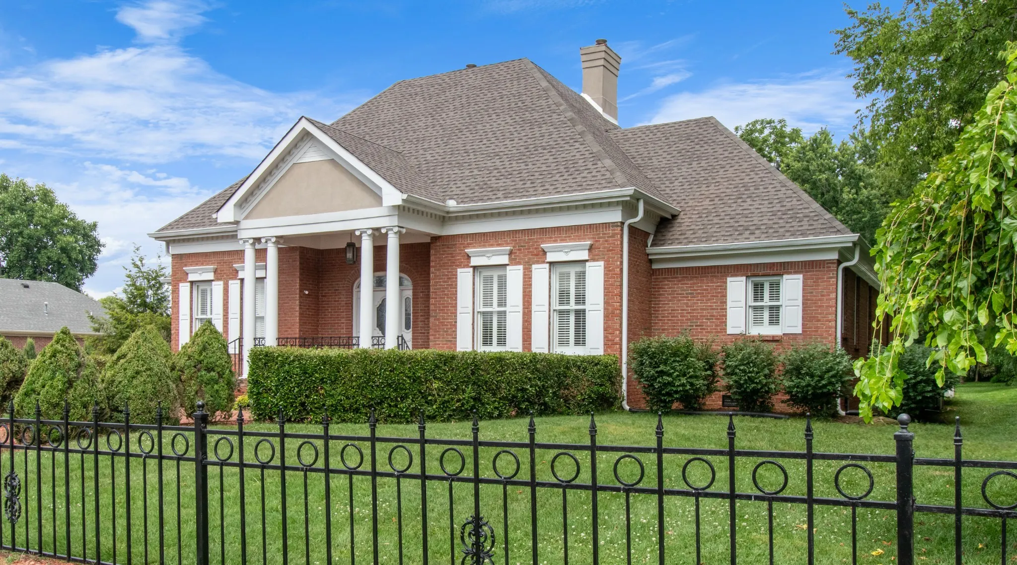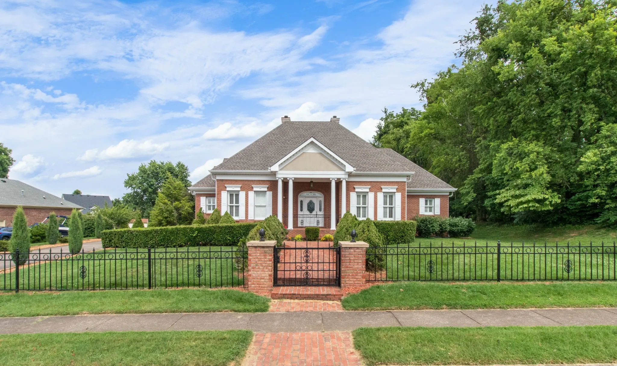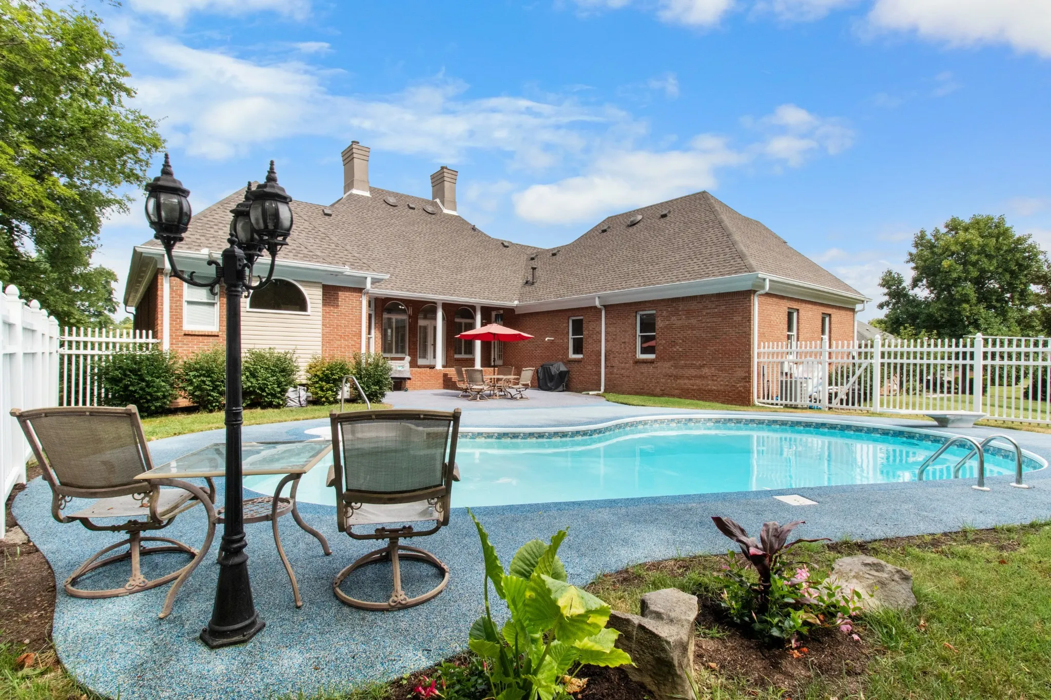 NEW ROOF! FRESHLY PAINTED – NEW Carpet in master – New QUARTZ Countertops . Nestled on 3/4 of an acre with privacy and luxurious outdoor living but sits in the heart of Clarksville. This beautiful all brick home has 3 bedrooms and 2 full/ 2 half baths on the main level and full bath upstairs off of the Bonus/Flex room that could easily be used as a 4th bedroom. With custom moldings and gorgeous archways and large windows with Plantation Shutters, the interior of this home is timeless and stunning. The outdoor living can’t be beat with a covered porch overlooking the in ground salt water pool with a custom Rubaroc coating and large back yard. Additional features are: 3 car garage, tankless water heater & 20Kw natural gas generator! **Upgraded bathroom countertops with FPO – contact listing agent for details