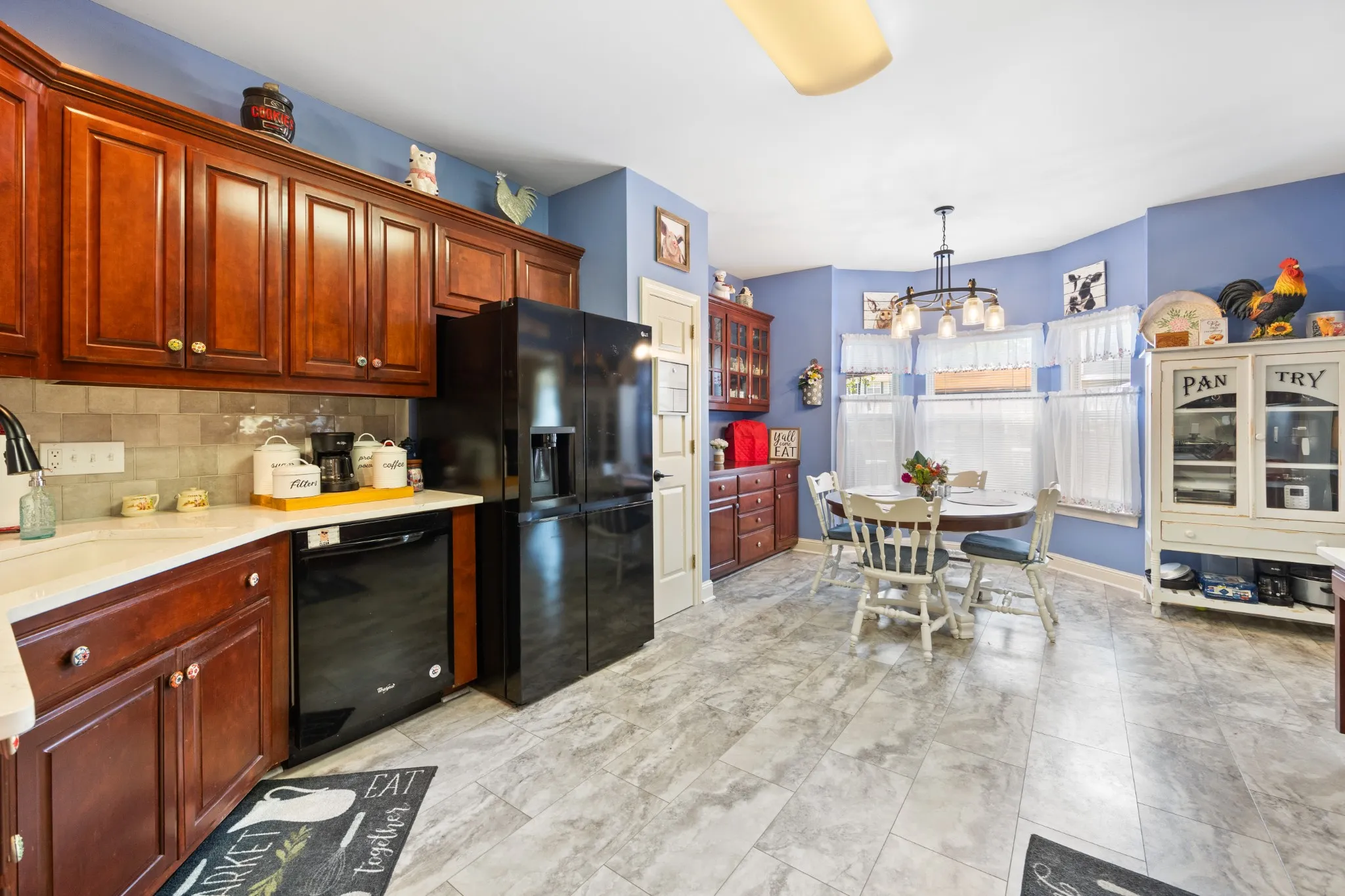 +"PublicRemarks": "All-brick, one-level living in Mt Juliet on corner lot. New kitchen appliances.Sink and quartz counters (Dec 2023). Abundance of cabinets and counter space! Fresh paint in bedrooms & primary bathroom. Get ready for relax-time in the sunroom. Spacious bonus room upstairs. Zoned bedrooms. New LVP flooring 2023. Updated lighting. Guest bathroom has new vanity, flooring, toilet & lighting. Gas fireplace. Well-insulated home. Fenced yard."