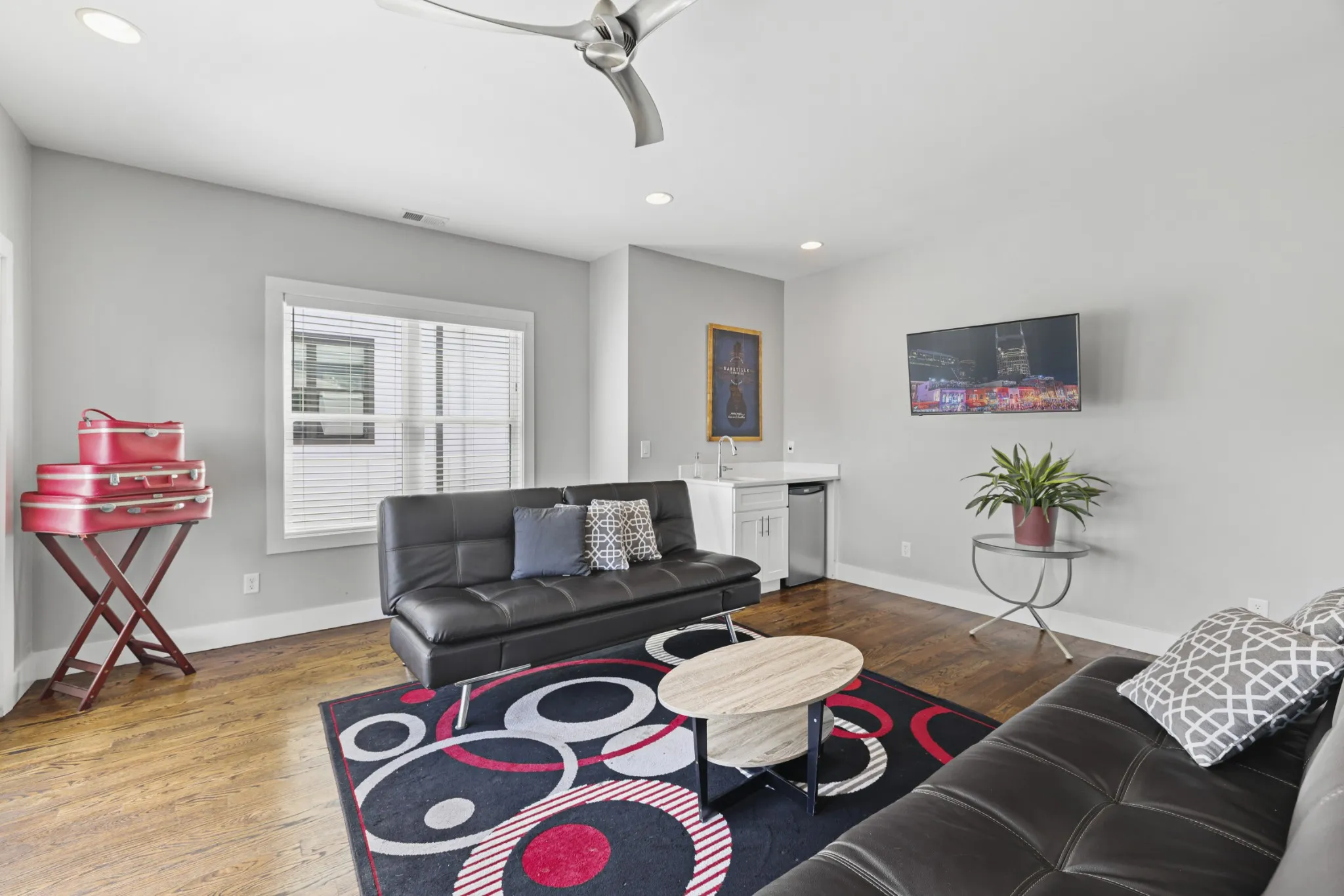 Take a look at this 3-Story NOO-STR property! Private rooftop patio is a standout with a gas grill, gas fireplace, large TV, and comfy furniture. Living room & gourmet kitchen on main level, lounge area w/ wet bar & bar fridge on the top floor. Two washer/dryer pairs, an attached 2-car garage, plus off-street parking add convenience for guests. Vaulted ceilings and a wall of windows create a bright, inviting space. Just 3 miles to Downtown’s neon-lit, honky tonk row! Walking distance to Float Nashville, Crossfit PRVN, Just Love Coffee, Hai’s Sushi & Pho. <1 mile to live shows & MLS games at Geodis Park. This turn-key investment property is being sold furnished. 4 bedrooms, Active STR, showings are scheduled around bookings.