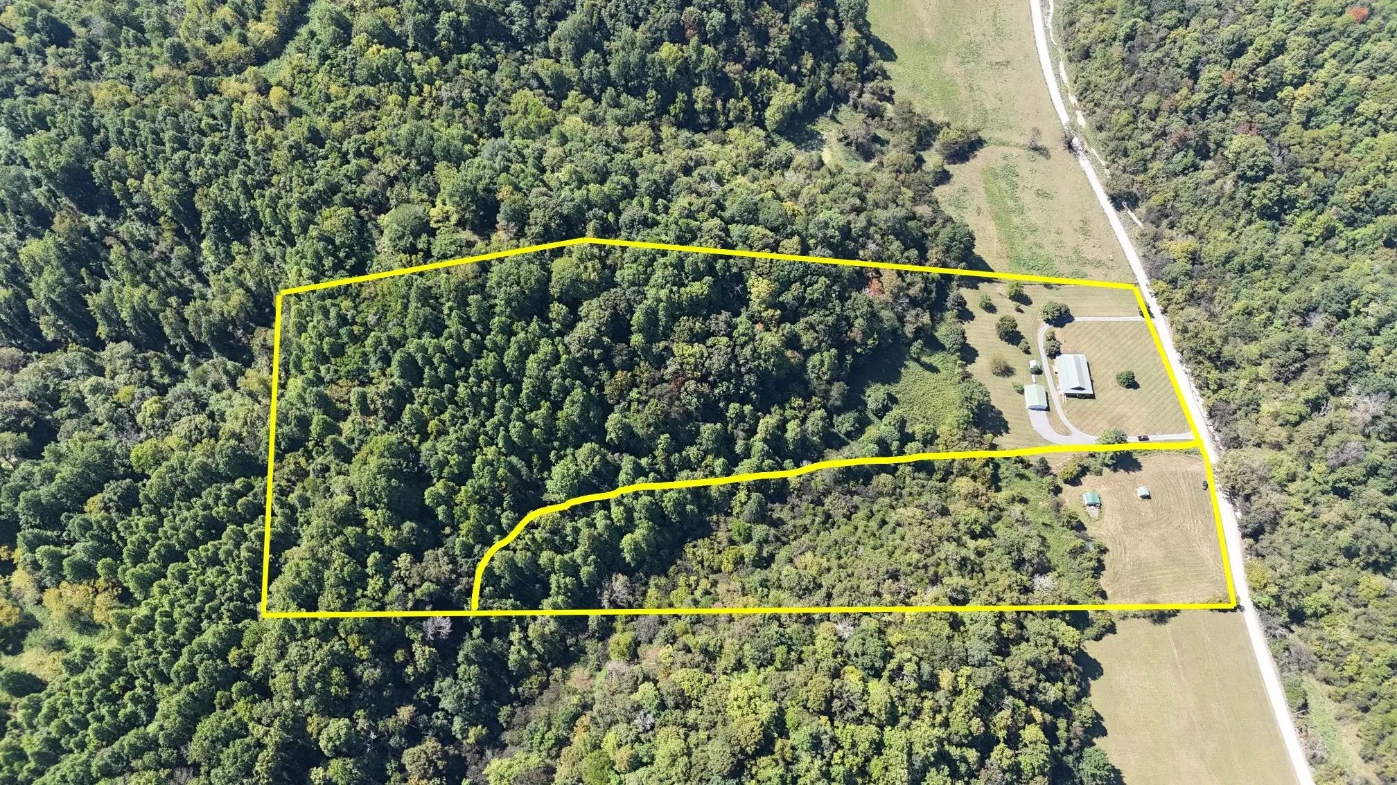 Taxes to be determined. 5.25 acre tract with recent survey completed 8/19/2025. Barns and buildings convey.