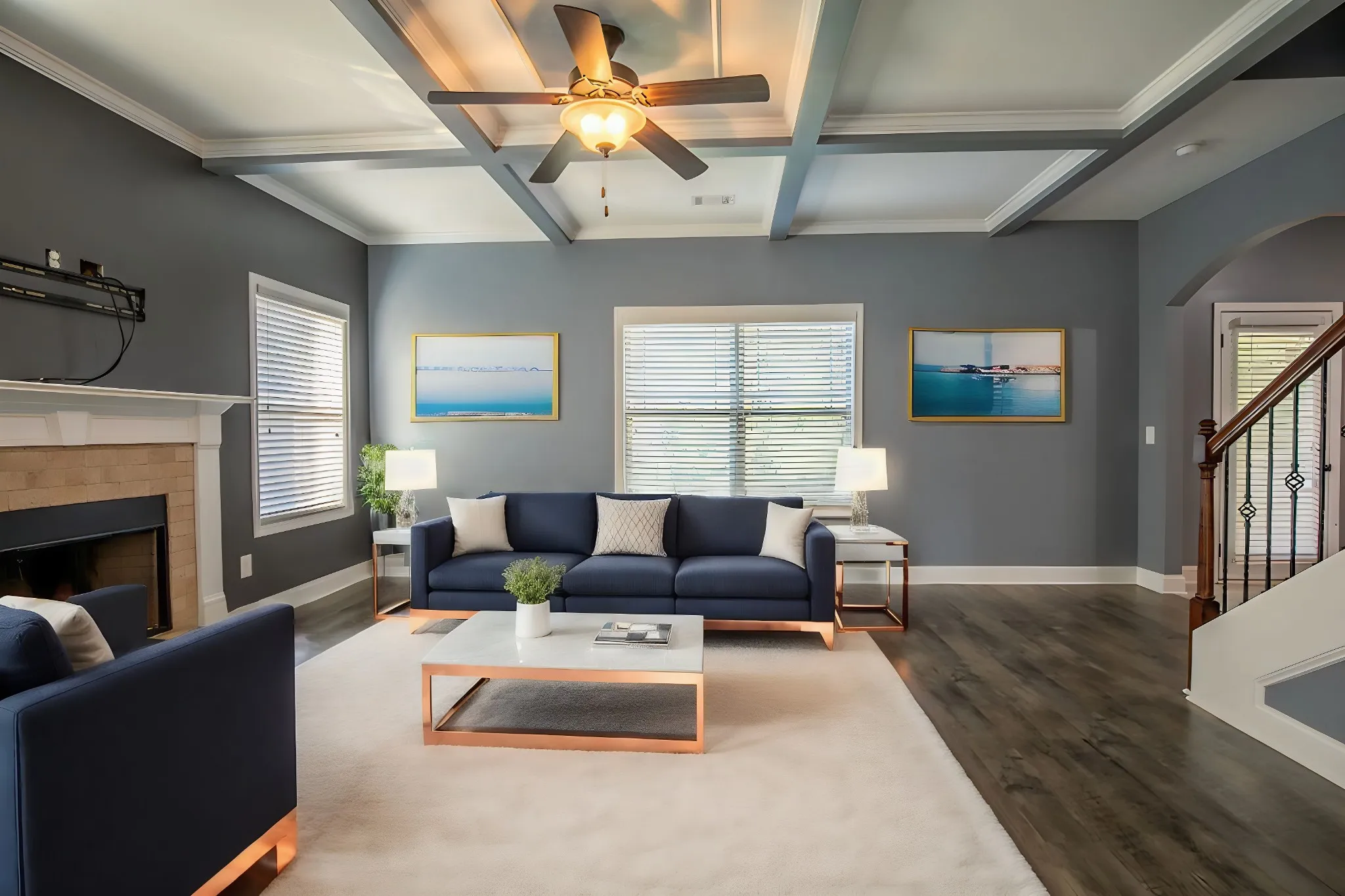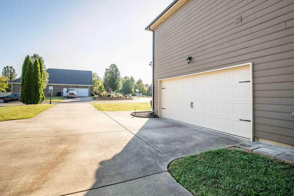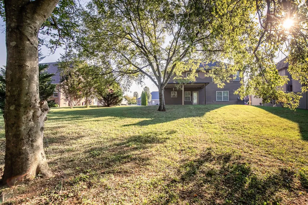 Easy access to I24, grocery stores, and restaurants. Upgraded trim package with wainscotting and detailed tray ceilings. Coffered ceiling in the living room with fireplace. Double Ovens are perfect for holiday gatherings coming up! Custom shelving in the pantry and the utility closet. All appliances stay. Laundry Room conveniently located upstairs with bedrooms and includes a Utility Sink. Custom shelving in the Primary Closet. The downstairs flooring and upstairs carpet were installed in 2021-2022, along with new paint throughout at that same time. Professionally Cleaned and ready to move in! Private backyard. Storage Shelving in the Garage stays. Covered back patios are great for entertaining.