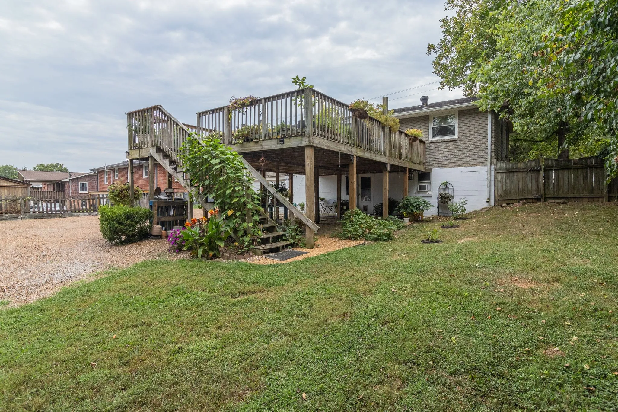 Hermitage: 4 Bedrooms, 2 bathrooms. Two levels: Upstairs has 3 bedrooms a large kitchen with a bar top that separates the dining room and kitchen. The dining room garden door opens to an expansive deck, perfect for grilling and hosting parties. A good-sized living room, great for entertaining. The upstairs full bath has recently been remodeled. All flooring Carpet, Vinyl and laminate flooring throughout is newer. Hardwood flooring exists under the carpet. The private downstairs has 1 bedroom, its own Living room, (for a movie room or a gaming room) an office, and a full bath. There is a basement entrance off the driveway. The large yard is made for the gardener. Storage shed in back yard. Excellent shade under the deck for shade plants and getting out of the summer heat. Nice Hermitage location near shopping, restaurants, Old Hickory Blvd and the I 40. 15 minutes from downtown and the Airport.