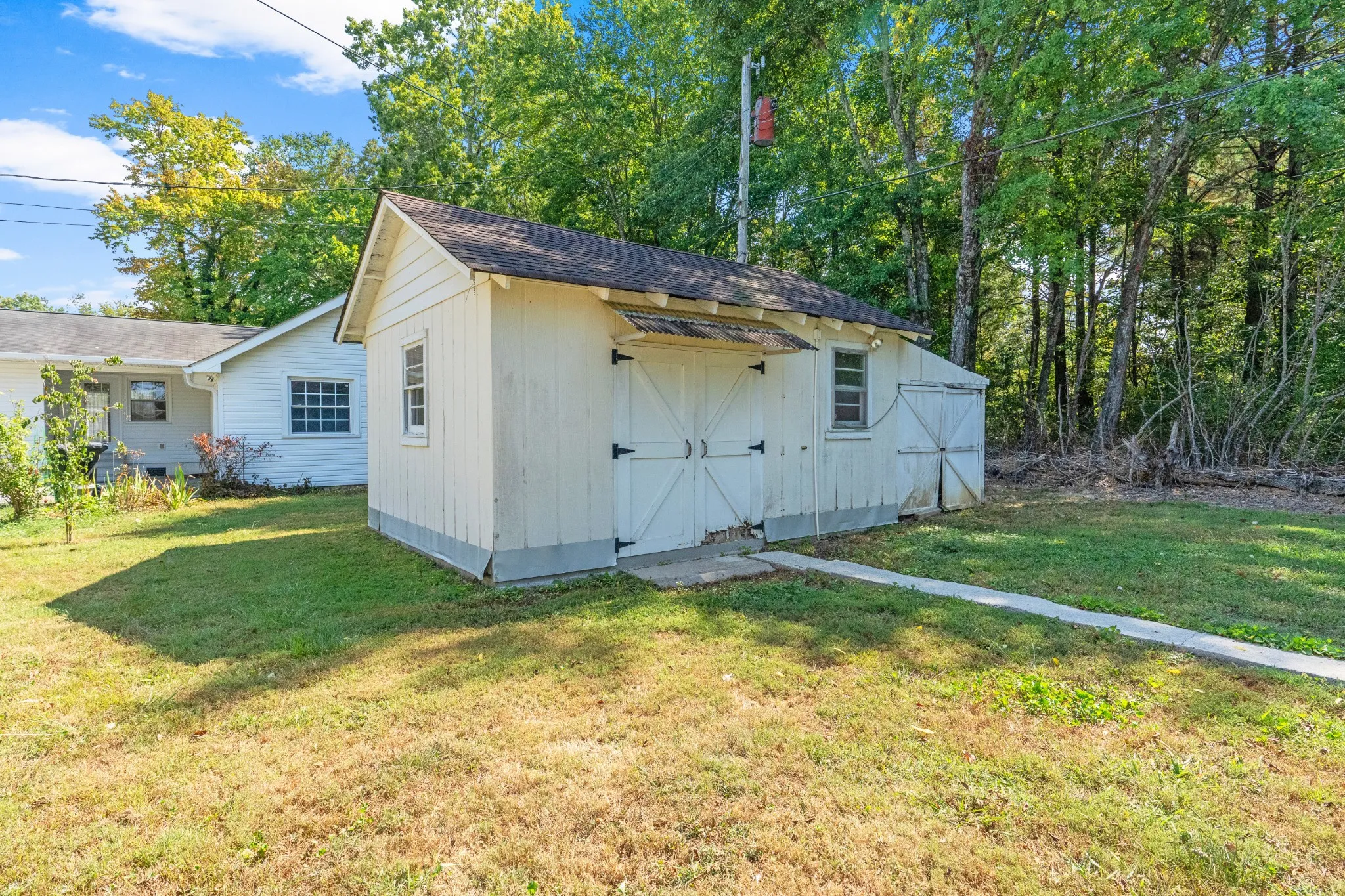 Welcome to this 3 bedroom, 2 bath cottage style home, As you enter, you are greeted by original hardwood floors that flow throughout the living room and bedrooms adding warmth and character to the space. The kitchen offers tile flooring and comes fully equipped with all appliances and is ready for all your cooking needs. Adjacent to the kitchen is a cozy den with a gas log brick fireplace and it has been freshly updated with new sheetrock and luxury vinyl plank flooring. Both bathrooms have been updated making your daily routine easy and comfortable. The HVAC system is approximately 3 years old and ensures year round comfort while the new hot water heater provides peace of mind. Outside, you’ll find 2 outbuildings which have many uses. Don’t miss your chance to make this home your own!***Seller Requests All Offers Due by Saturday, Sept 7 at 5:30pm*** Seller will respond by 6:30pm. Seller reserves the right to accept an offer at any time!!