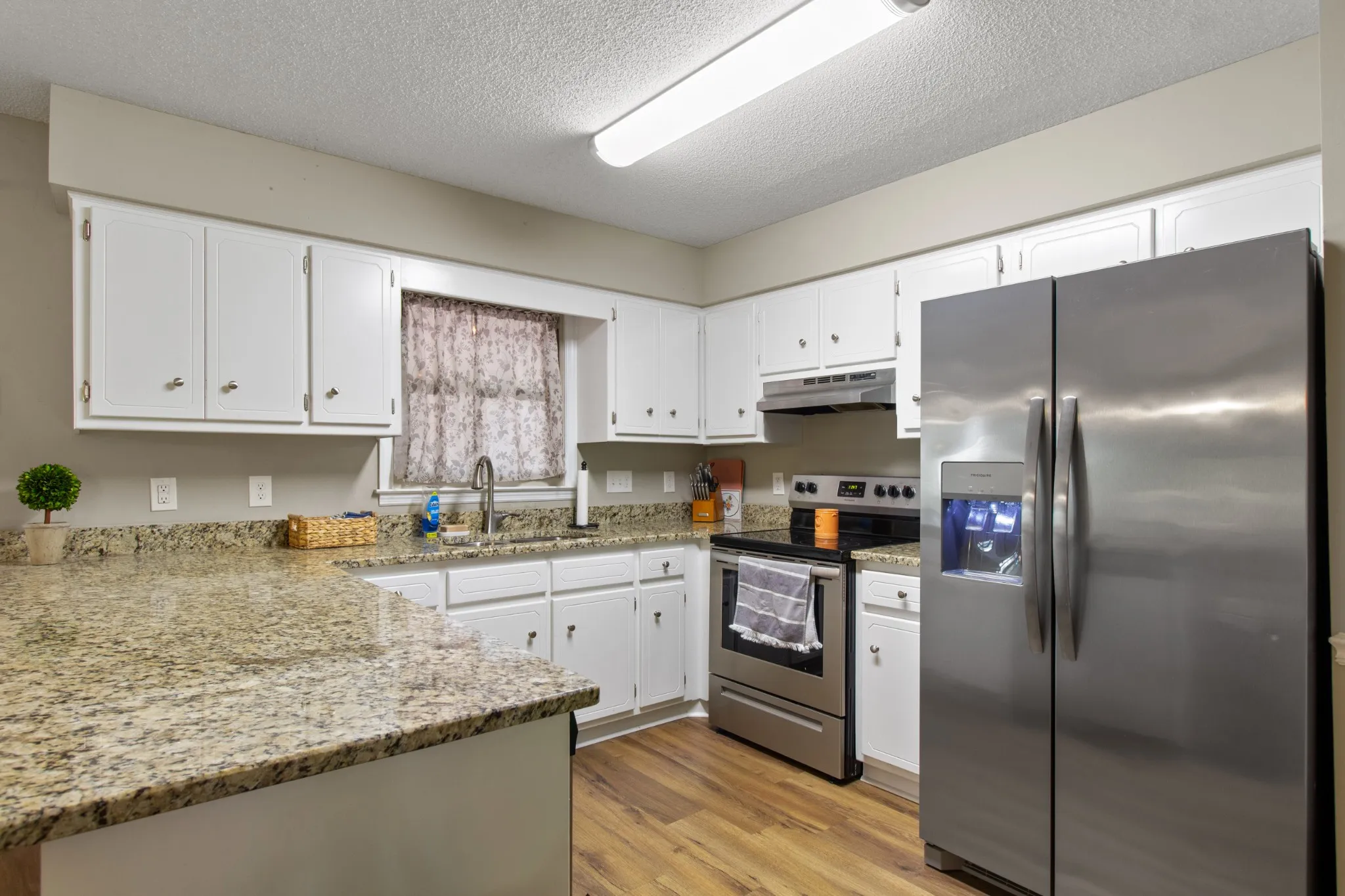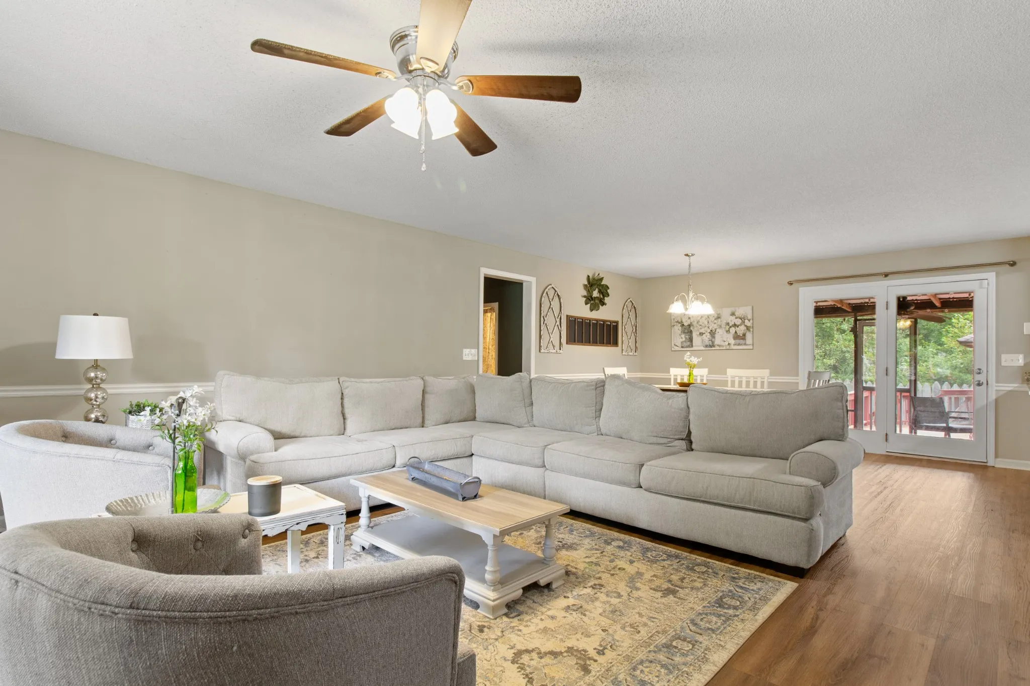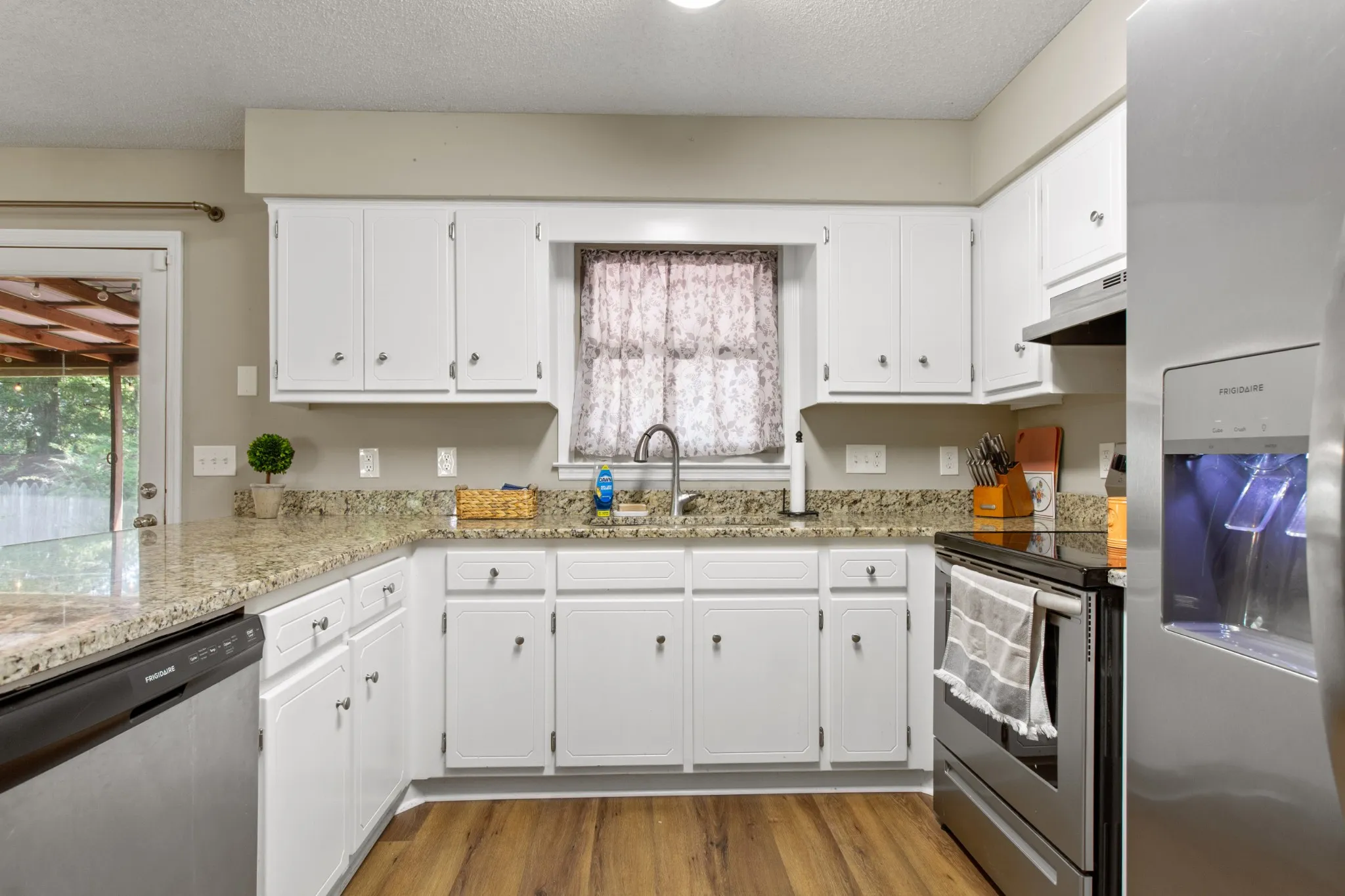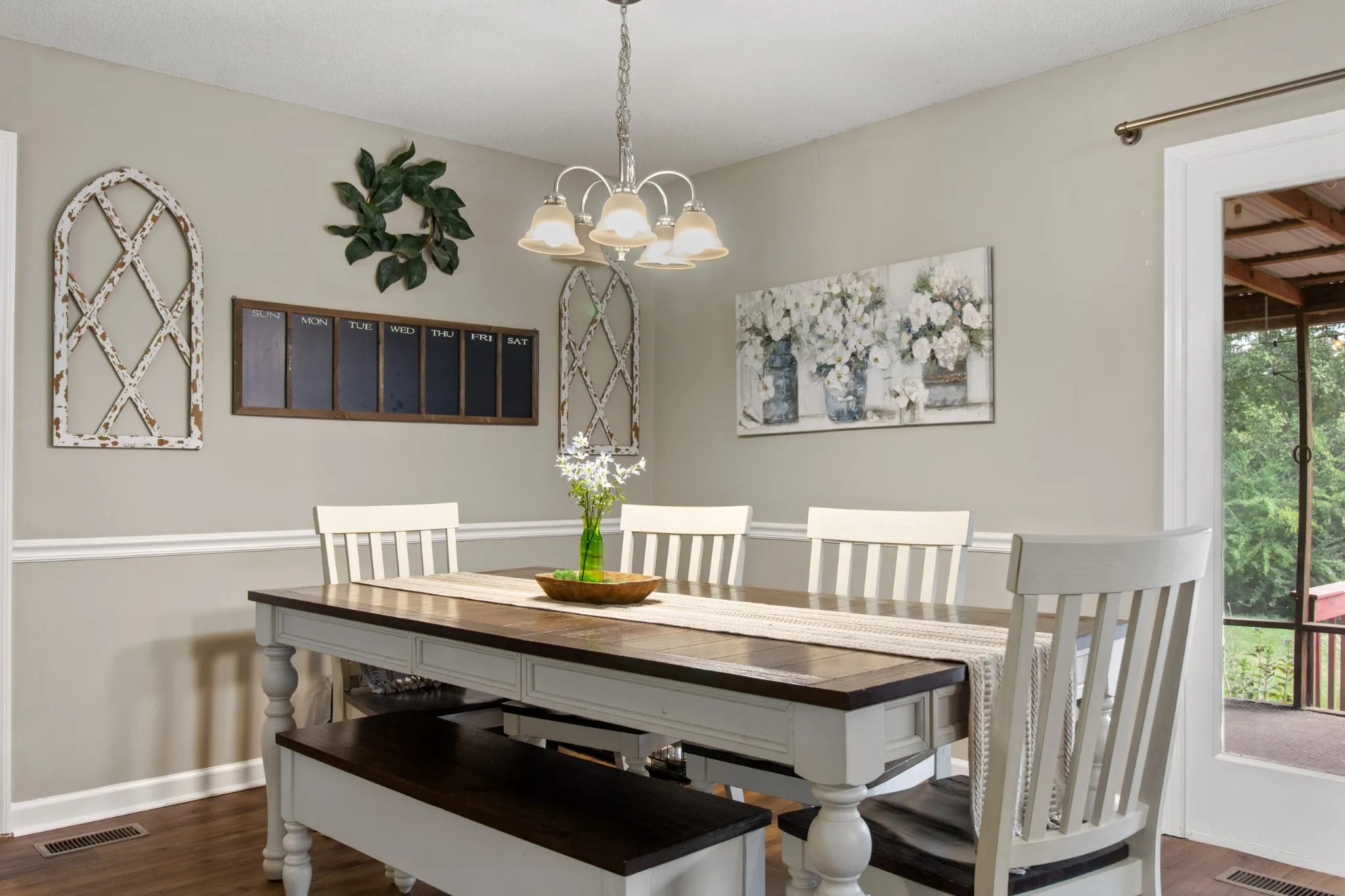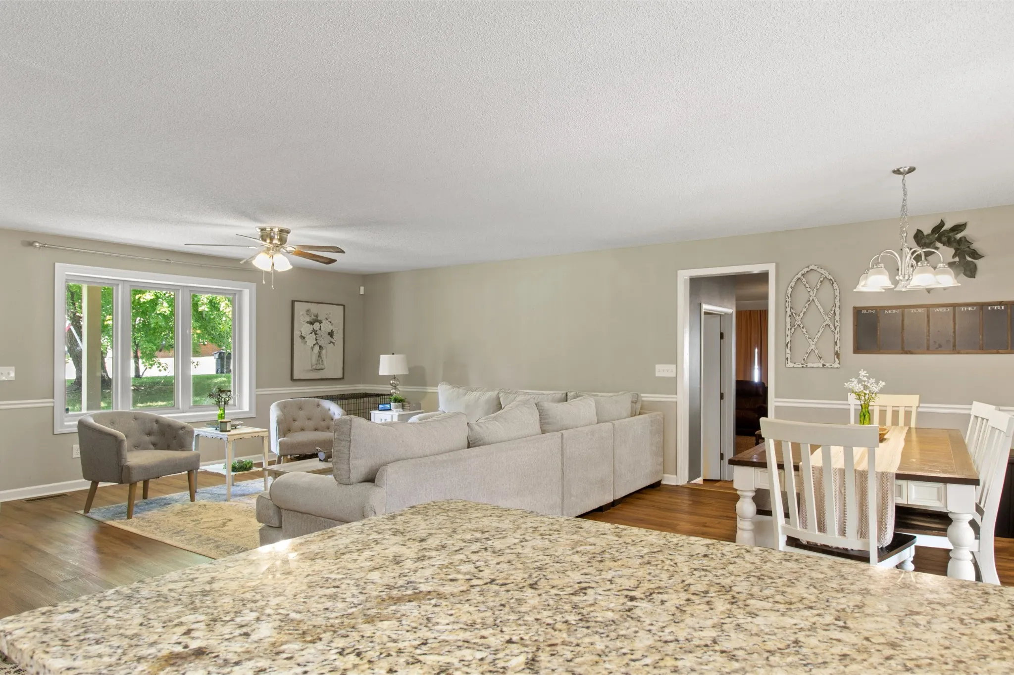 Welcome home! This stunning 3-bedroom, 2-bath home has an open floor plan that includes a spacious living area, dining room, and a newly remodeled kitchen featuring granite countertops and stainless steel appliances. A large Rec room, complete with a cozy gas log fireplace, provides extra living space. The remodeled guest bathroom boasts a separate soaking tub and tile shower. Inside, you’ll find a large pantry, ample storage, chair rails, and a charming accent wall in the guest bedroom. Step outside to enjoy the screened deck, leading to a deck and gazebo—perfect for relaxation. The home also features LVP flooring throughout and a massive 28×36 (approx.) heated detached garage, ideal as a workout space, man cave, or she-shed. With a brand-new HVAC system, this home offers comfort and convenience at every turn. Within minutes to Tims Ford Lake. Don’t miss out on this gem ready to move-in to and filled with extras! See links for Virtual Tour.