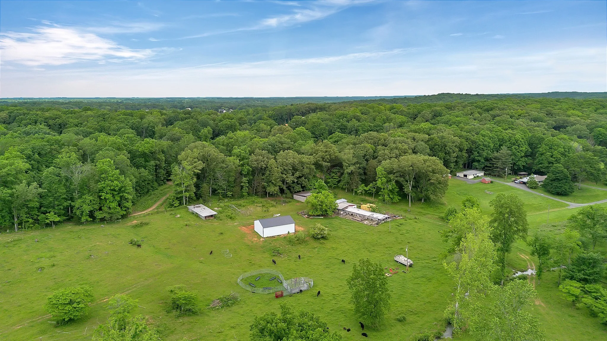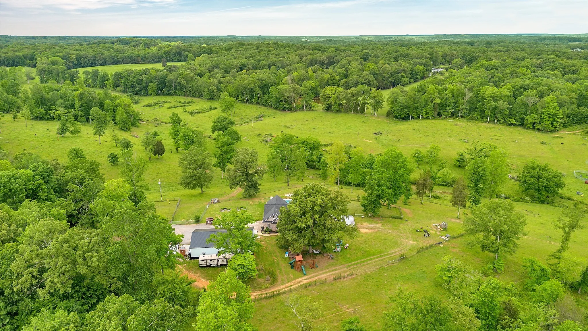 Nestled in the quaint town of Burns, TN, this picturesque home sprawls across 74 acres of lush, rolling landscape. A tranquil all-season creek meanders through the property, adding a serene touch to the natural beauty. The centerpiece of the estate is a luxurious 4,000 square feet residence boasting a full basement. With 5 bedrooms and 4 bathrooms, there’s ample space for family and guests. Step outside to find a pristine saltwater pool, perfect for relaxing on sunny days. Whether you’re unwinding indoors by the cozy fireplace or exploring the vast grounds, this property offers a harmonious blend of comfort and tranquility. The property has a 60×40 detached garage shop, an equipment barn, and a hay barn that sits within the fully fenced perimeter of the property. Both the roof and the HVACs were replaced in 2023!