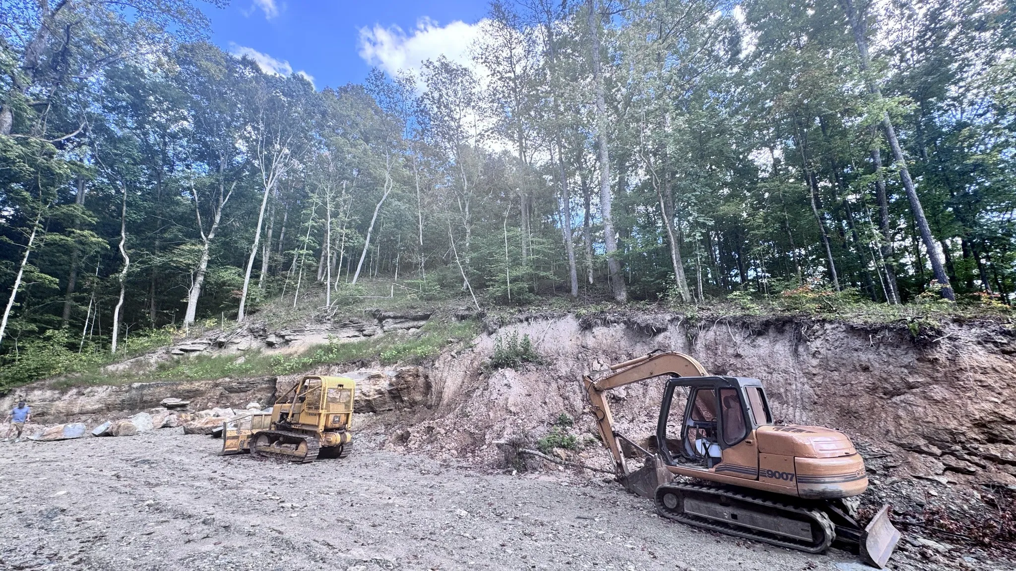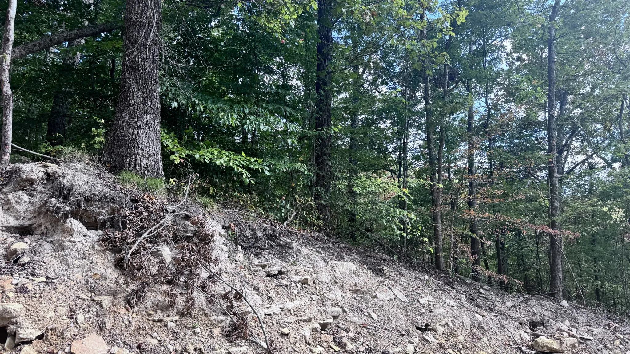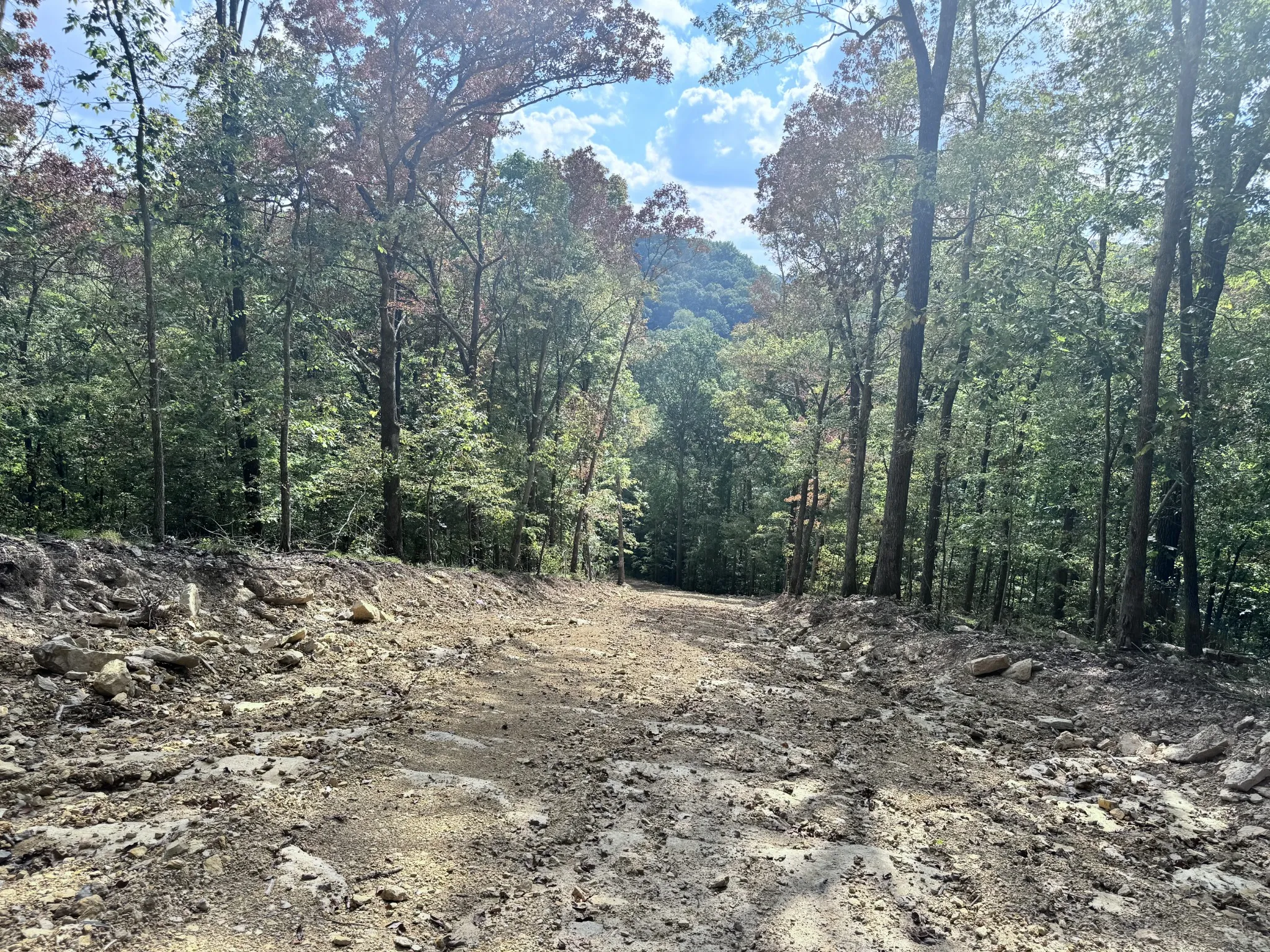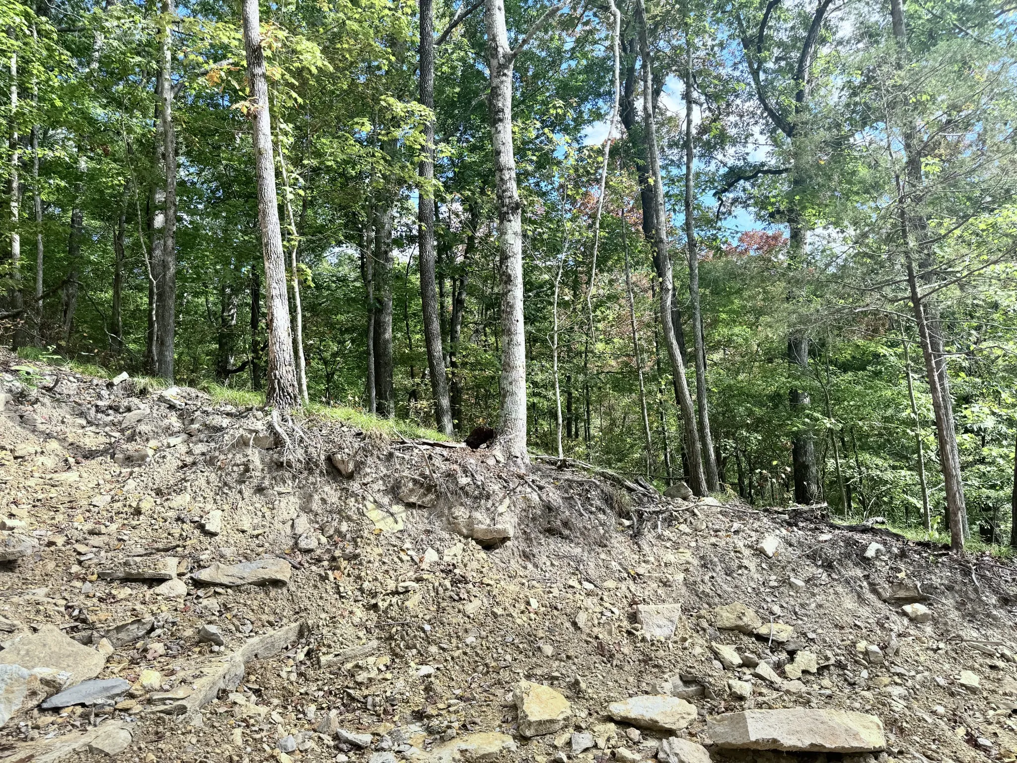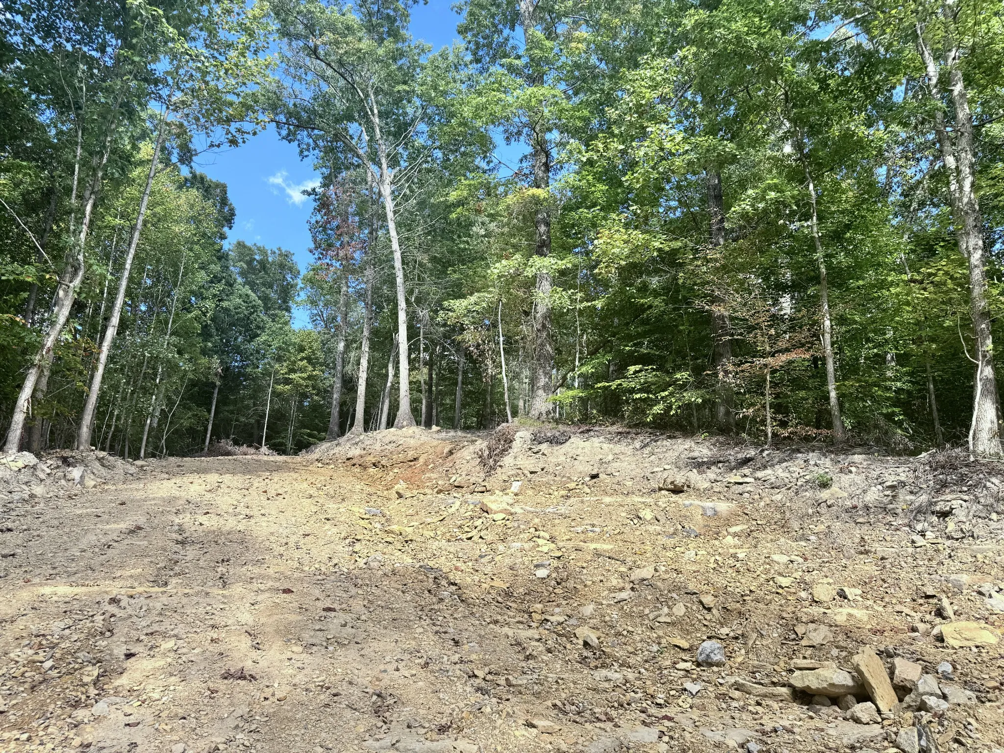 Property has been rough graded to the top of the hill. A pad for a home has already been cut out and some trees removed. The property does perk for a 4 bedroom at the top of the hill and for a 1 bedroom at the bottom near the road. The property is gorgeous. A walk in cave with a waterfall over the top is located to the right of the property. Take your mud boots & bug spray so you can walk around at the top and into the cave. I recommend a 4 wheel drive truck.