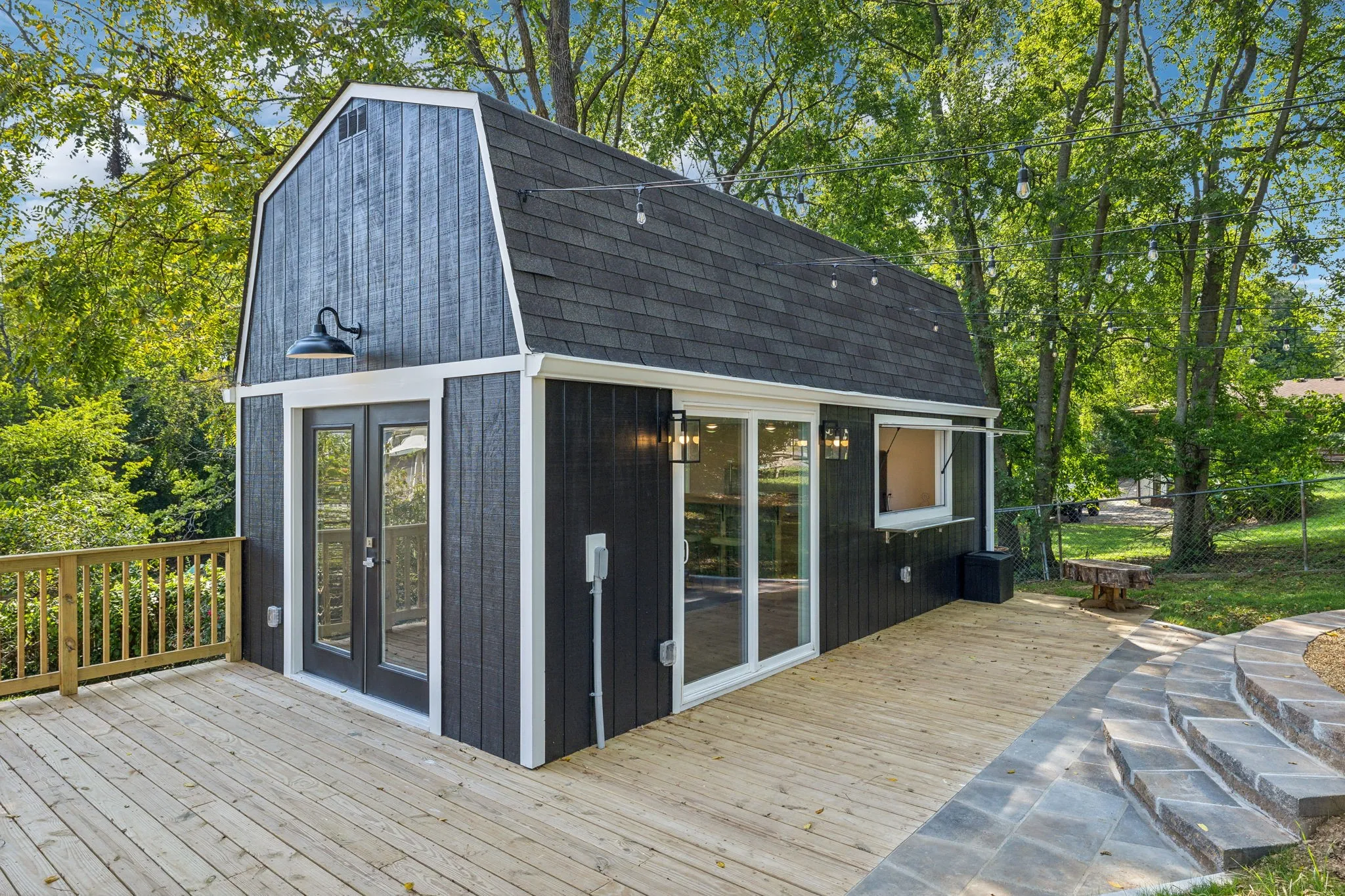 "ShortDescription" => "Large custom building equipped with French doors, sliding doors, and a concession style window to maximize entertainment."