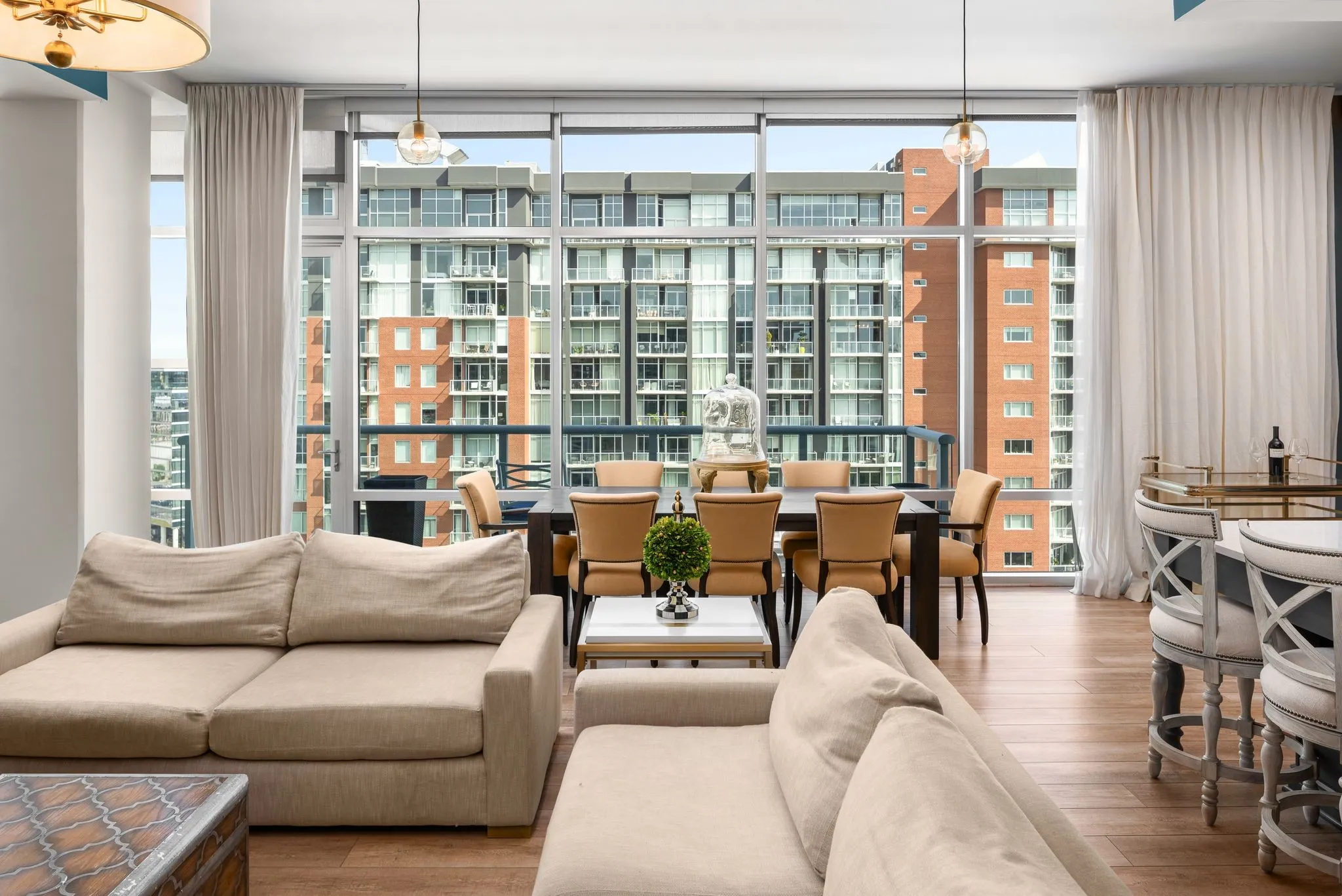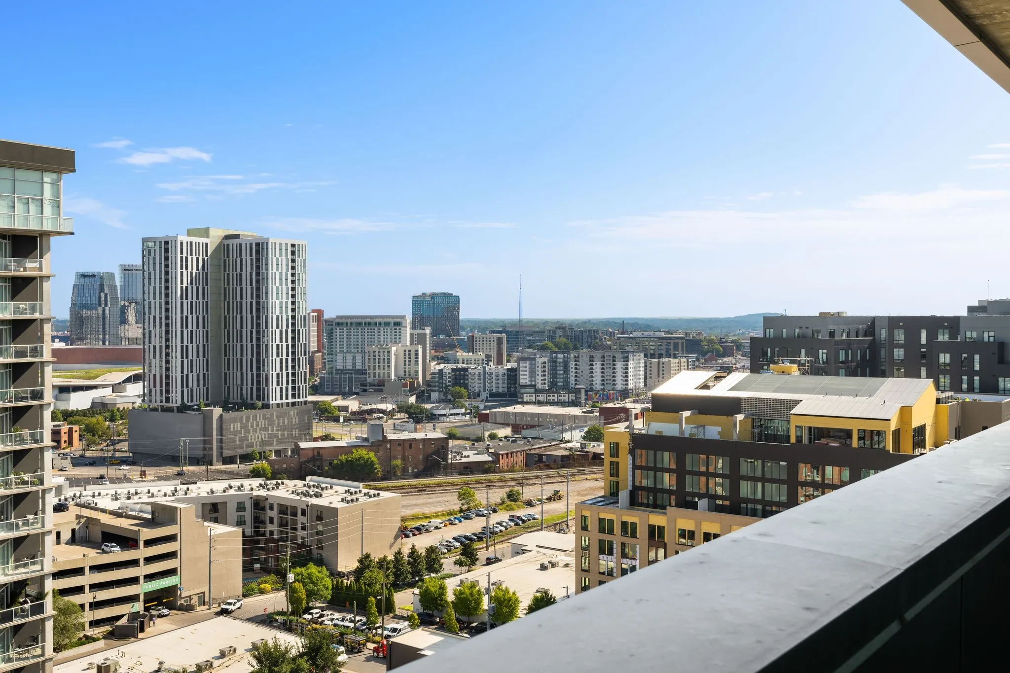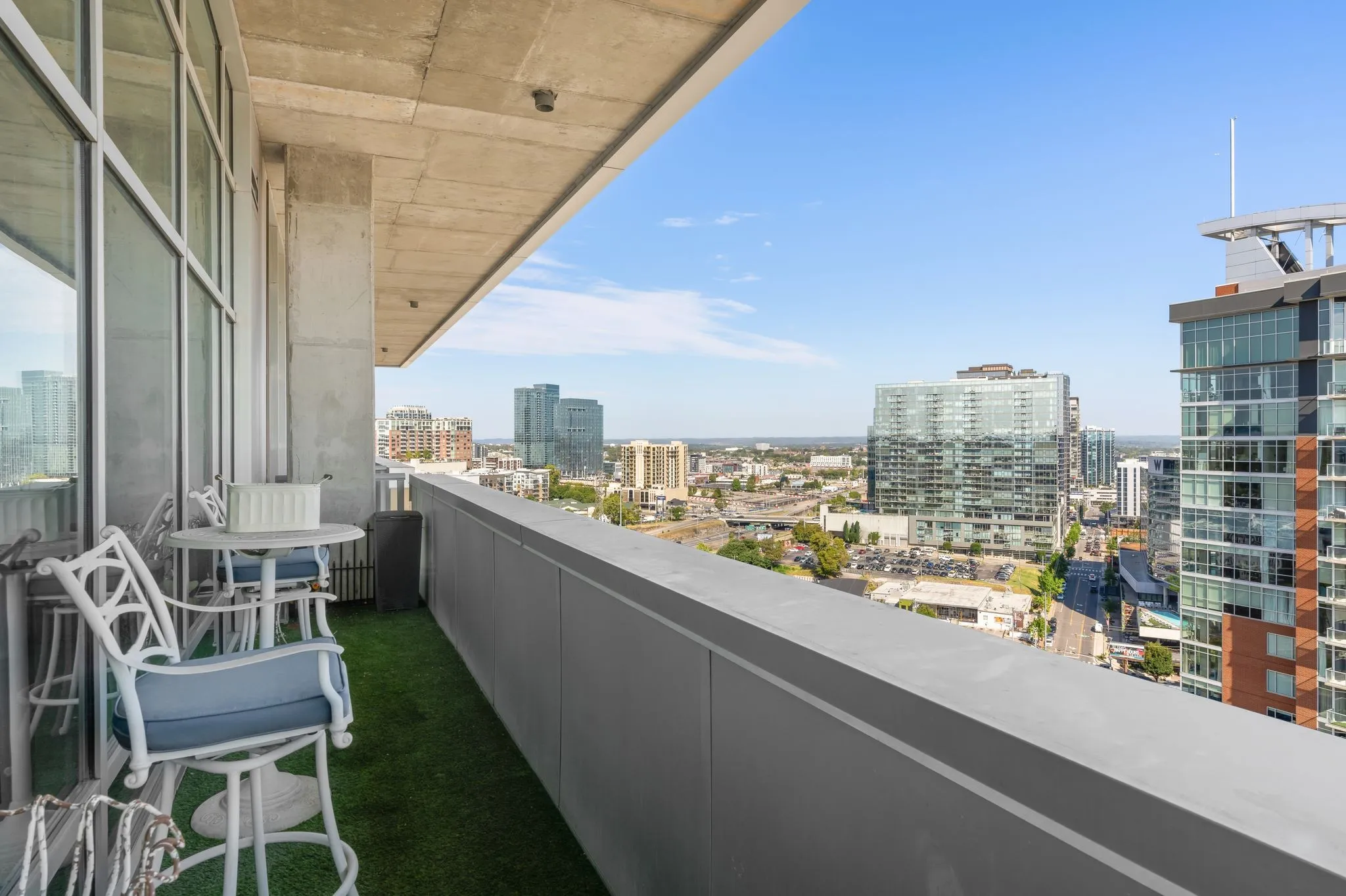 Unbelievable two story GULCH Penthouse in the beautiful Terrazzo building. Nestled in the heart of the Gulch this penthouse has both Downtown and Midtown views with three oversized balconies. This one owner unit has been beautifully renovated and meticulously maintained. There is an entrance on both the 14th floor and through the 15th floor. The first floor is a completely open floor plan with13ft completely redone ceilings, a gorgeous renovated kitchen with oversized island and all new flooring/lighting throughout. Window treatments and tint. Brand new wine fridge. The Master is on the top floor with a huge balcony right off the bedroom. The grand master closet is fitted with updated inserts and conveniently houses both the washer and dryer. Two assigned parking spots and a storage unit convey with the sale. Amenities are located on the 6th floor and the storage unit is on the 5th floor.