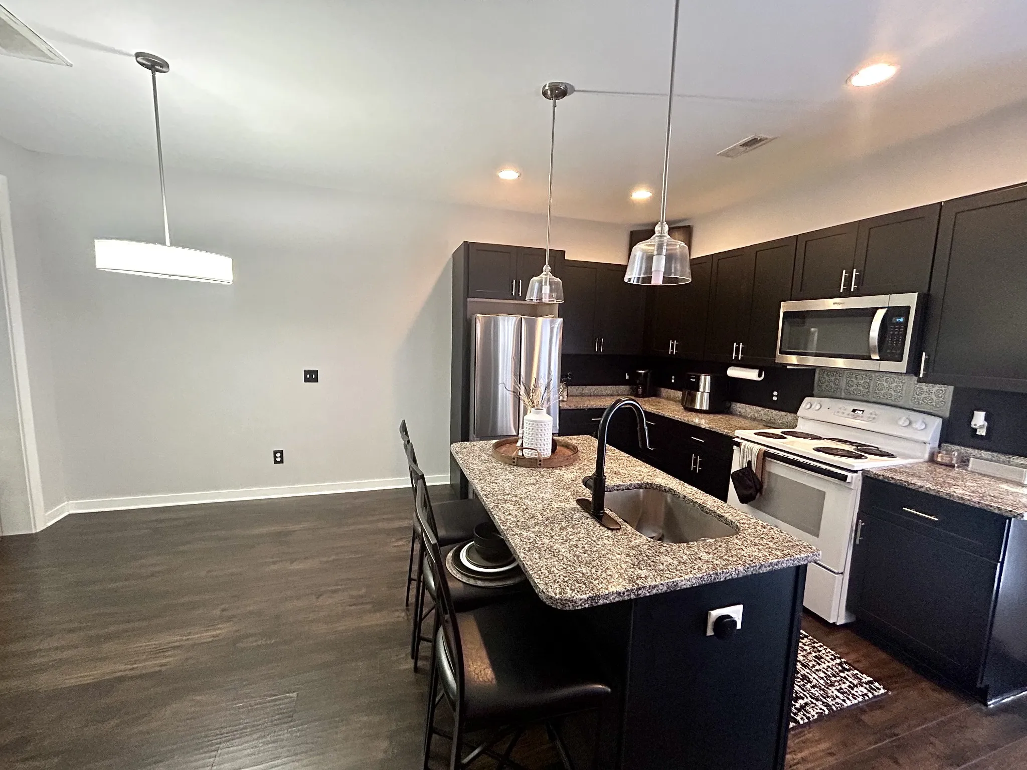 Live in or use as a rental home! A beautiful newer end unit home only minutes from shopping, restaurants and more! Open floor plan makes for open living and entertaining. Numerous updates and upgrades in the past 2 years including a brand new Refrigerator in August 2024. Spacious bedrooms with private baths and walk-in closets. Kitchen features granite counter tops on all countertops and kitchen island. HVAC was just serviced in April 2024. The home is provided with 2 assigned parking places. Televisions in the bedrooms convey. Use as a rental is allowed but Buyers/ Buyers agent to verify. STR is not allowed based on HOA policy.