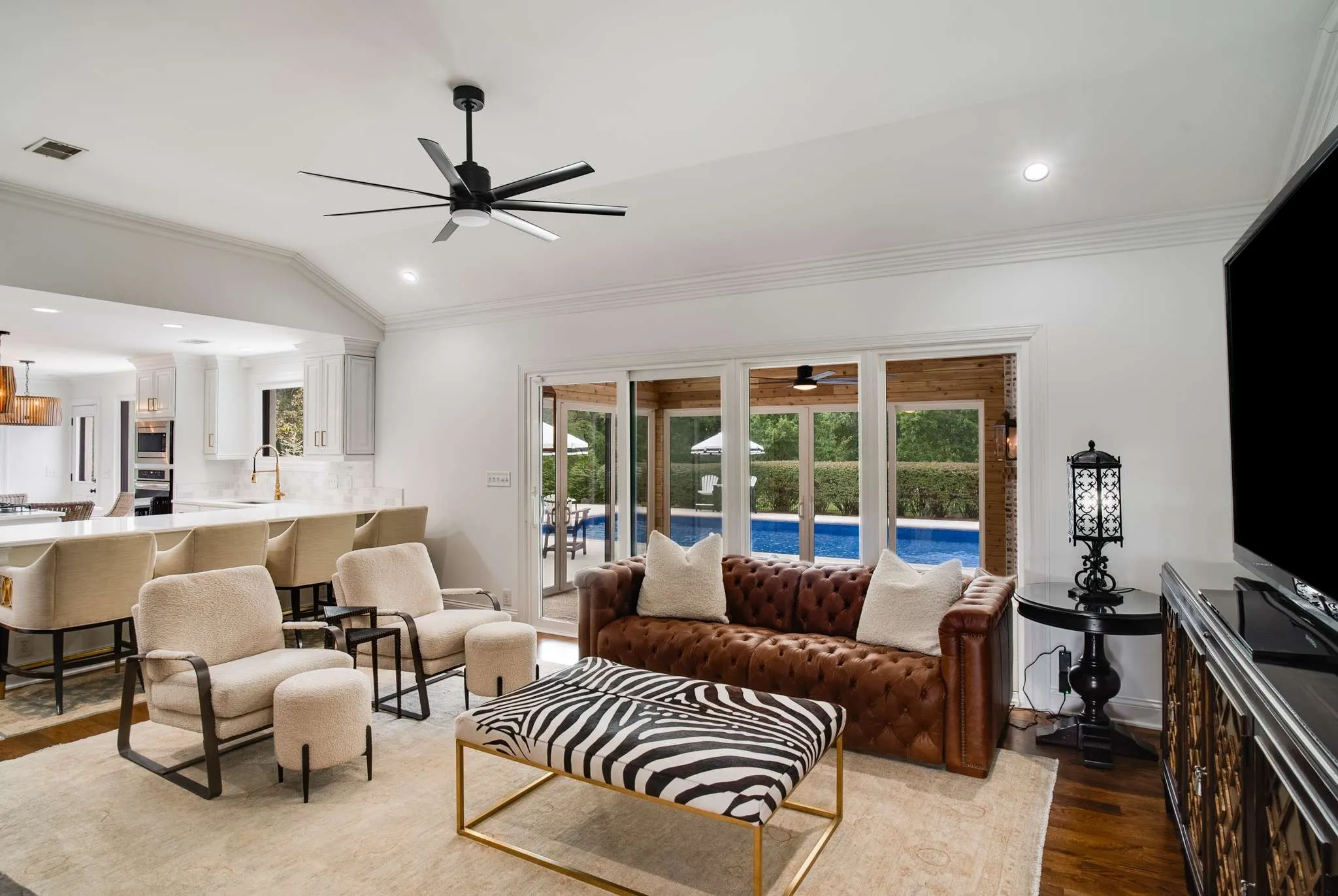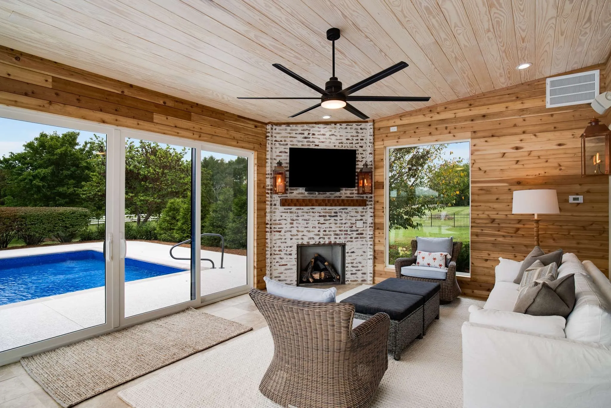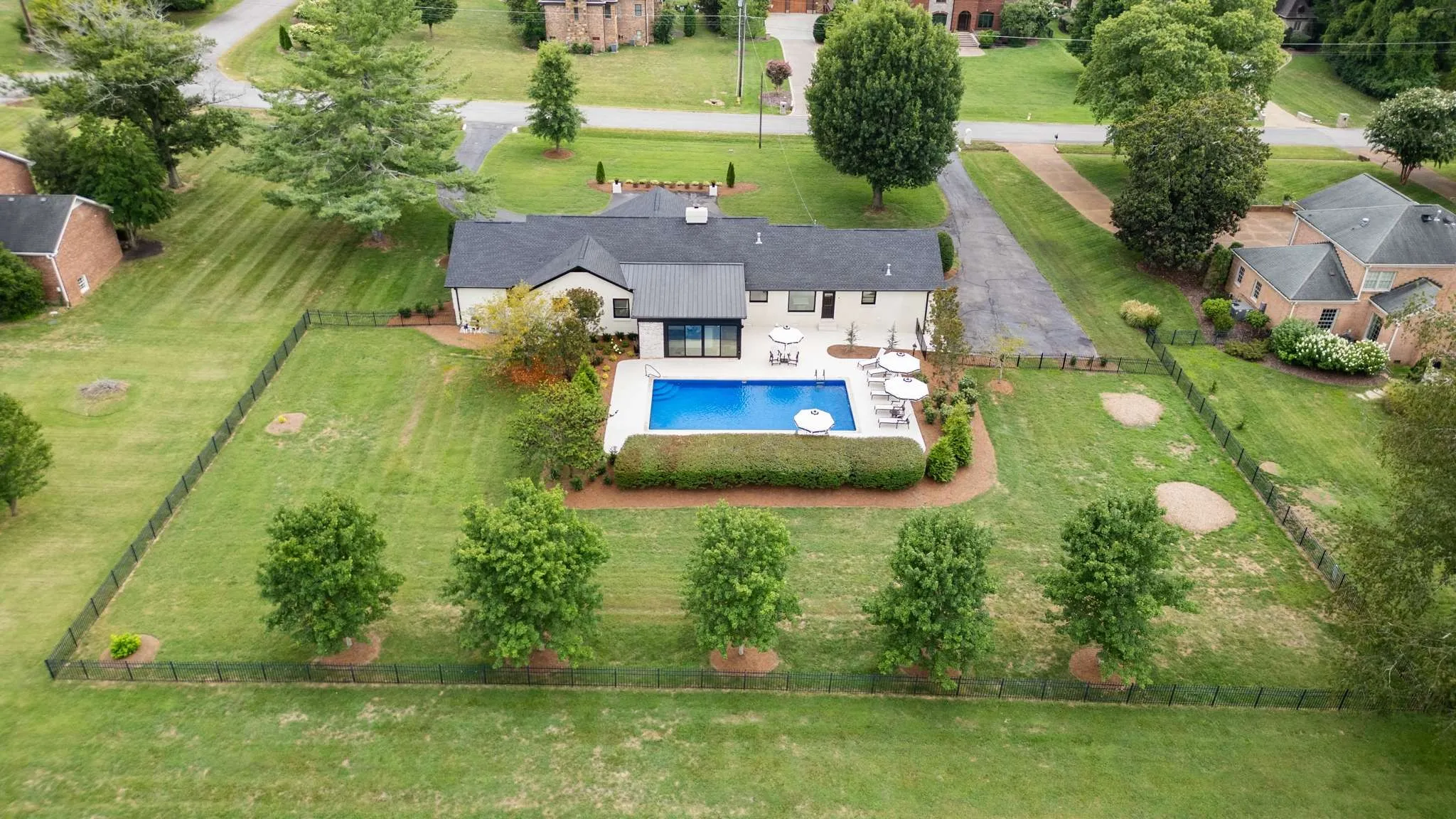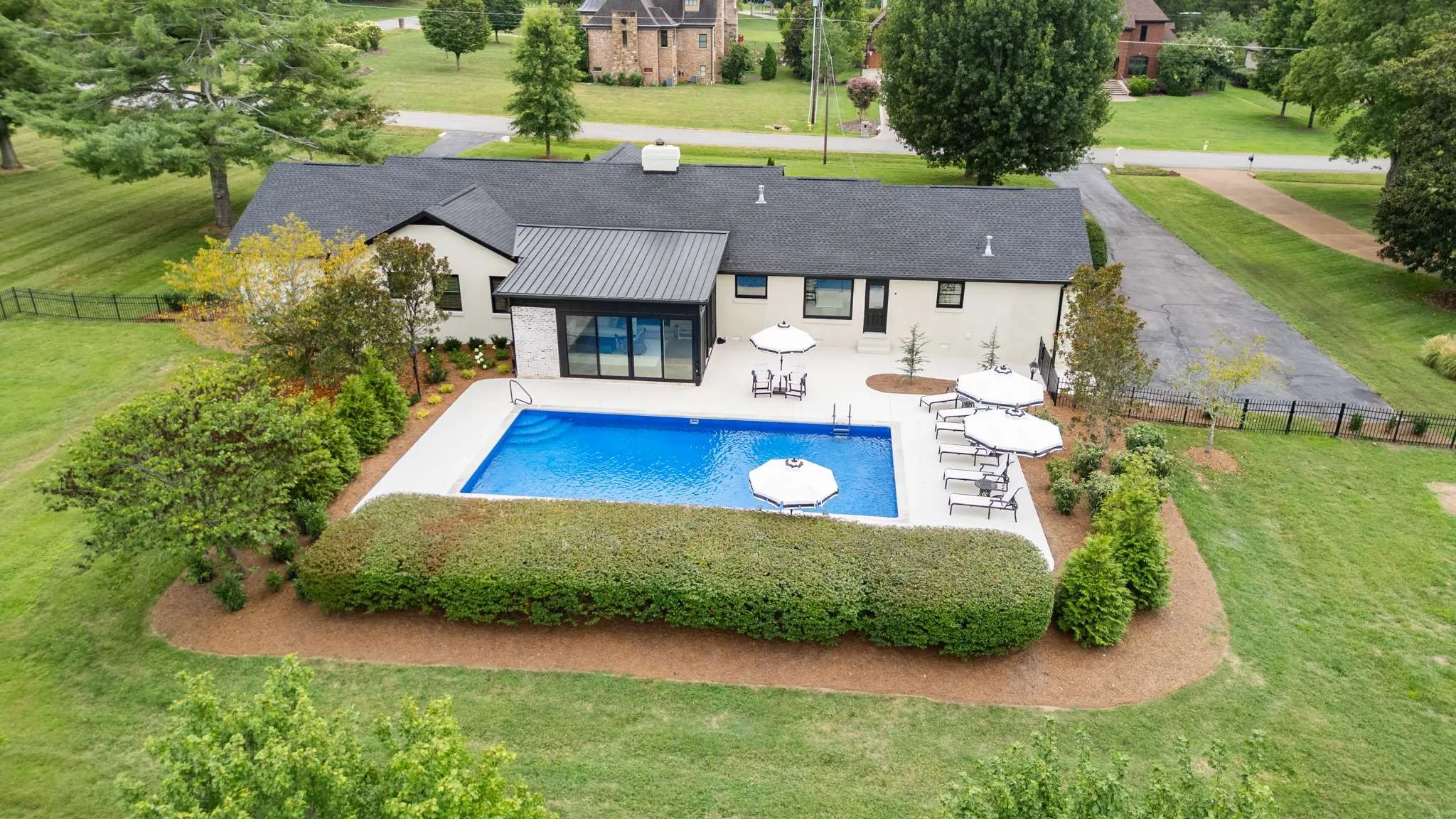 Open House this Sunday, August 18, 2 to 4. Under contract but still showing for back-up offers. Stunning, renovated 4BR/3.5BA ranch home in a quiet neighborhood w/in minutes of Warner Parks, Cheekwood. This lovely home sits on a flat, expansive acre lot, with a fenced-in backyard, saltwater pool and new 4 Seasons room. The beautiful pool & deck were resurfaced in 2024. Spacious 3487 sq. ft. plus an additional 320 sq. ft. in the new 4 Seasons room. 4 Seasons room includes a gas fireplace and cedar wood ceiling. Family room w/ gas burning fireplace opens to the updated kitchen w/ new appliances, lighting, backsplash and countertop. New Primary Suite bathroom with tub and shower. Hardwoods throughout the main floor. Bonus/media room upstairs. Attached 2-car garage has epoxy floors. New copper gas lanterns in the front and back. All exterior doors replaced. New stucco over brick. Williamson county, zoned for top-rated Grassland Elementary & Middle and Franklin High School. No HOA.