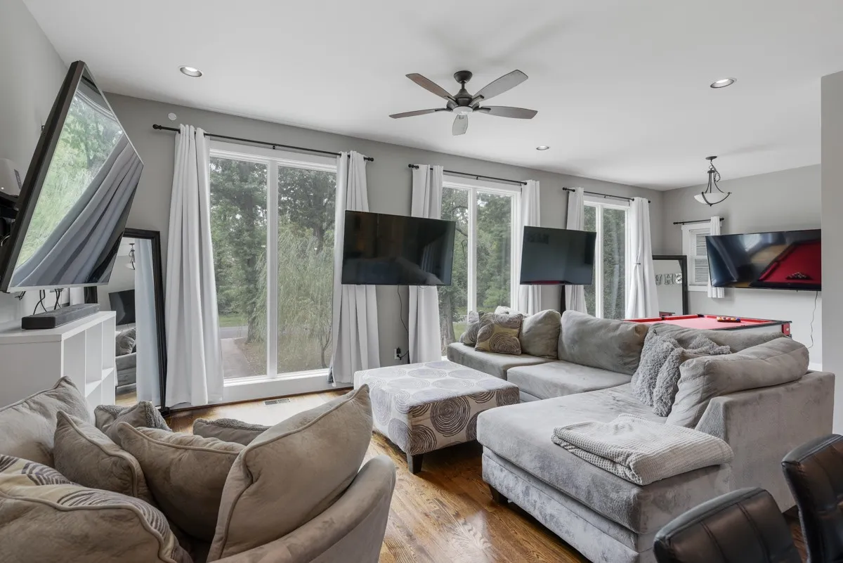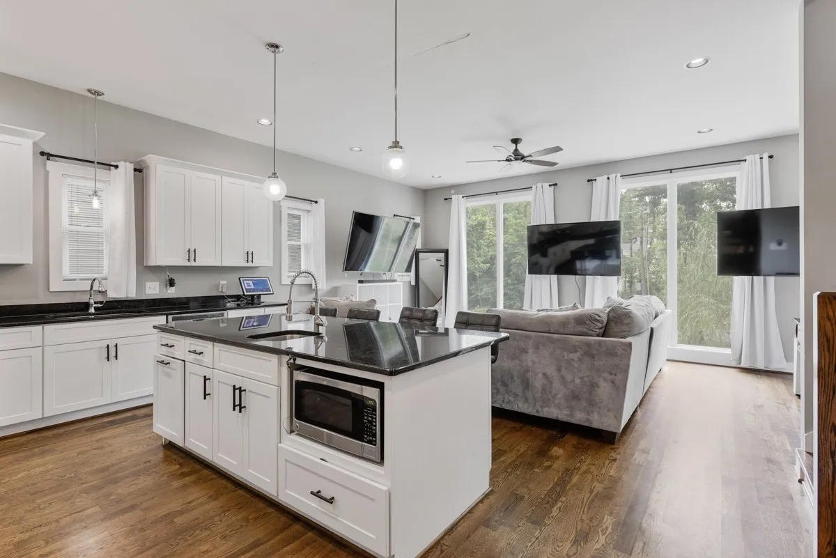 Here is your chance to own something very unique! This listing features a contemporary built home(2017) within walking distance of the Cumberland river. This home has 3 humongous bedrooms, 3 full bathrooms. The home is an open concept with 10 foot ceilings in the main floor the kitchen features stainless steel appliances, a huge kitchen island, pantry, recessed lights, floor to ceiling windows(in main) with amazing views. The master suite is ginormous. It has a huge walk-in closet. The master also has a luxurious master bath with a separate shower & soaking tub, double vanities. The home has hardwoods on the main level carpets in the bedrooms and tile in baths. The home sits a top huge garage with a personal workout room or storm shelter. The main floor has a covered deck+elc & fans. The lighting and many of the home features are controlled by Alexa. It’s very rare to find something close to the river, Opry Mills, and the heart of downtown Nashville. Come check it out today.