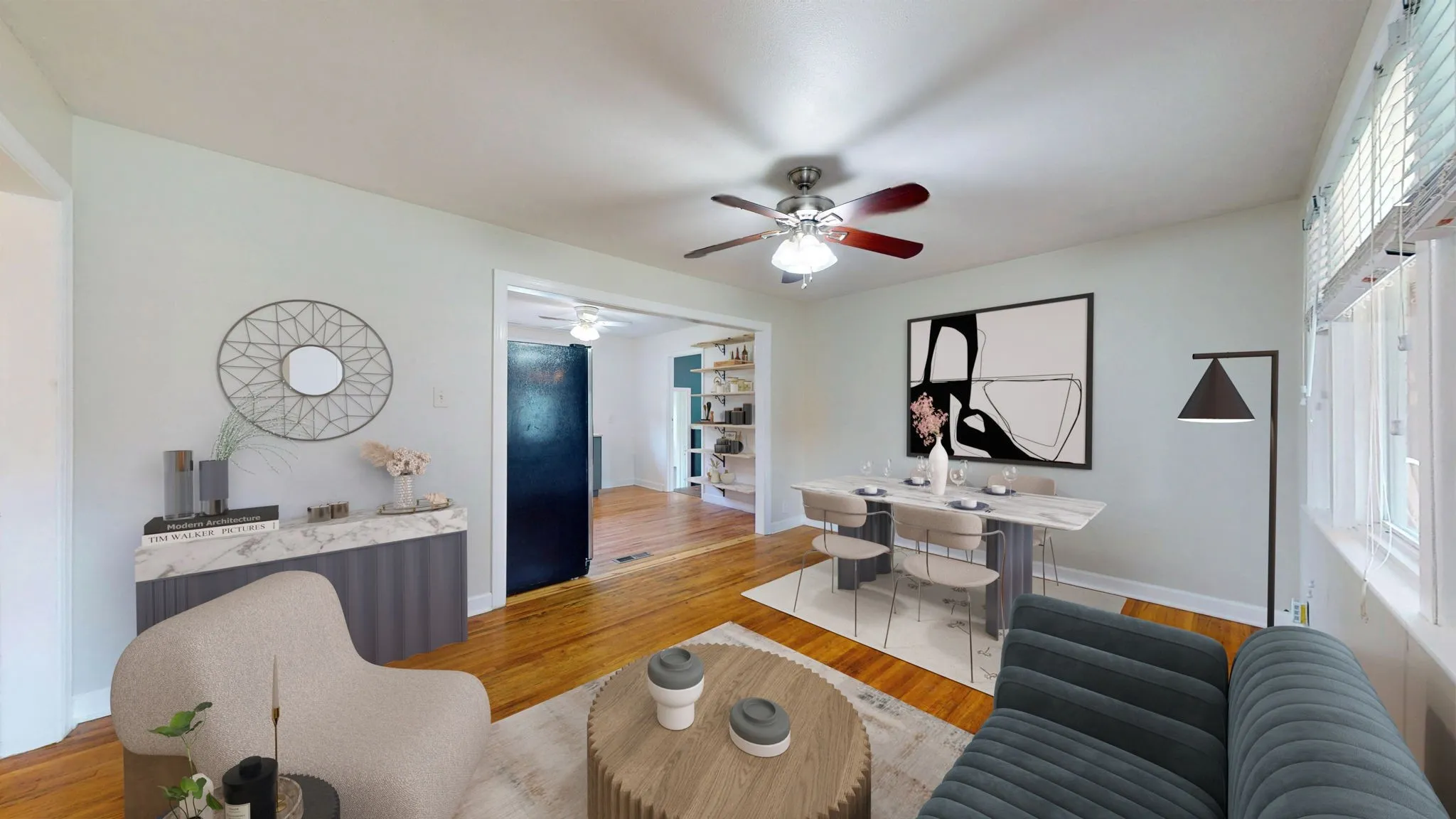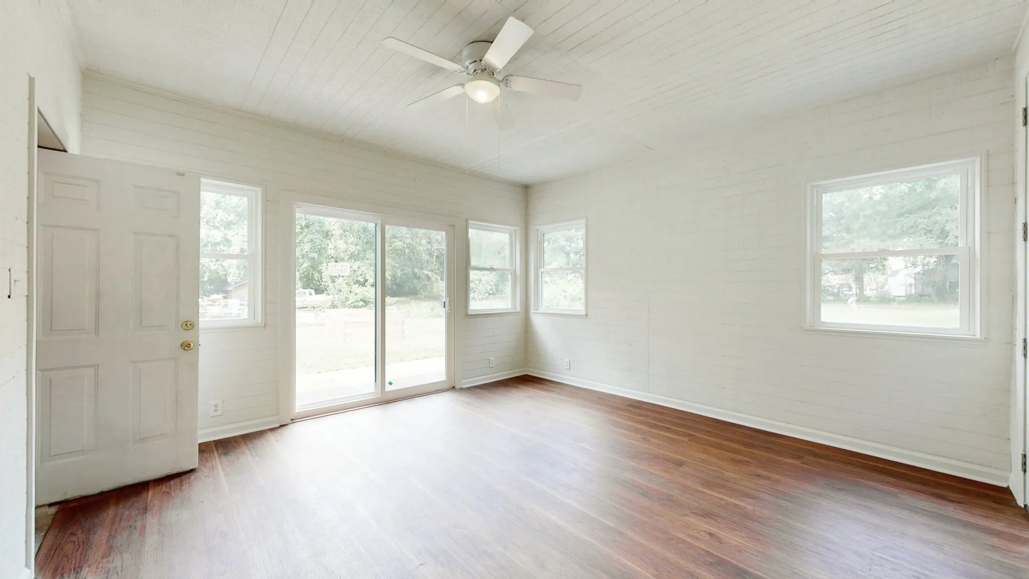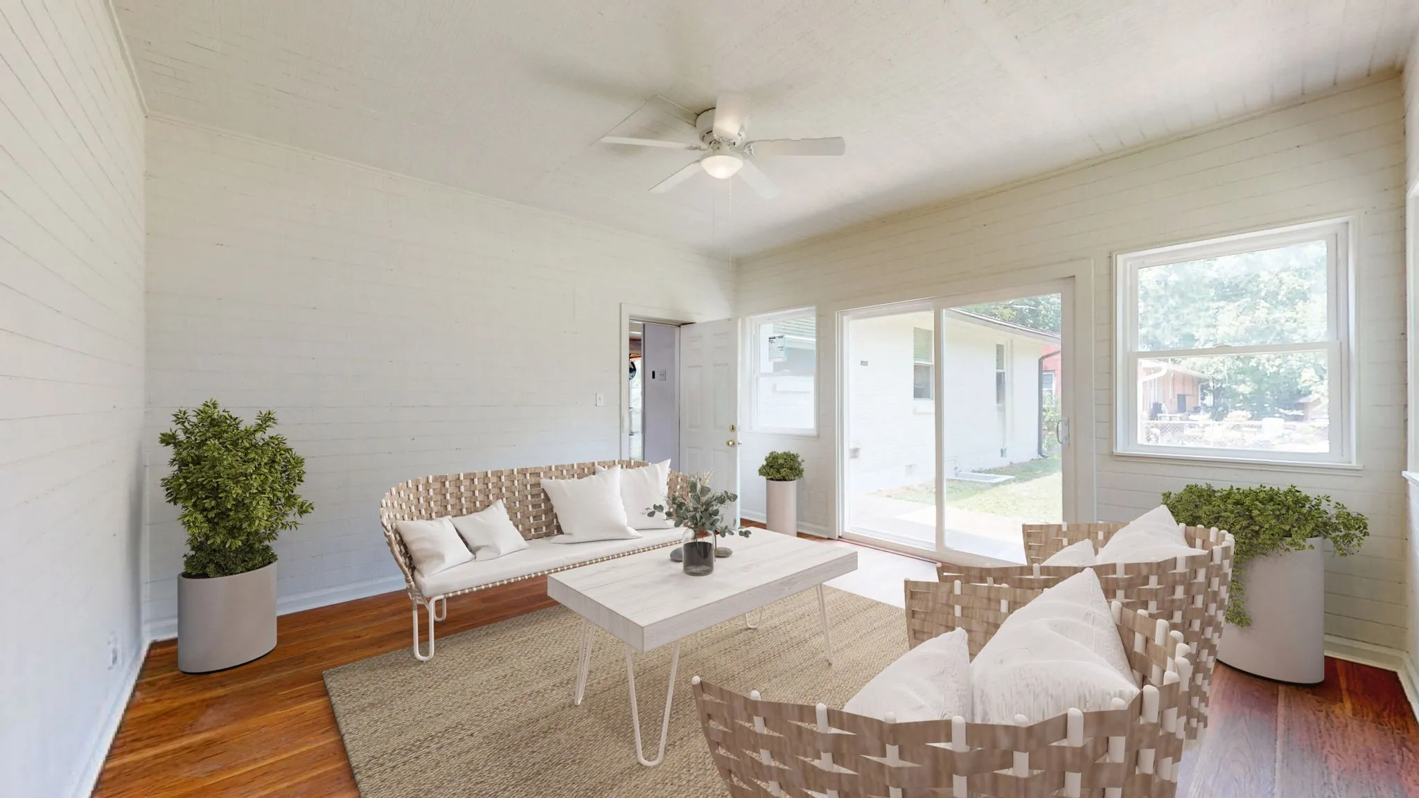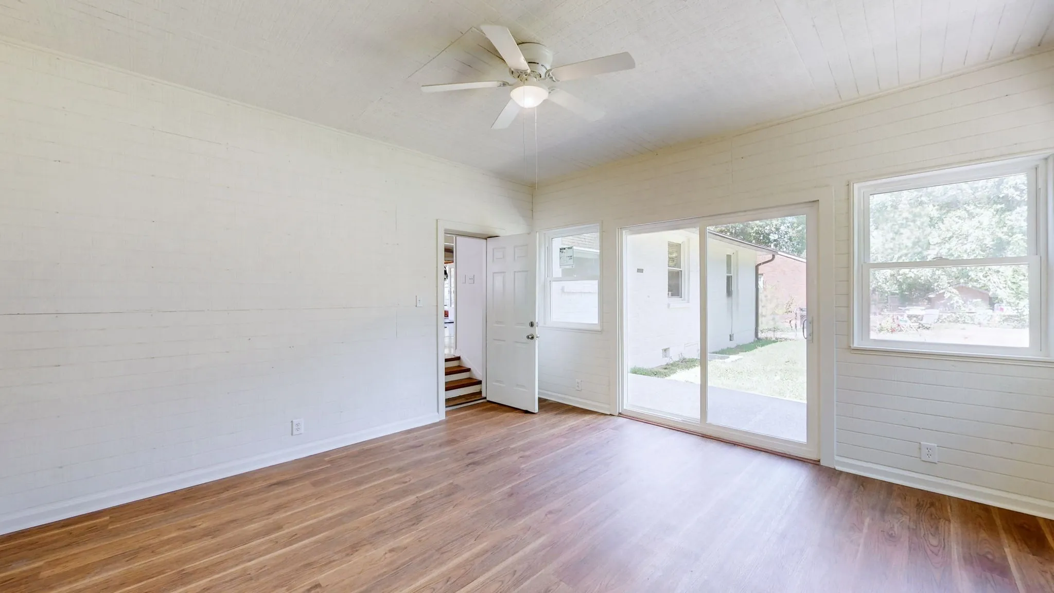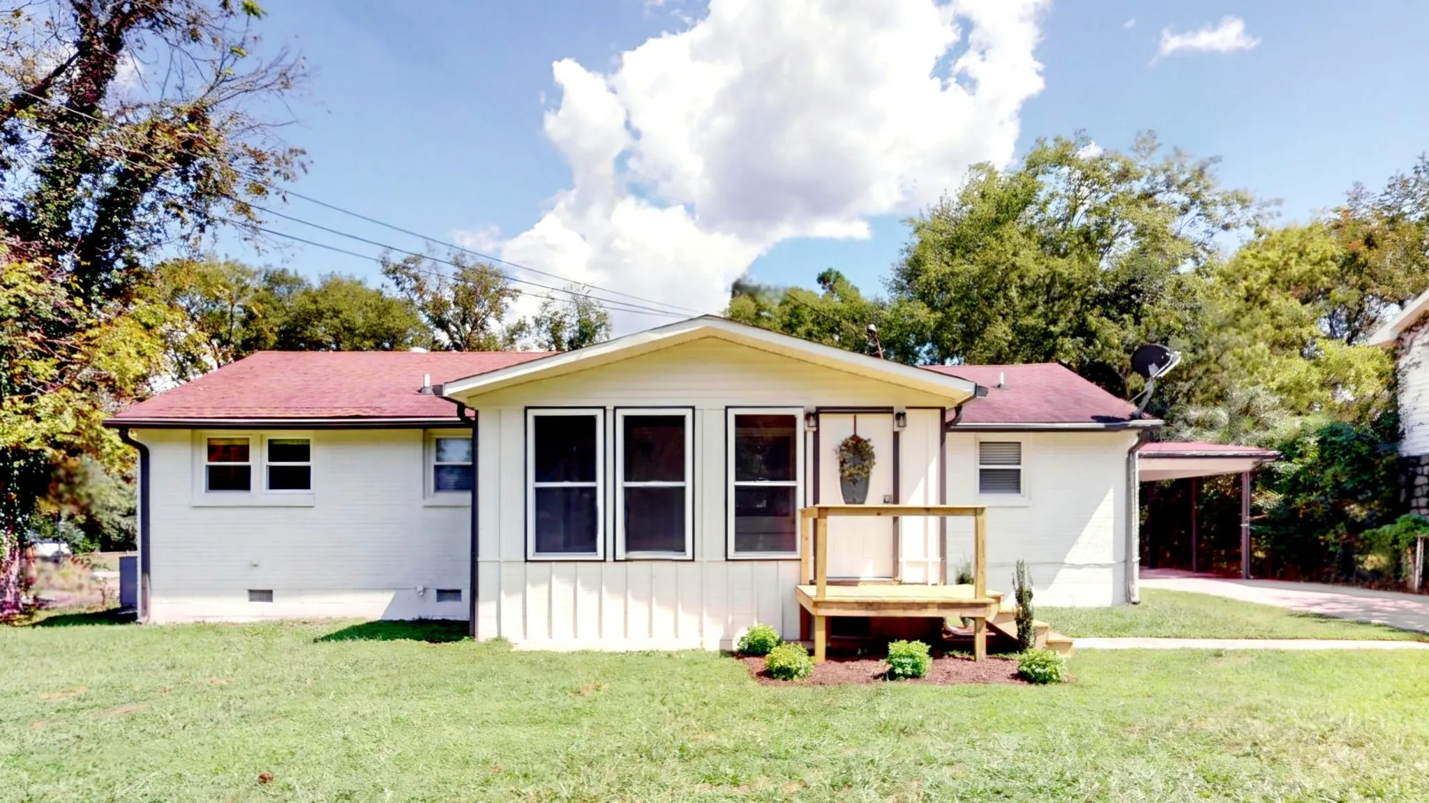 +"PublicRemarks": "Introducing this renovated, move-in ready *one level* home on a large fully fenced lot. All brick ranch home features original hardwoods along with modern updates throughout. The spacious layout offers open floorplan and multiple dedicated spaces - gorgeous sunroom/ studio addition & newly enclosed cedar lined porch. Flex room off kitchen could be formal dining, den or 4th bedroom suite; front living room could be dining area - many options!! New tankless water heater. Replacement energy efficient windows. Newer HVAC unit is under a continuous maintenance plan through A/C Plus. Stainless steel refrigerator remains, new GE frontload W&D remain. New full size portable dishwasher remains. This sweet home also includes fruit trees producing apples, asian pears, jujube fruit & bananas. All this, and only 4 minutes to MTSU. Schedule your showing today! SEE VIRTUAL WALK THROUGH AND DRONE VIDEO LINKS ATTACHED 100% financing available NOT limited to first-time buyers + lower interest rates!!"