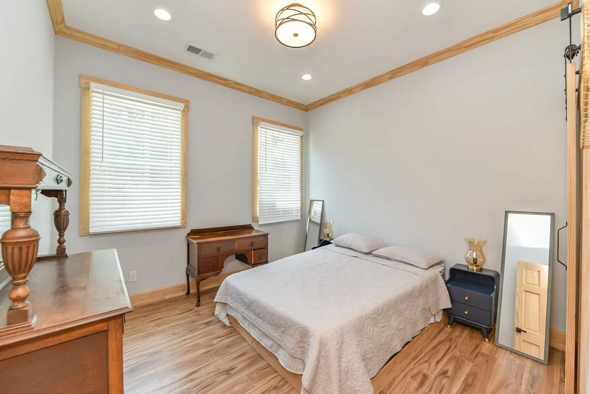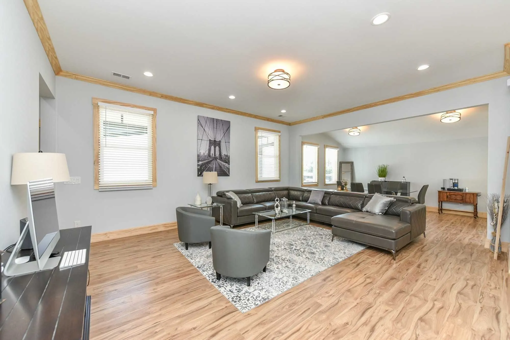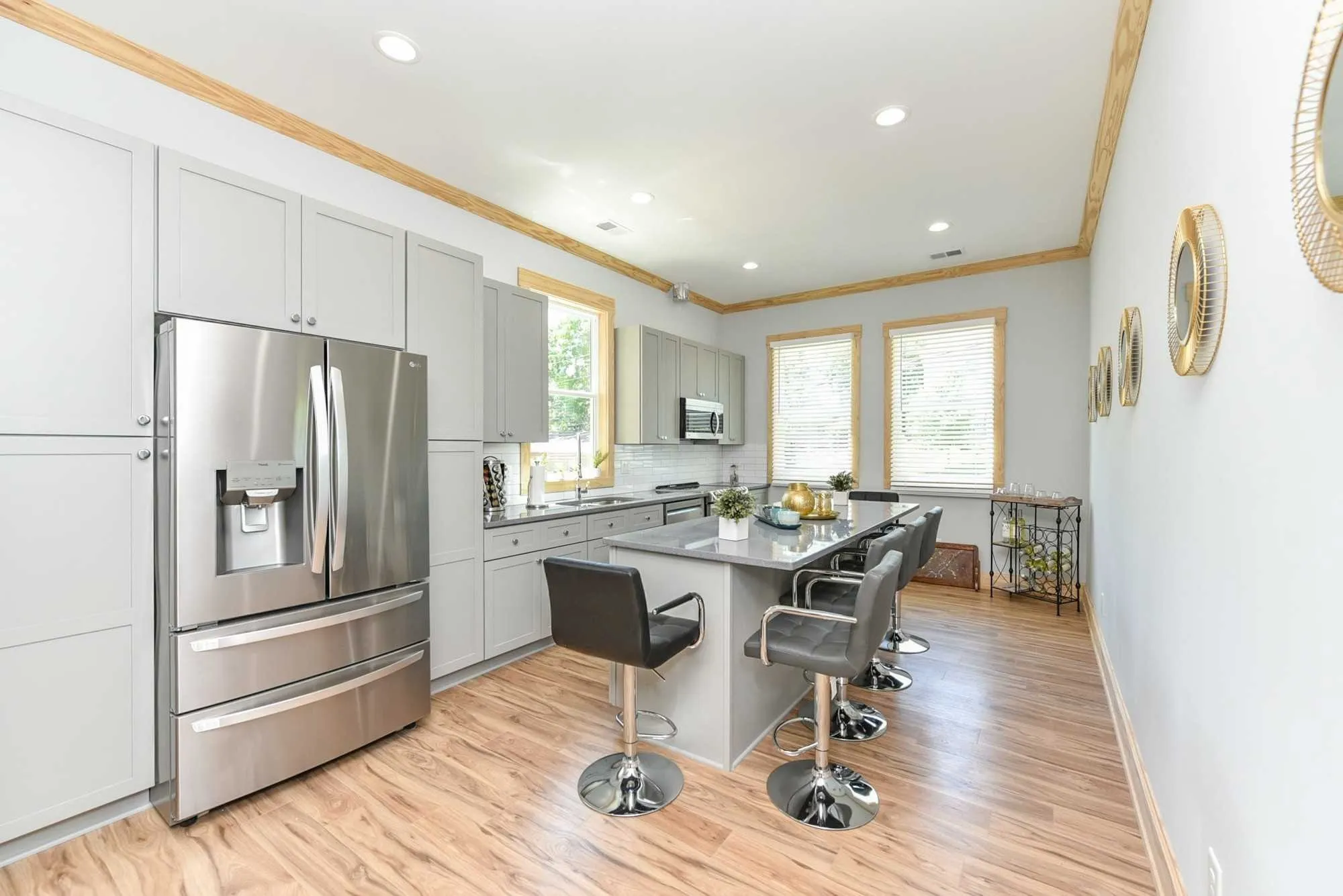 Fantastic LOCATION & CONVENIENT to everything in Nashville & beyond … jump onto the interstate in minutes at multiple entry points! Low neighborhood traffic. Just over 5 miles drive to the airport/ BNA. Just over a mile to Broadway. Minutes to Wedgewood-Houston. UTILITIES INCLUDED. GORGEOUS NEW CONSTRUCTION with a huge open floor plan, very high ceilings, beautiful indestructible wood floors, and lots of natural light. It’s fresh & stylishly furnished with everything you could need. Perfect for families and for entertaining! Guestroom or mother-in-law bedroom on the main floor and lovely primary bedroom and an additional bedroom on the second floor. Kitchen is large flowing off of the living and dining room with lots of storage and an island with barstools. The bathrooms are gorgeous with floor-to-ceiling tiling in the shower. Awesome laundry room. Deck area at the front door and an additional covered deck at the back. FULLY FENCED WITH AN ELECTRIC GATE AND PARKING. Ring Cameras!