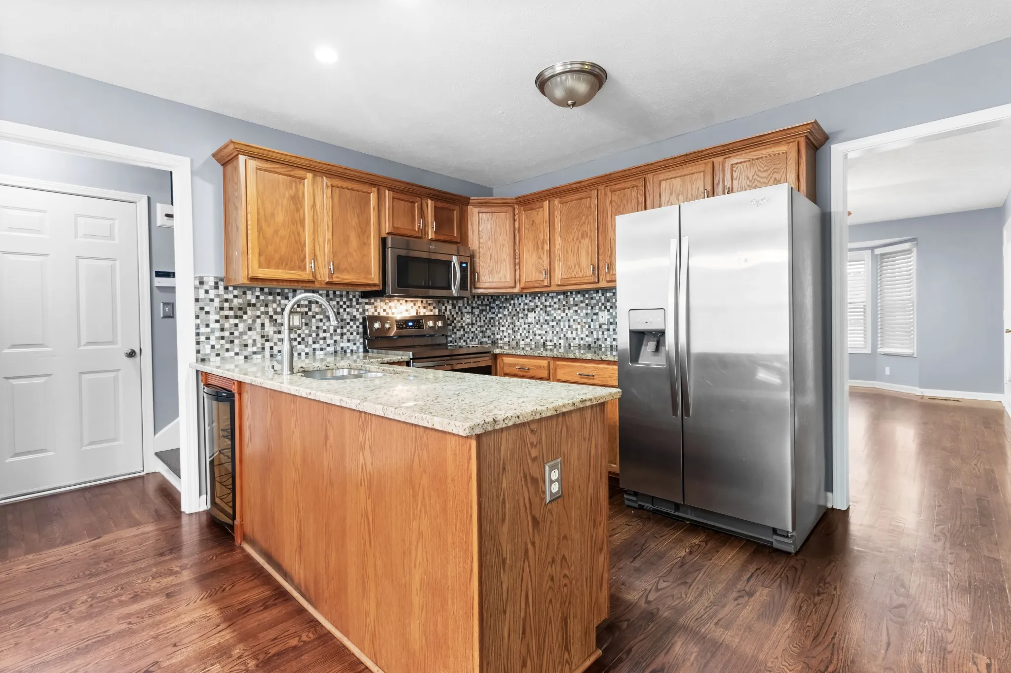 This 3 bdrm 2 bath w/ BONUS home is conveniently located near schools, downtown, and Ft Campbell. As you step inside, you are greeted by a spacious living rm with gorgeous hardwood flooring that flows seamlessly and a fresh coat of paint throughout the main living areas. The large windows allow natural light to flood the space, making it warm and inviting! The heart of the home is the expansive eat-in kitchen, boasting plenty of cabinet space, a breakfast bar, and including a wine fridge! The open floor plan is perfect for both everyday meals and entertaining guests. The primary bedroom is a true retreat, featuring a full bath with tiled flooring and ample closet space. Upstairs is the huge bonus room, offering endless possibilities for an additional living room/home office/4th bdrm. A new HVAC was installed in August 2024 and a new roof in 2022. Don’t forget to step onto the back deck overlooking the fenced-in backyard making it the perfect space for outdoor activities.