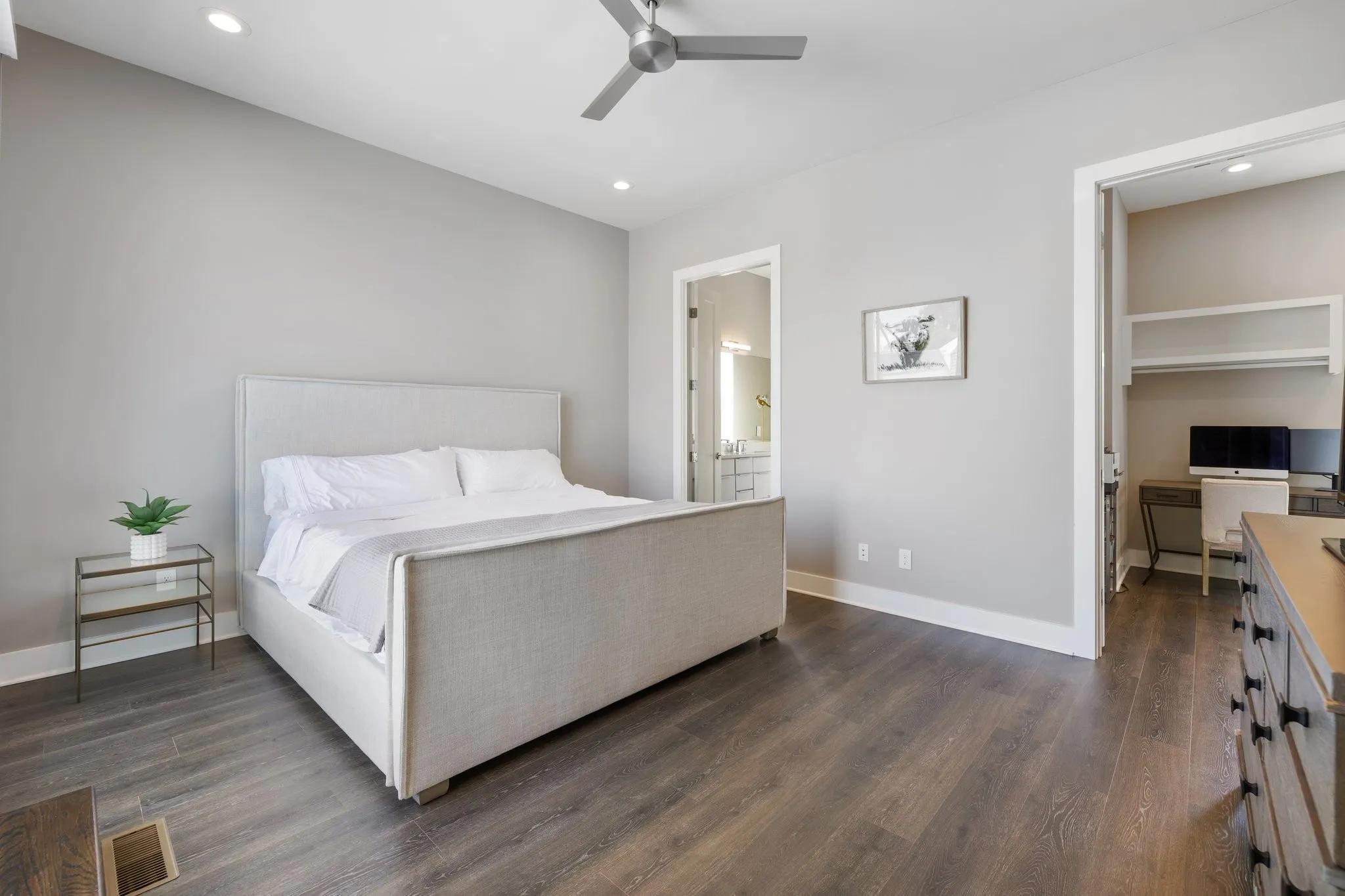 Experience the luxury and convenience of Douglas Market Lofts, where a coffee shop, boutique general store, and dog groomer are just feet from your doorstep. Located minutes to downtown Nashville and exciting new developments coming to the East Bank including the new Titans stadium and River North. The townhome offers a spacious main-level living, dining, and kitchen area filled with natural light, high ceilings, and modern fixtures and finishes. The stunning kitchen boasts quartz countertops, custom cabinetry, stainless steel appliances, a pantry with new custom shelving and a recently added coffee bar area. On the second and third floors, you’ll find 3 bedrooms, each with en-suite baths. The basement level garage provides ample room for up to three vehicles, a workshop, or additional storage to be used as desired. End your day on the stunning rooftop deck, perfect for entertaining and enjoying beautiful sunset views or cozy up by the elegant new fireplace.
