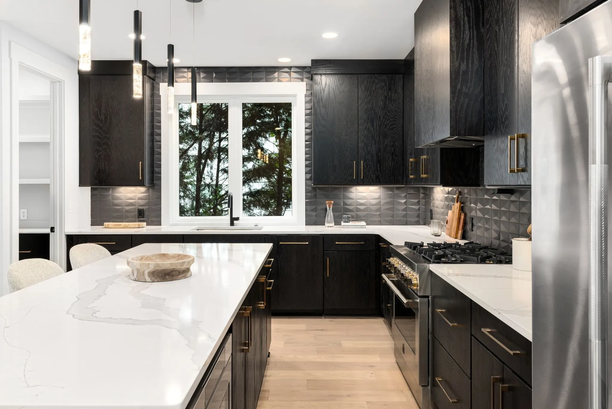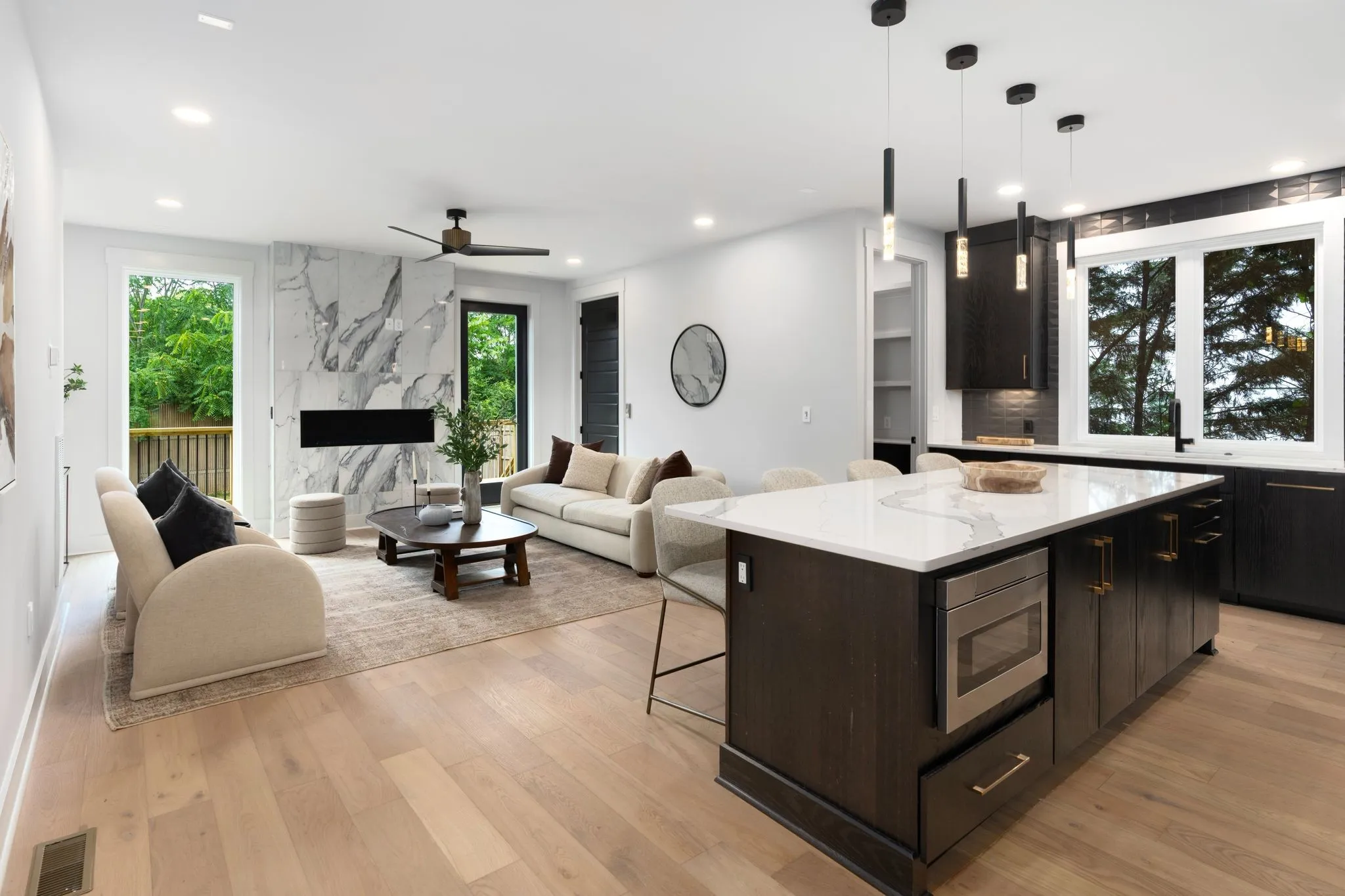 Discover modern luxury in this stunning 3-story home with 3 BR, 3.5 BA, and 2,616 SF of living space. The first floor features a full bedroom, full bathroom and access to a covered patio. The second floor offers an open living concept with a gourmet kitchen, oversized island, butler’s pantry, and high-end appliances including a gas cooktop. Enjoy a spacious living room with balcony, plus an additional bedroom, full bath, and half bath. The third floor boasts a primary suite with private balcony, double vanities, heated floors, oversized walk-in shower, soaking tub, and luxurious closet. A versatile flex room with wet bar completes this level. An elevator services all three stories. The large, fully fenced backyard is a blank canvas for your dream outdoor space. Two-car tandem garage included.