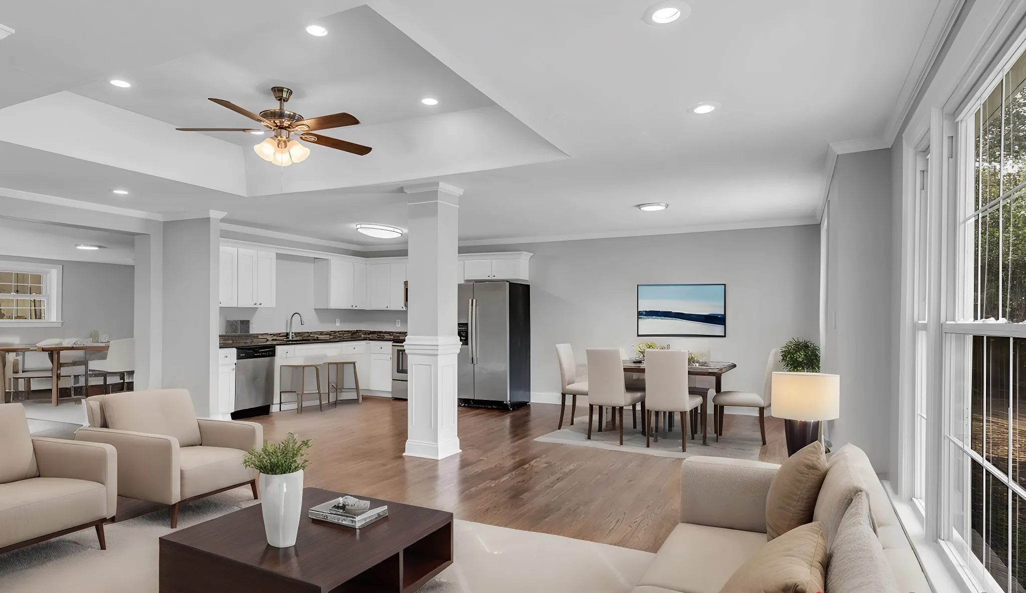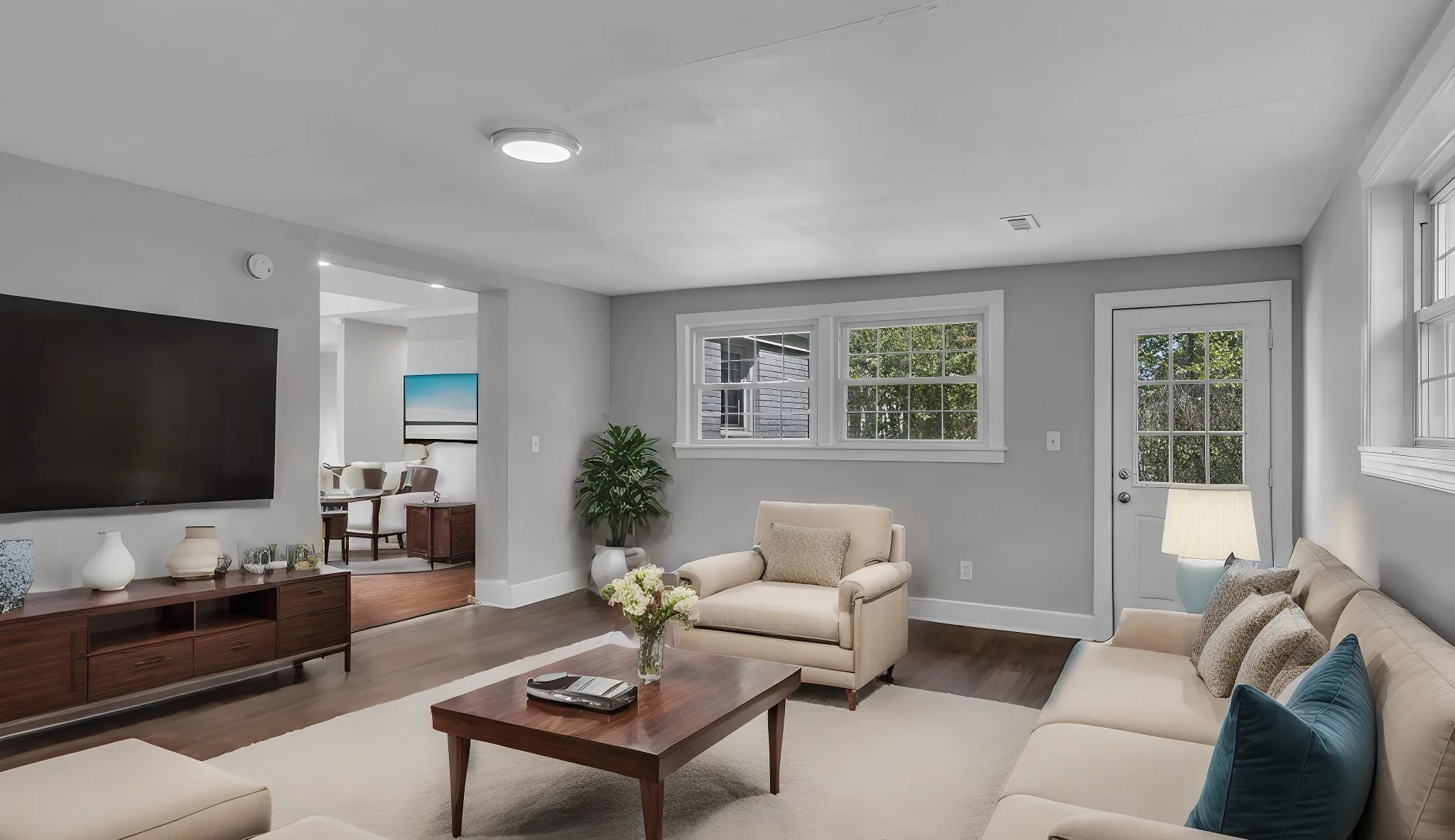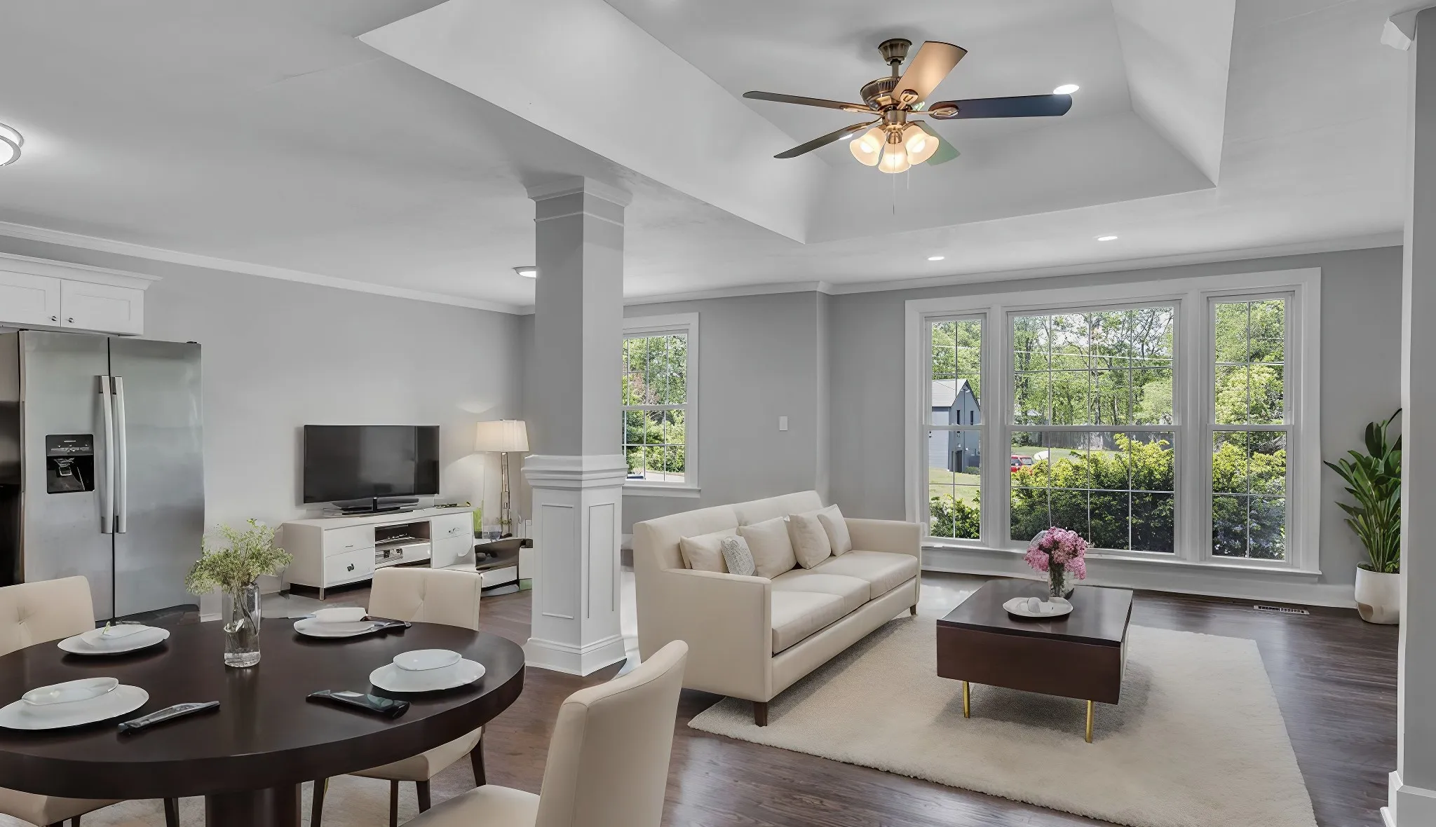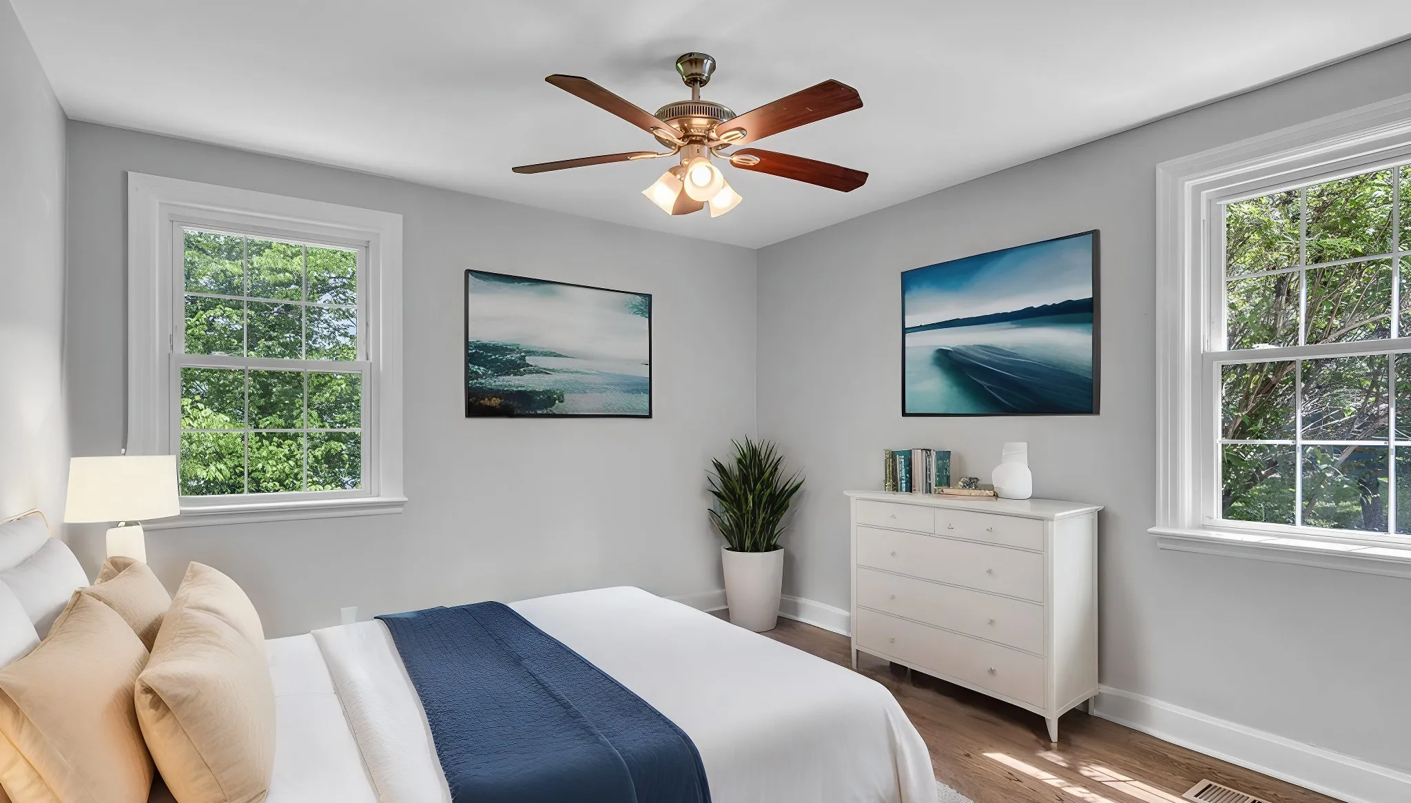 "LongDescription" => "Virtually Staged additional spacious bedroom w/ ceiling fan and windows pointing to a quiet and private back yard."