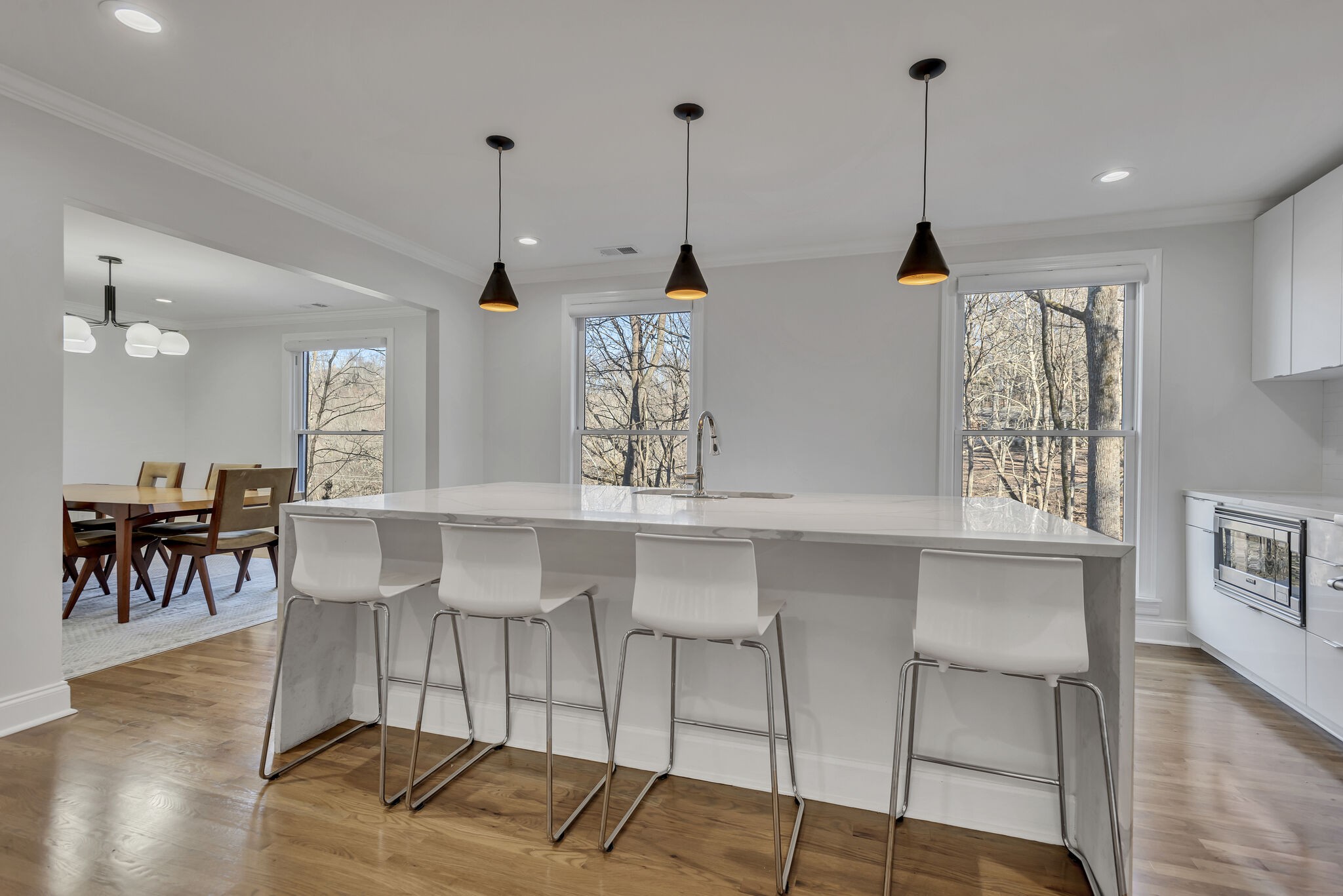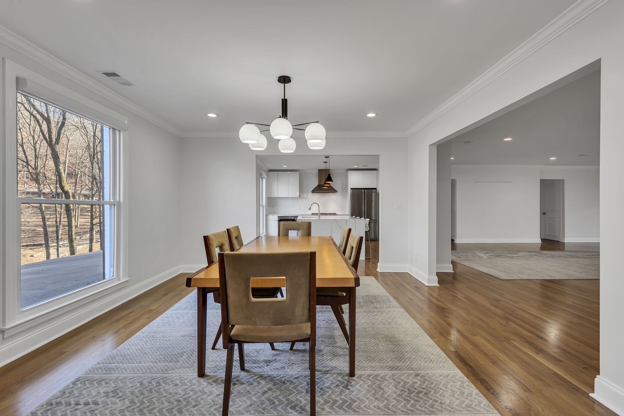 This stunning 4 bedroom 4 bathroom ranch-style home is perched on a hill and is a must see! Boasting characteristic mid-century modern architectural elements, including clean lines and an open floor plan welcomes abundant natural light with oak floors throughout. The renovated kitchen, equipped with premium Viking appliances, stands as a highlight, you will be captivated by the seamless blend of modernity and mid-century charm. Zoned for Percy Priest Elementary.