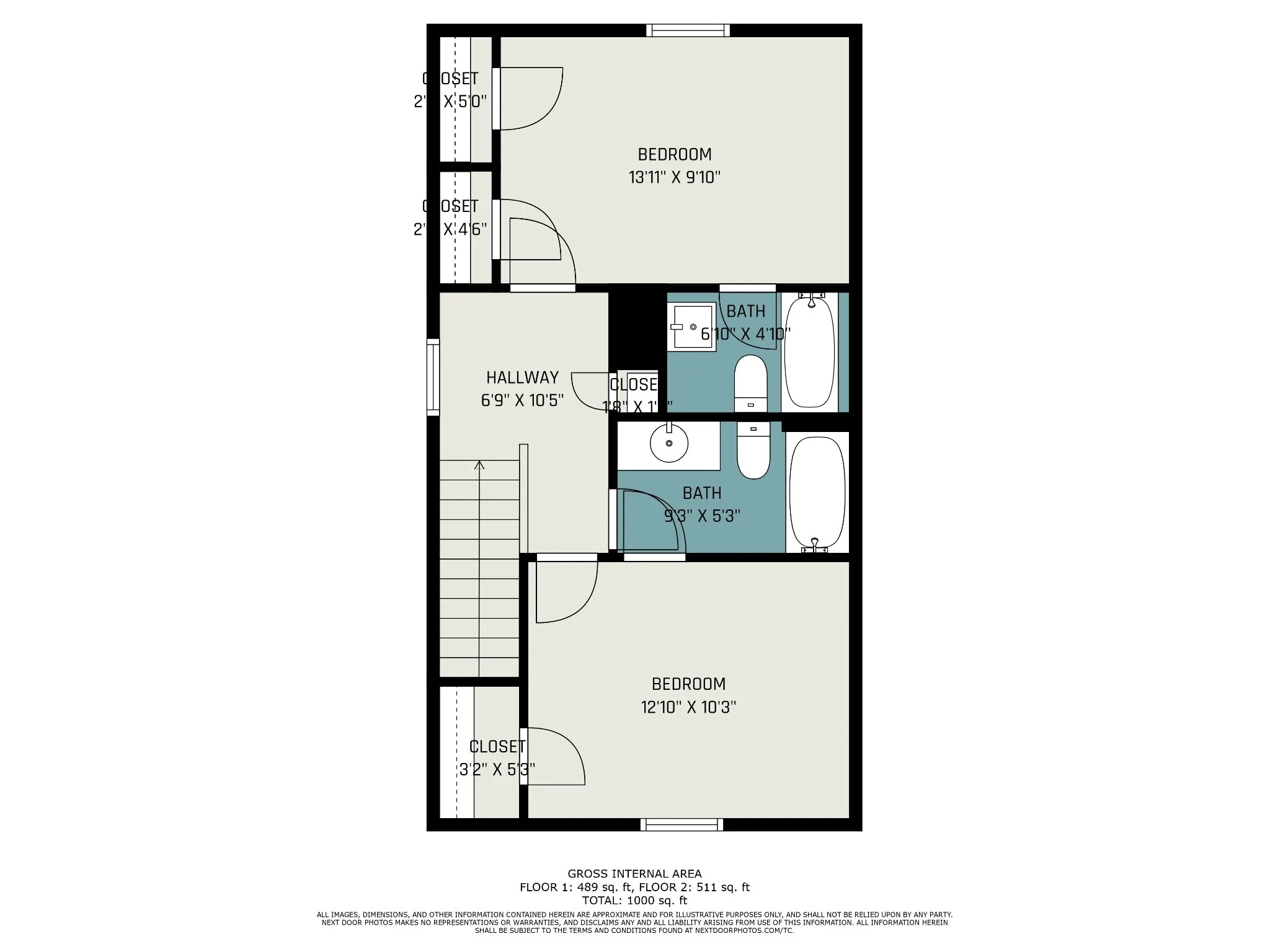 2 Baths Full + Half Bathrooms